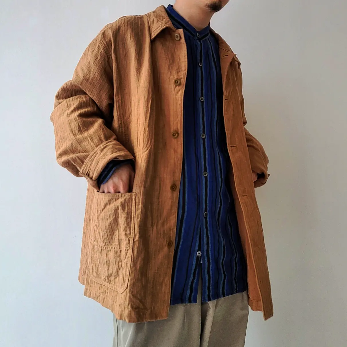 Ring Dye Cotton*Linen Dobby Herringbone Cloth / Cover All Jacket