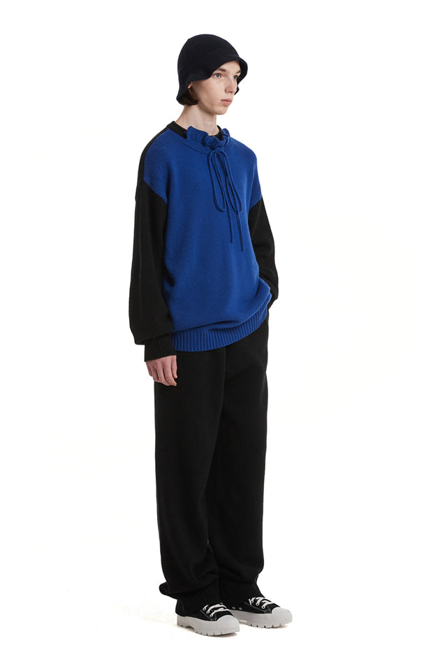 Description:- Loosefit- Long sleeve knit cashmere and wool-blend sweater- colorblocked in blue and black- Ruffled detailing at rib knit turtleneck collar- Dropped shoulders- Rib knit sleeves and hemMaterial:5% Cashmere60% Wool 35% NylonDRY CLEAN ONLYSize S: Length 70 / Shoulder 55 / Chest 59 / Sleeve 58Size L: Length 74 / Shoulder 58 / Chest 62 / Sleeve 60