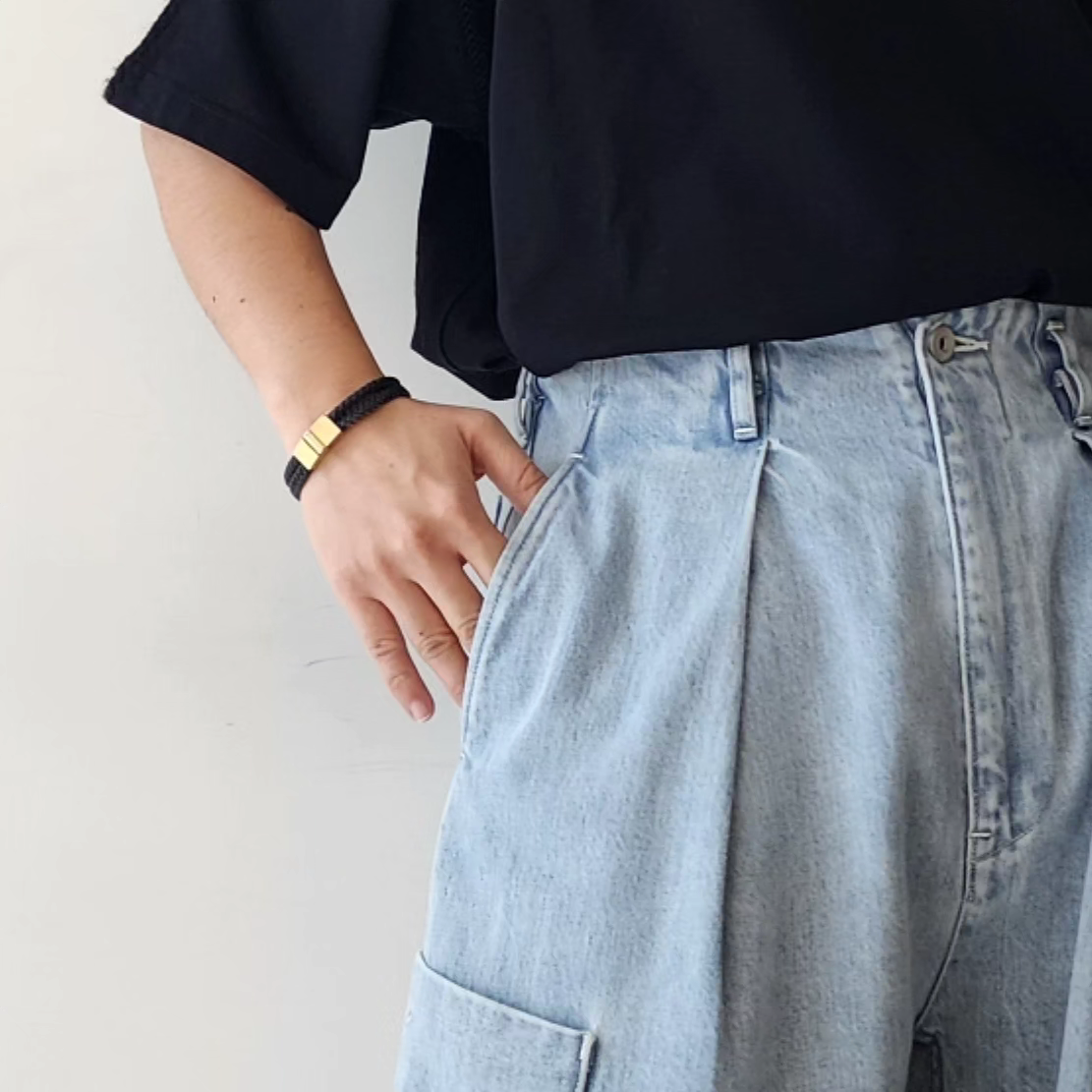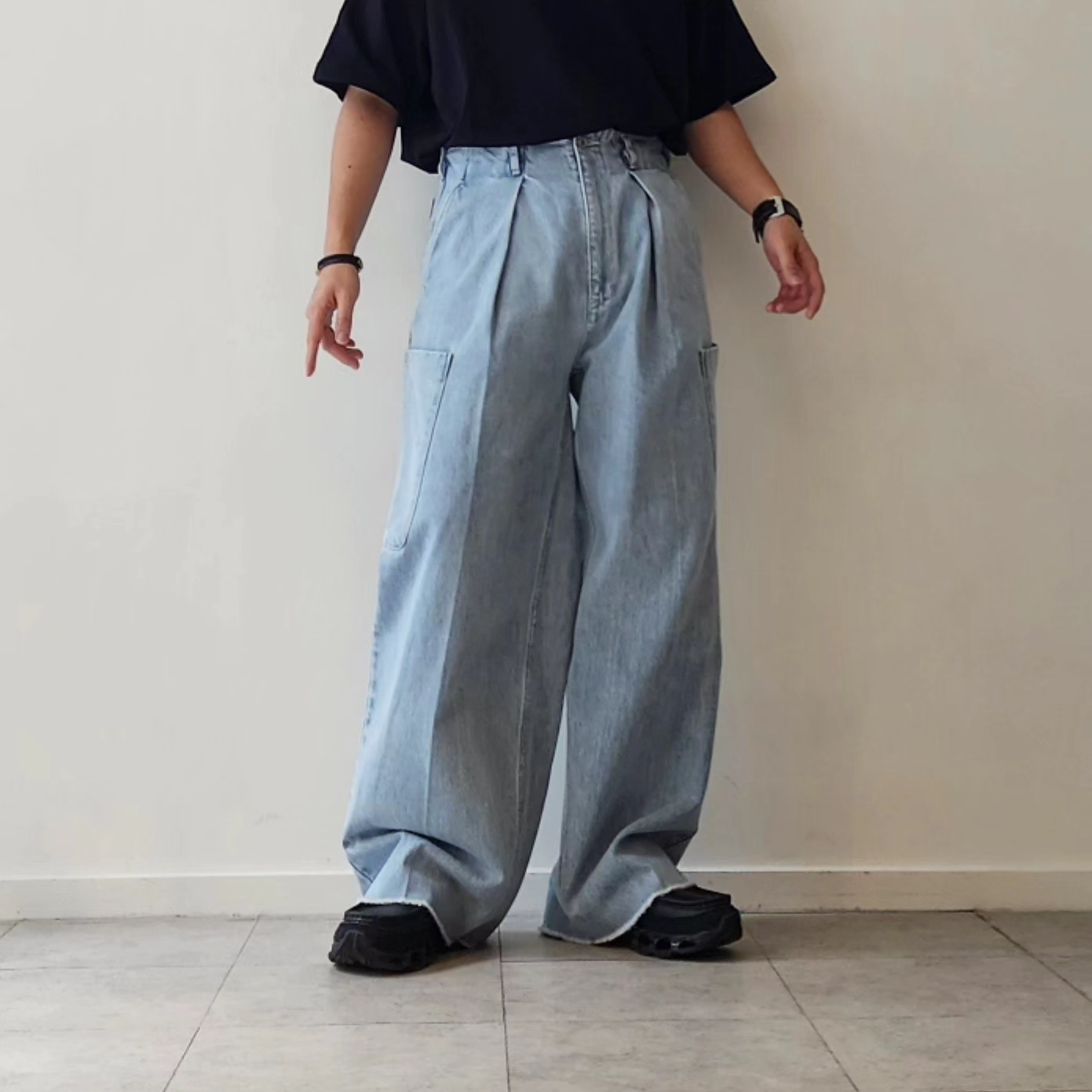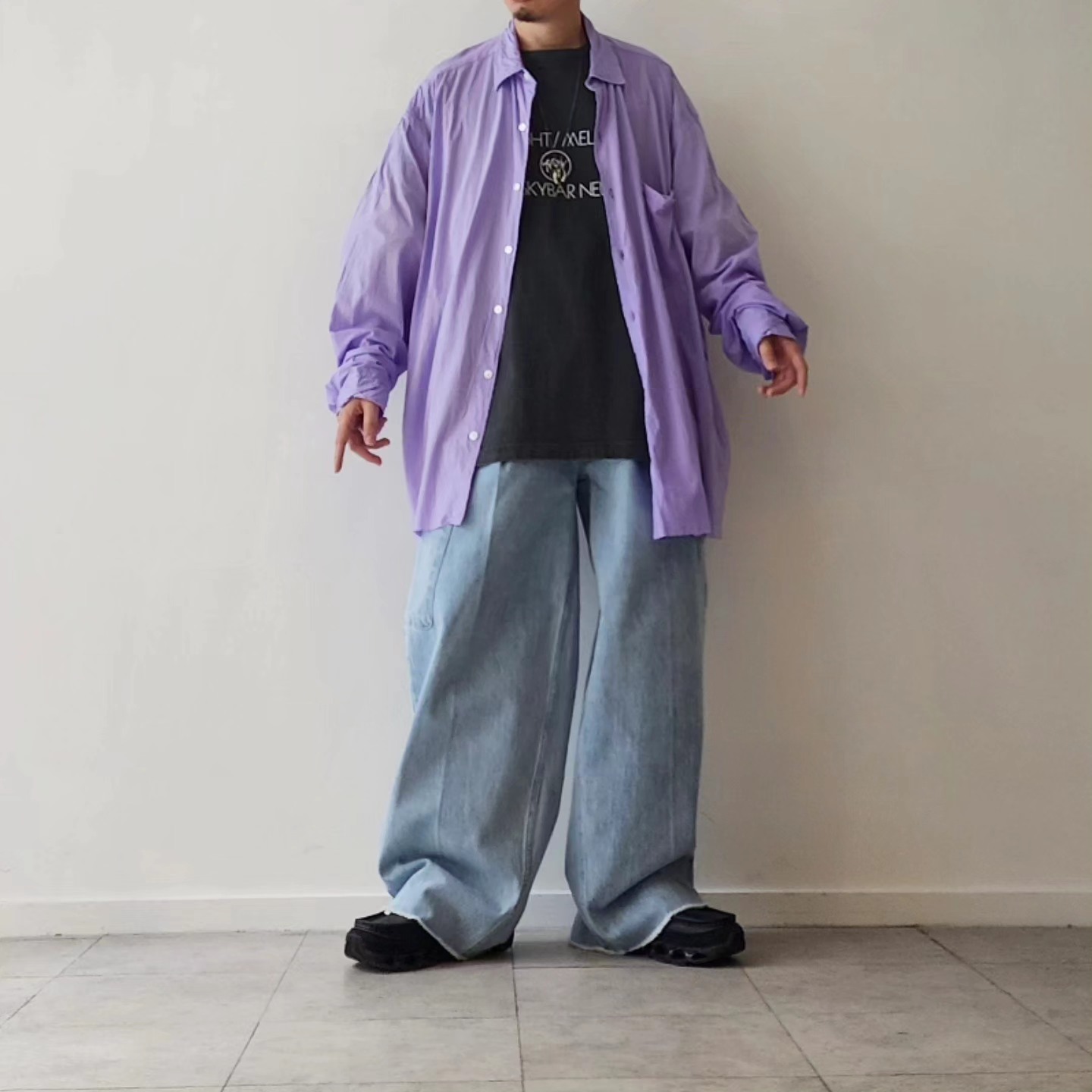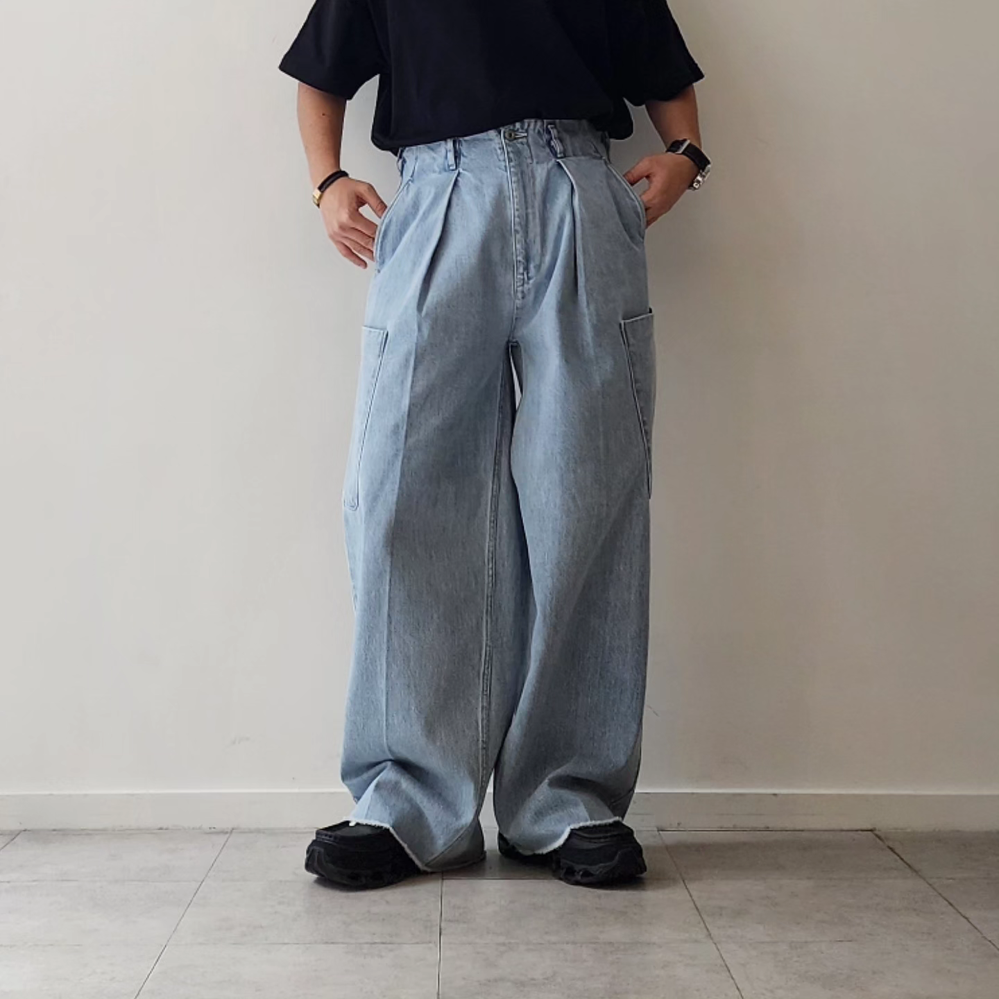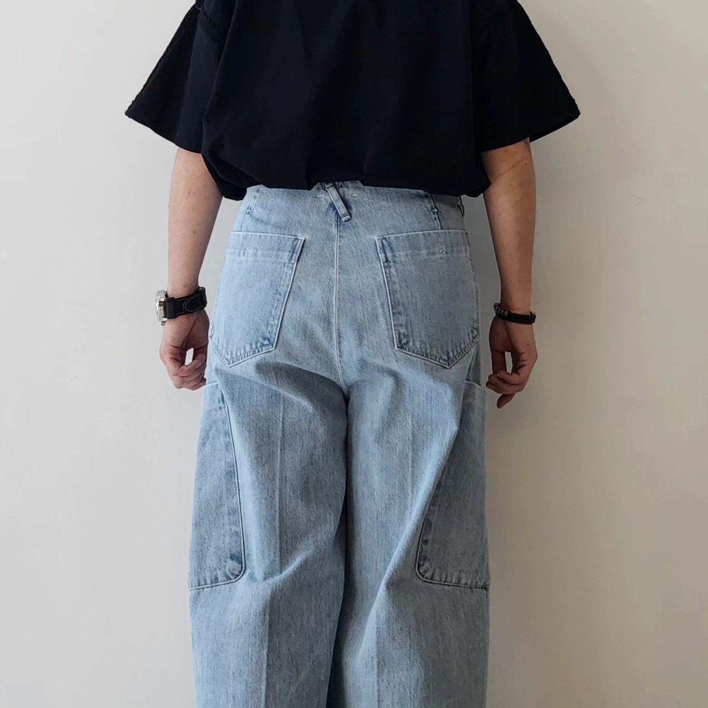 -Based on the standard model tuck buggy, the side patch PKT has been placed and dropped into a cargo style. The fabric uses 11 ounces of uneven yarn denim and has been processed with a chemical wash. Unlike common chemical washes, we created a unique recipe with craftsmen to soften and fade. Please enjoy the soft and greatly faded texture, not the finely processed feeling.