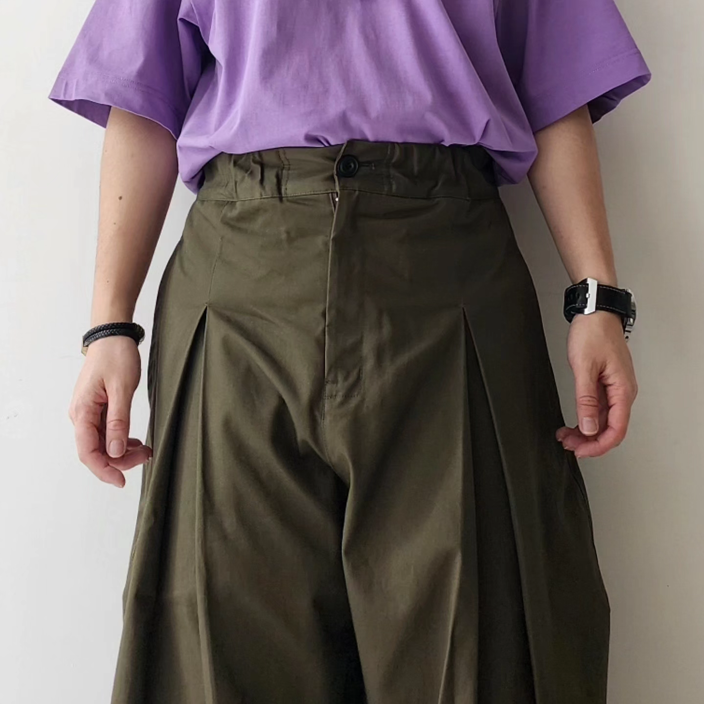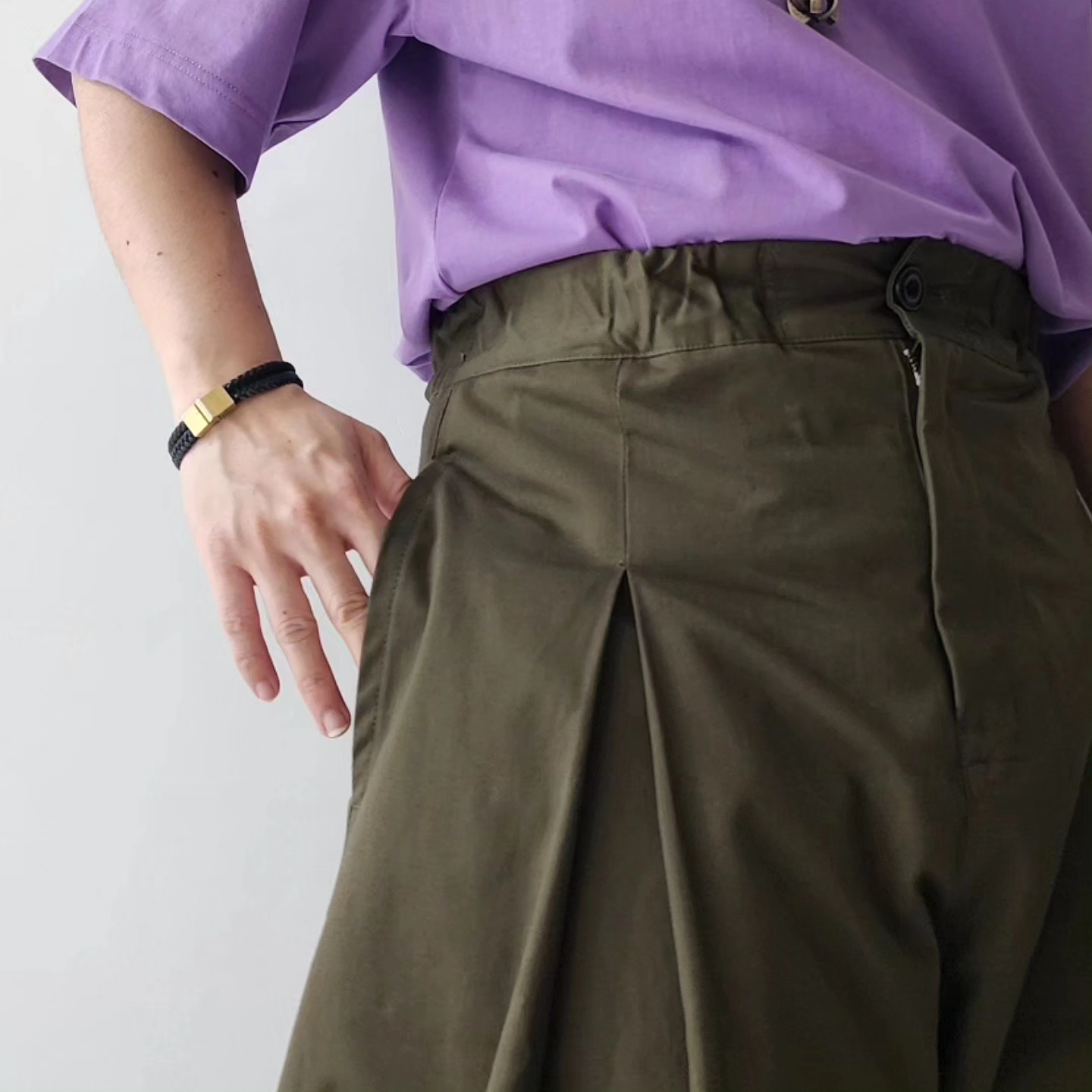– ELASTICATED WAISTBAND TROUSER WITH CENTRE BOX PLEAT.