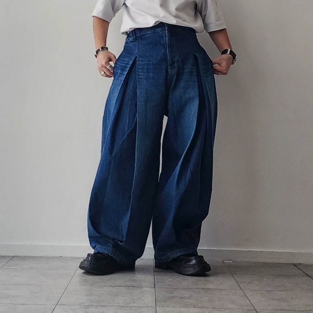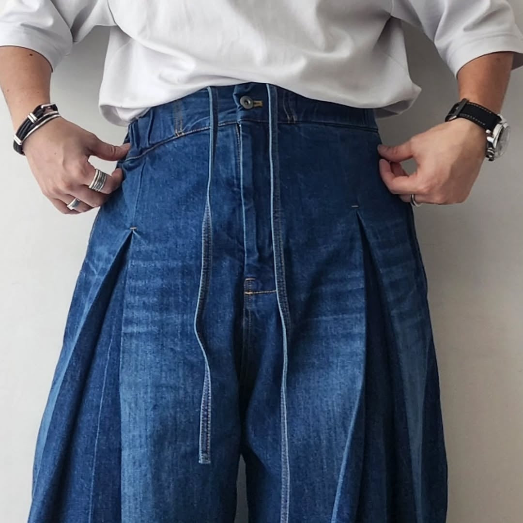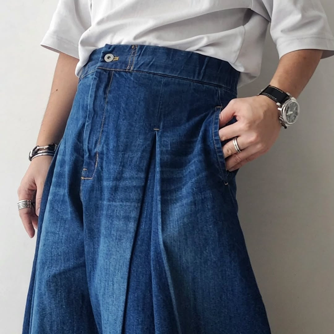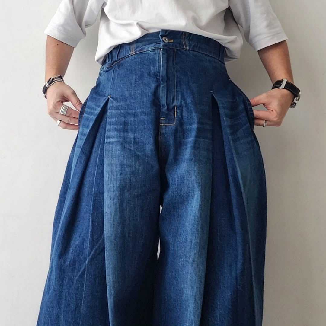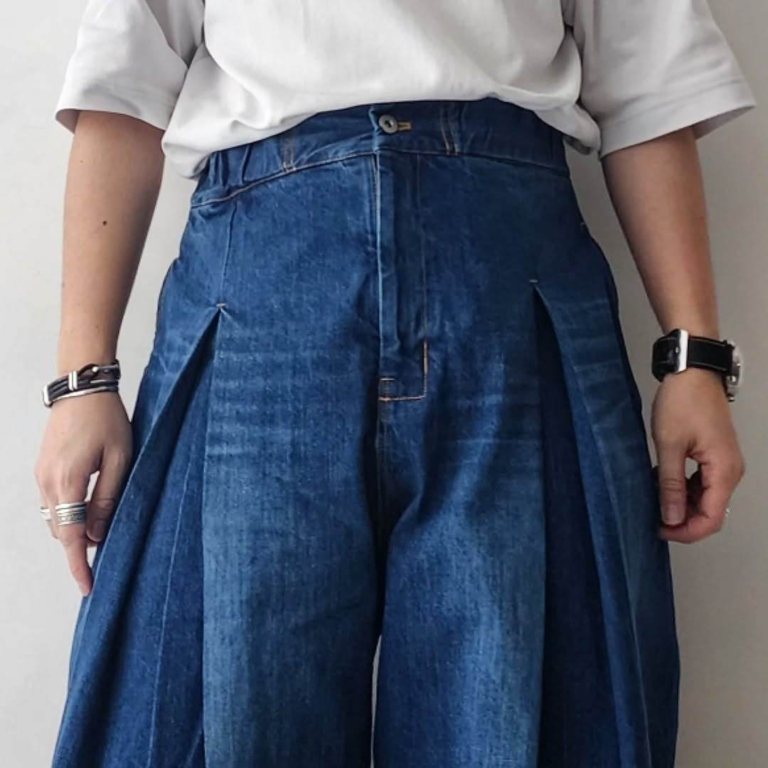 SAGE NATION / Box Pleat Trouser Denim Indigo Wash