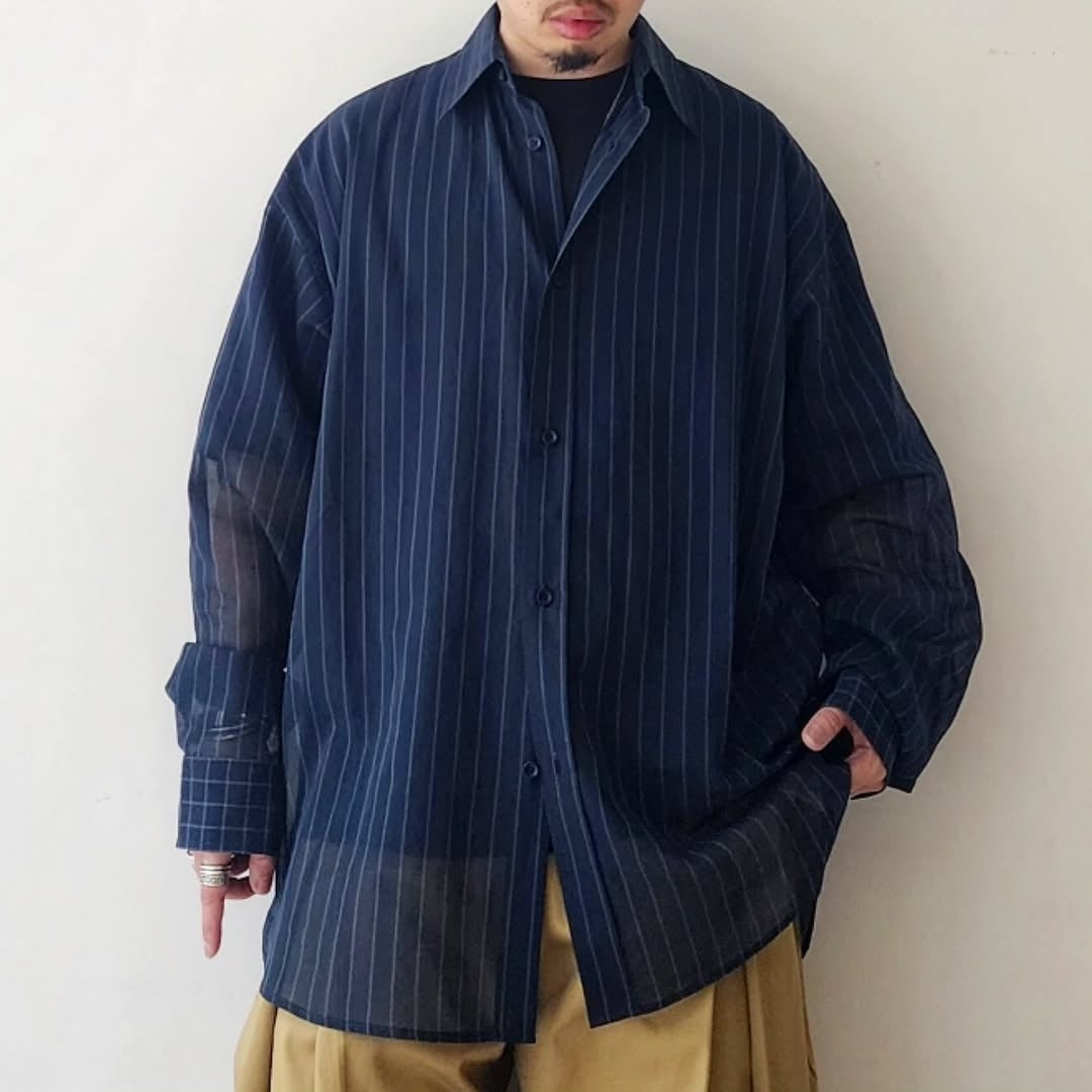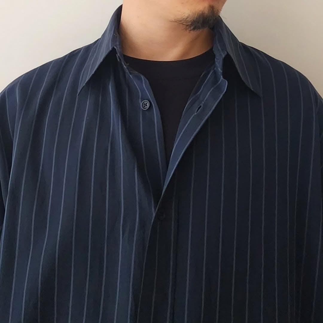 SAGE NATION / Chisholm Shirt - Navy / Cornflower Blue Stripe