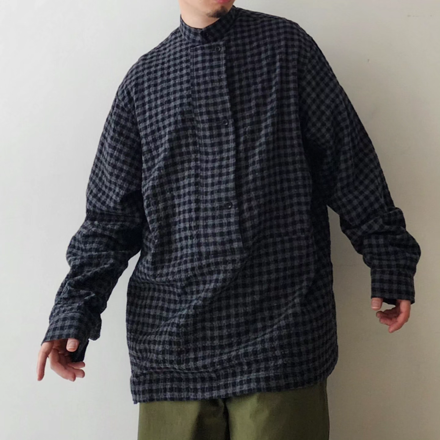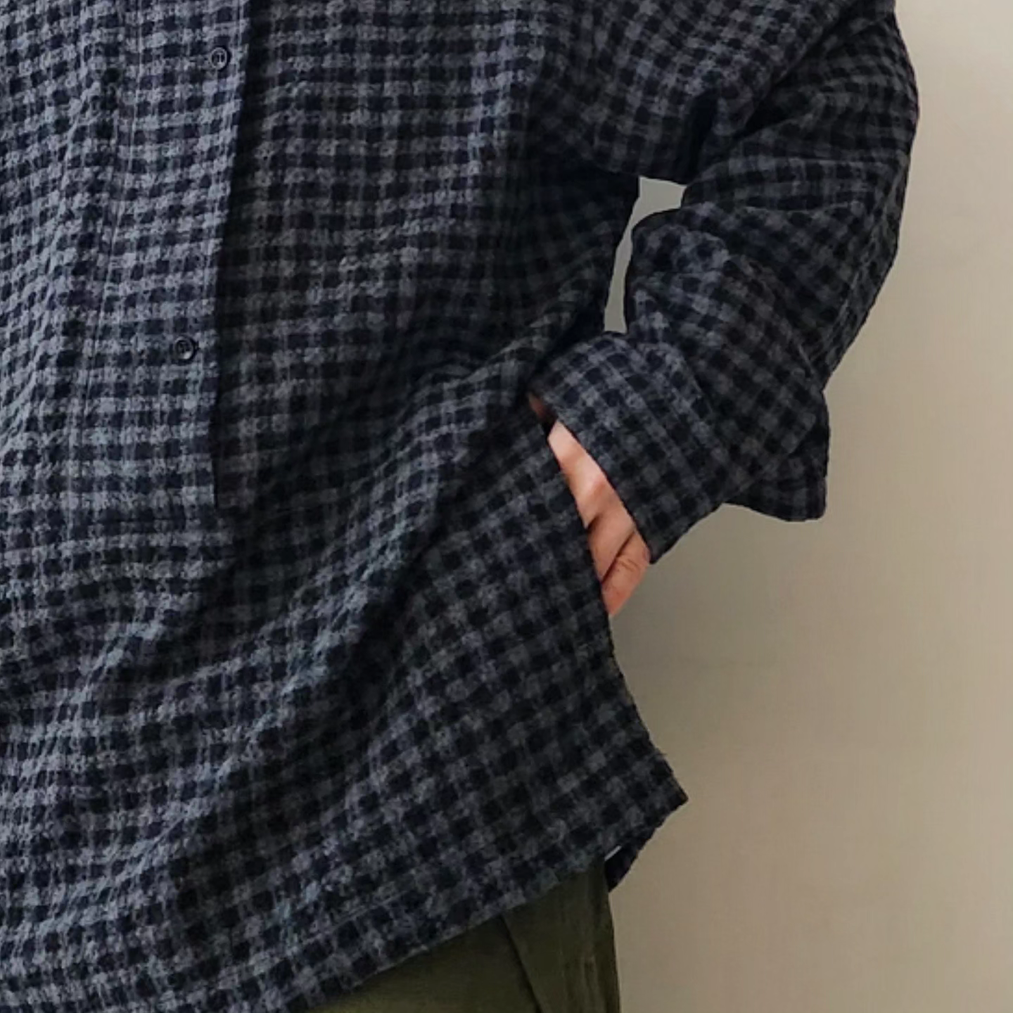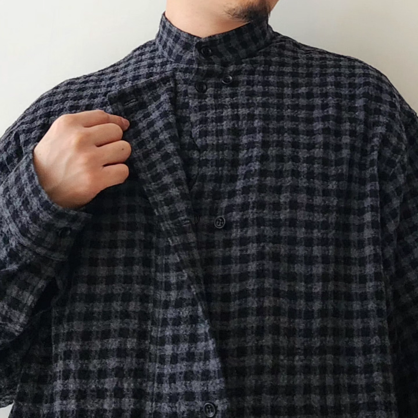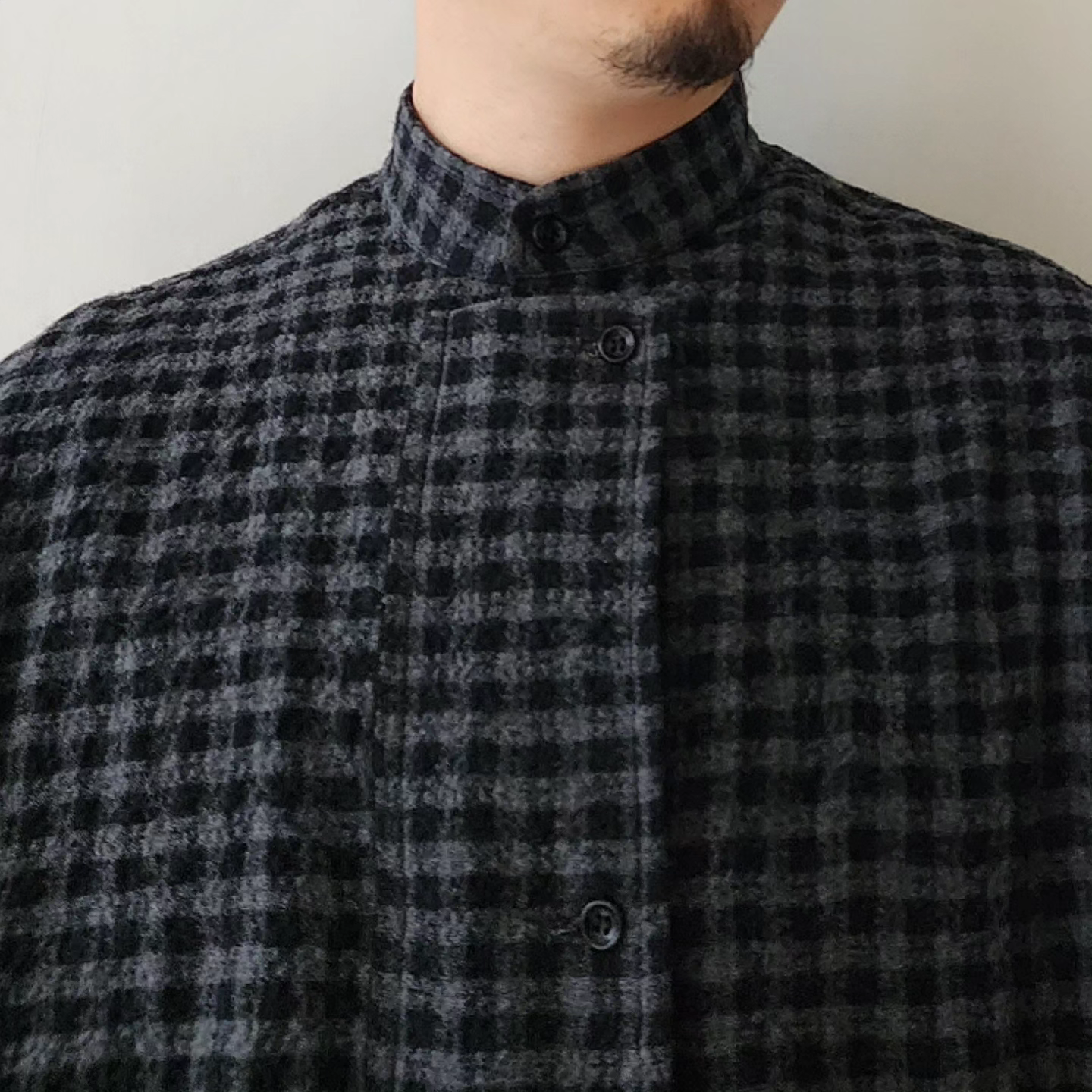 -Cotton- and wool-blend gingham shirt. Check pattern throughout.