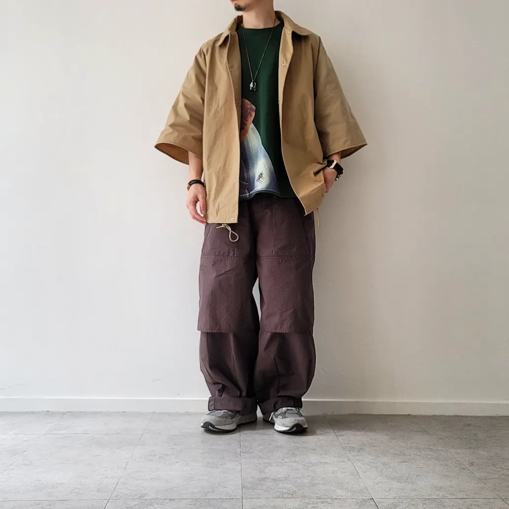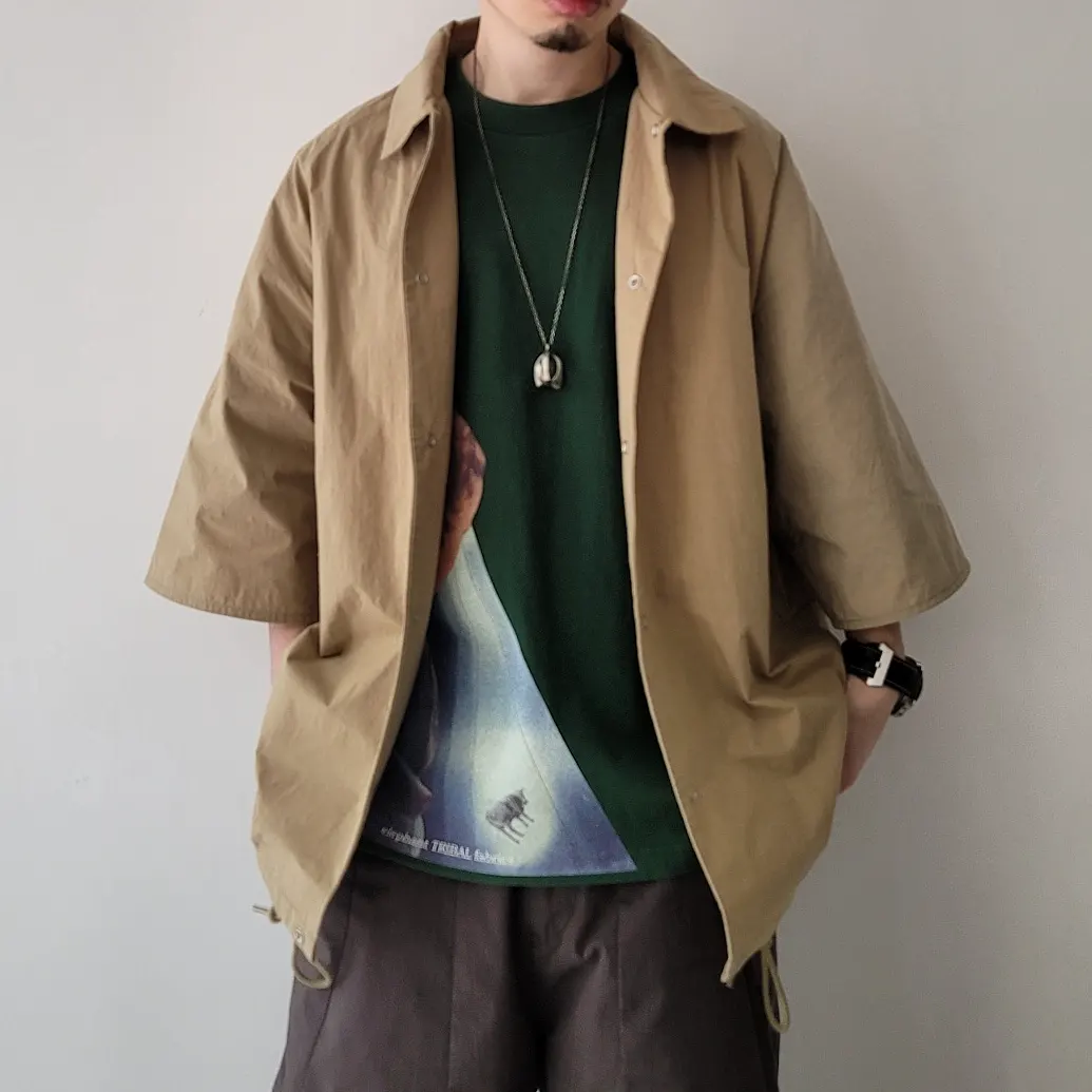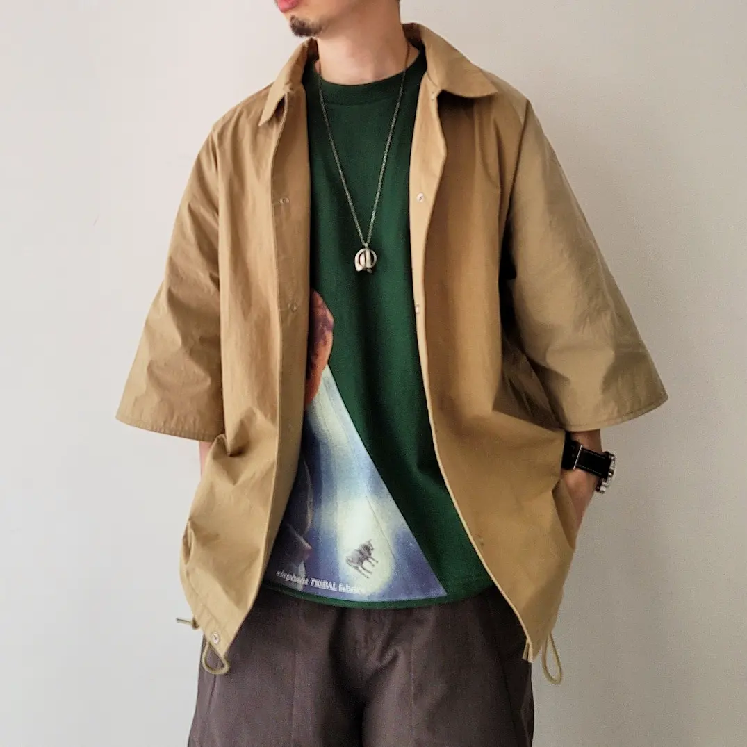 - The ‘HIPPIE RAGLAN CAPE SHIRTS’ is apart from a set up and goes perfectly with the ’HIPPIE SLACK WIDE SHORTS’.