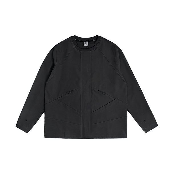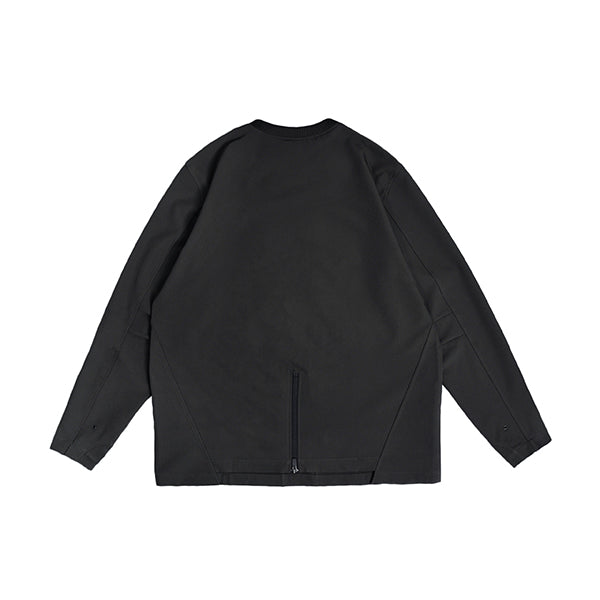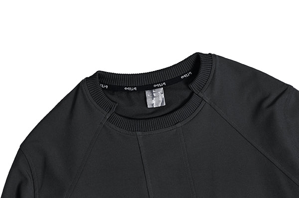 - 領口使用TR防鬆羅紋與剪裁線延伸做出斷層設計。加上後領防鬆固定織帶, 做出不易變形的圓形領口。