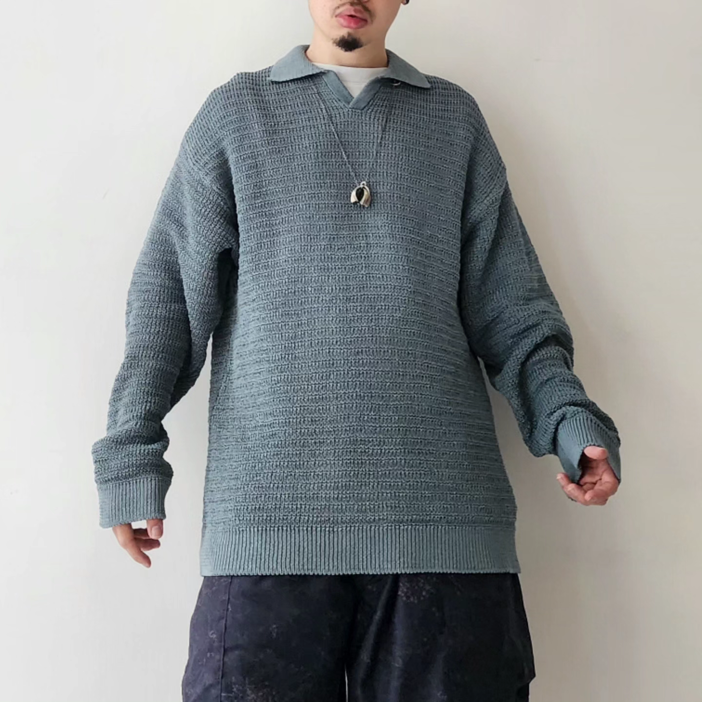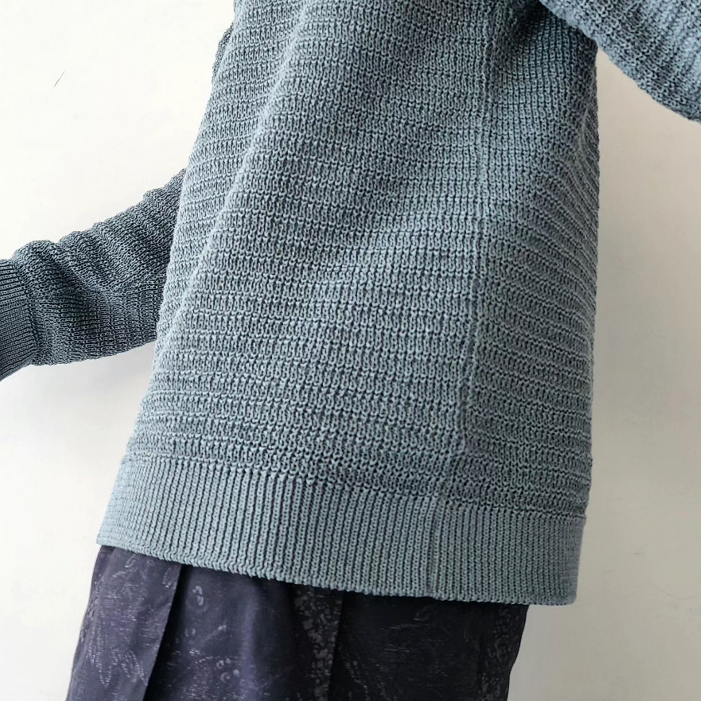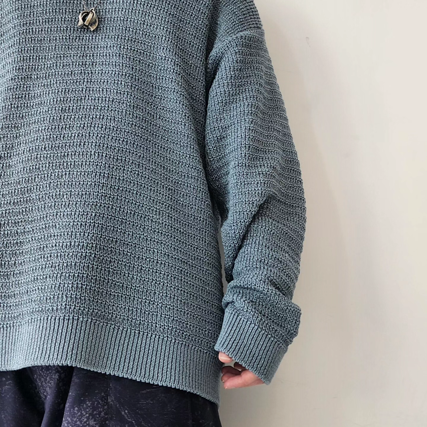 -The yarn uses cotton yarn with pseudo hemp processing from the 22S/S season. It has a firm and dry touch that is attractive.