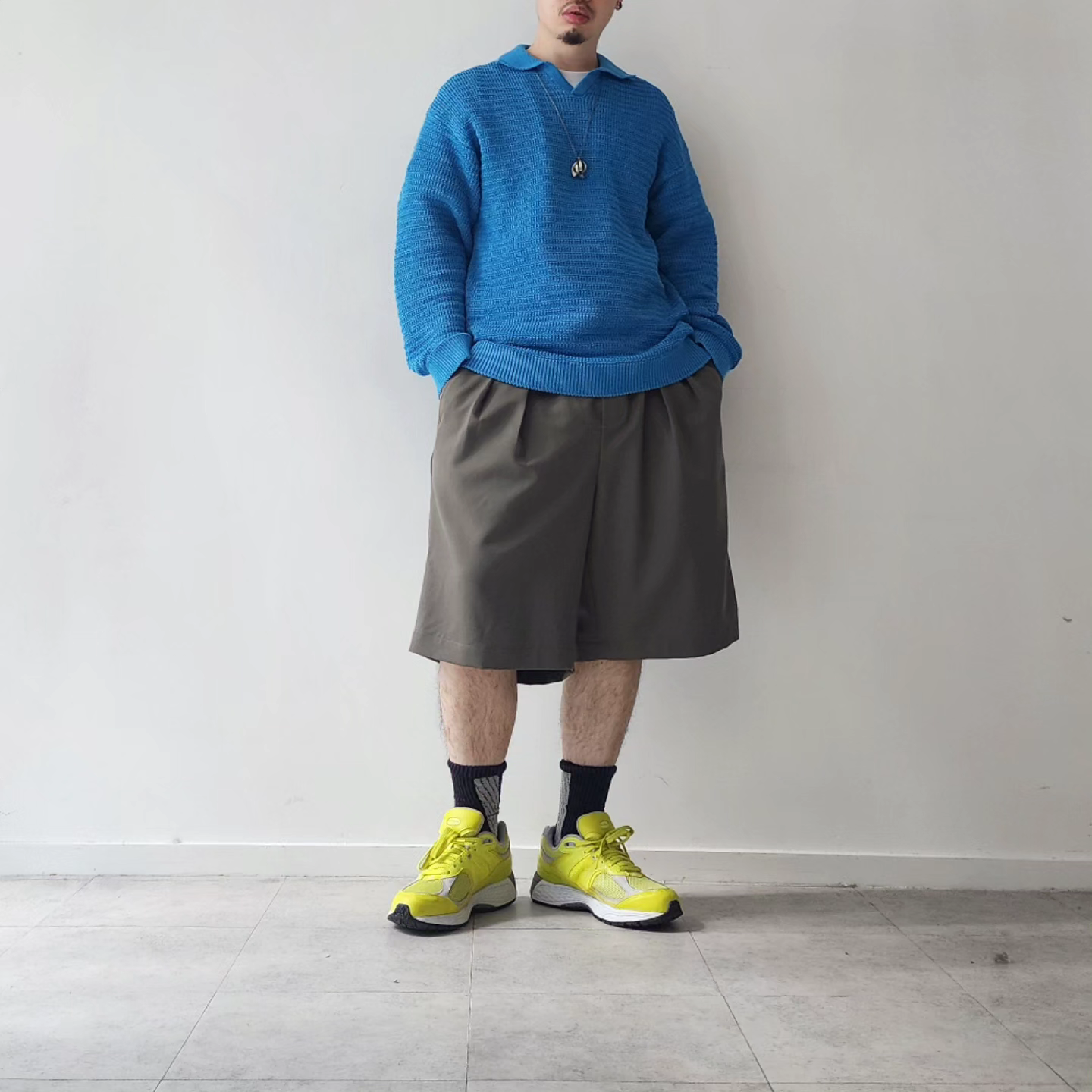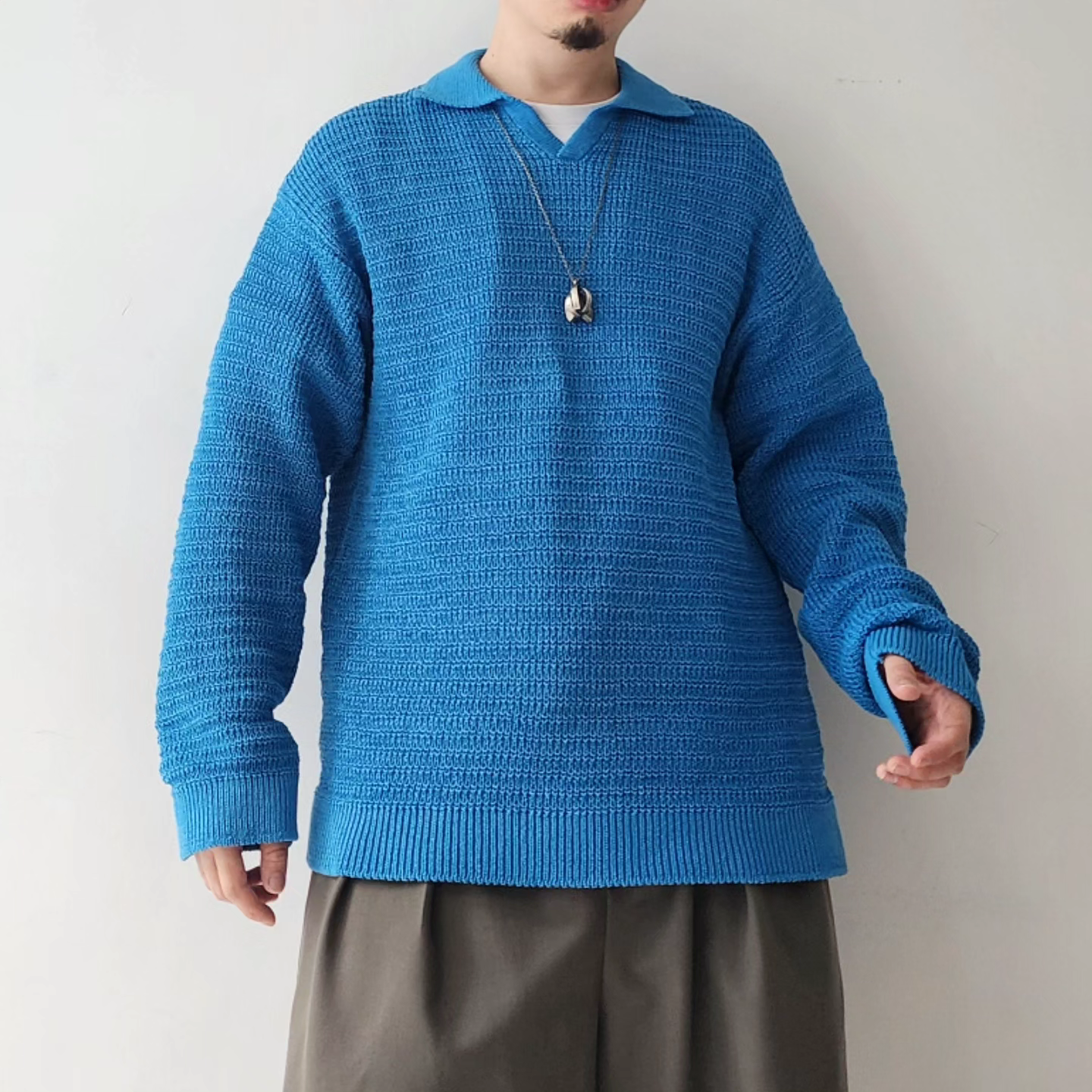 -The yarn uses cotton yarn with pseudo hemp processing from the 22S/S season.  It has a firm and dry touch that is attractive.