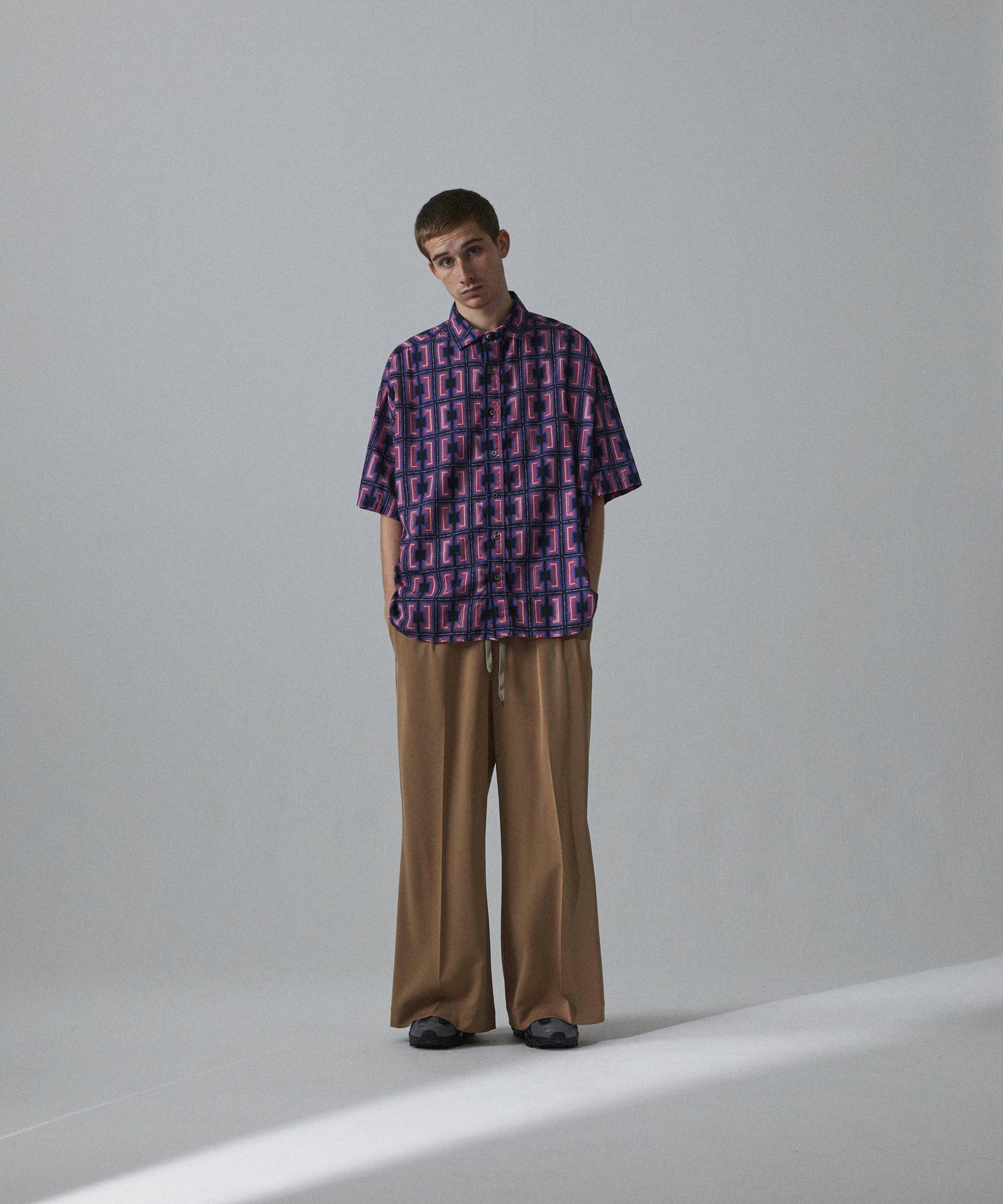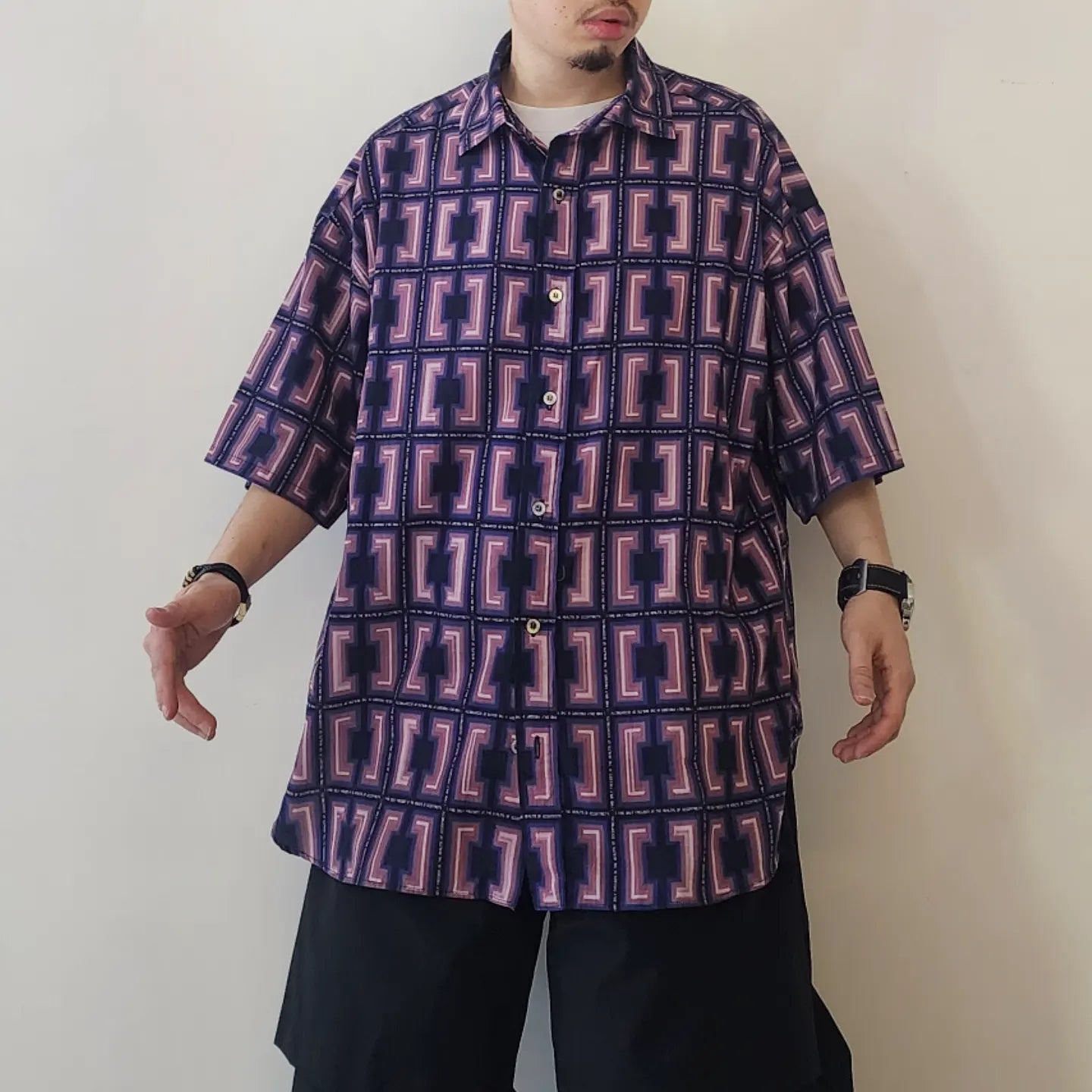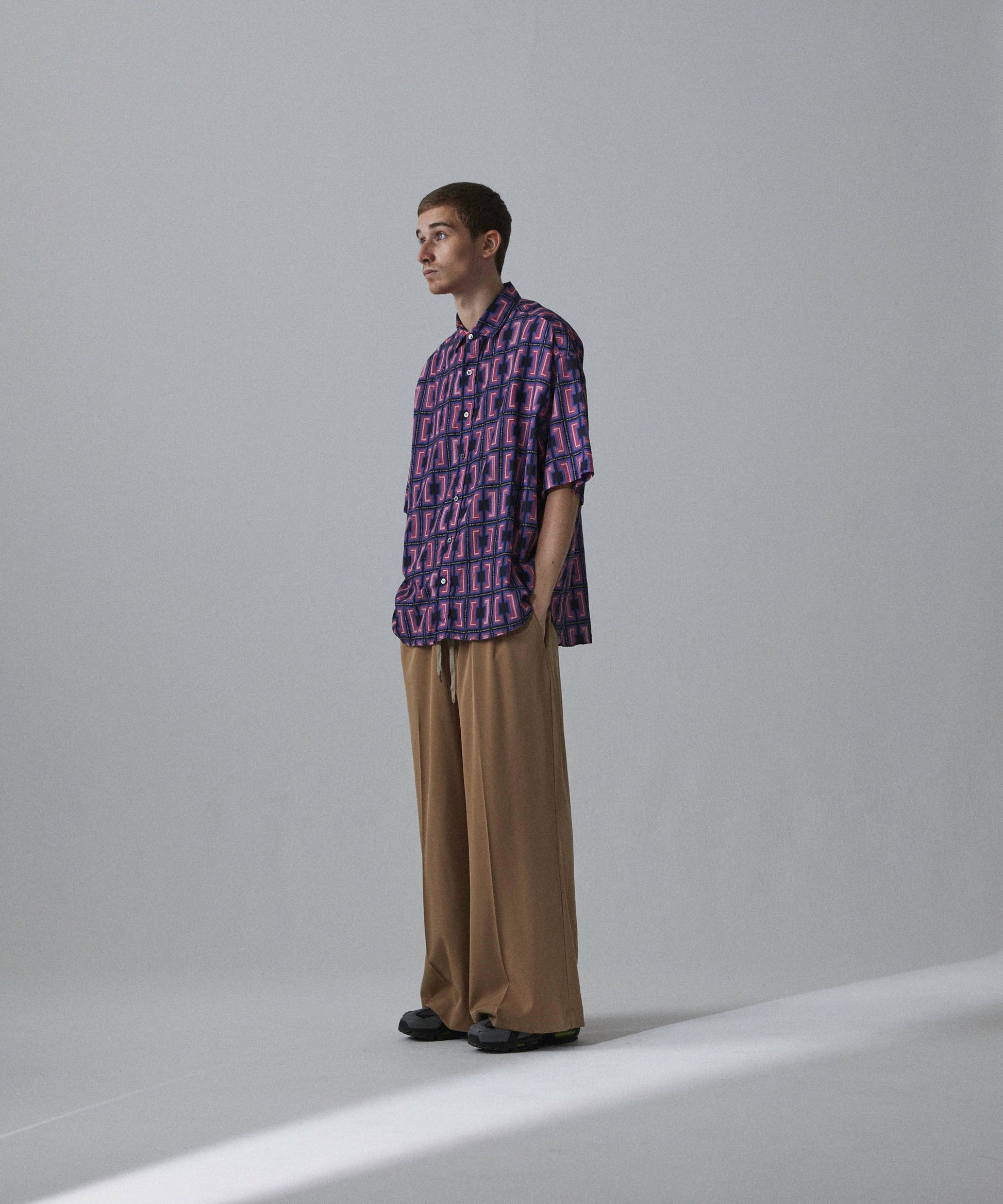 -A big silhouette H/S shirt with dropped shoulders and loose sleeves and width.