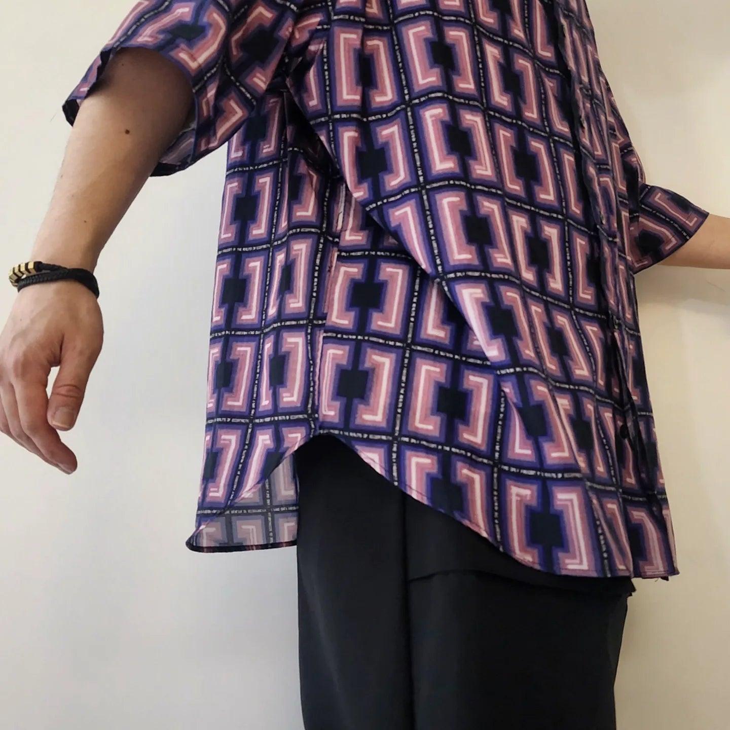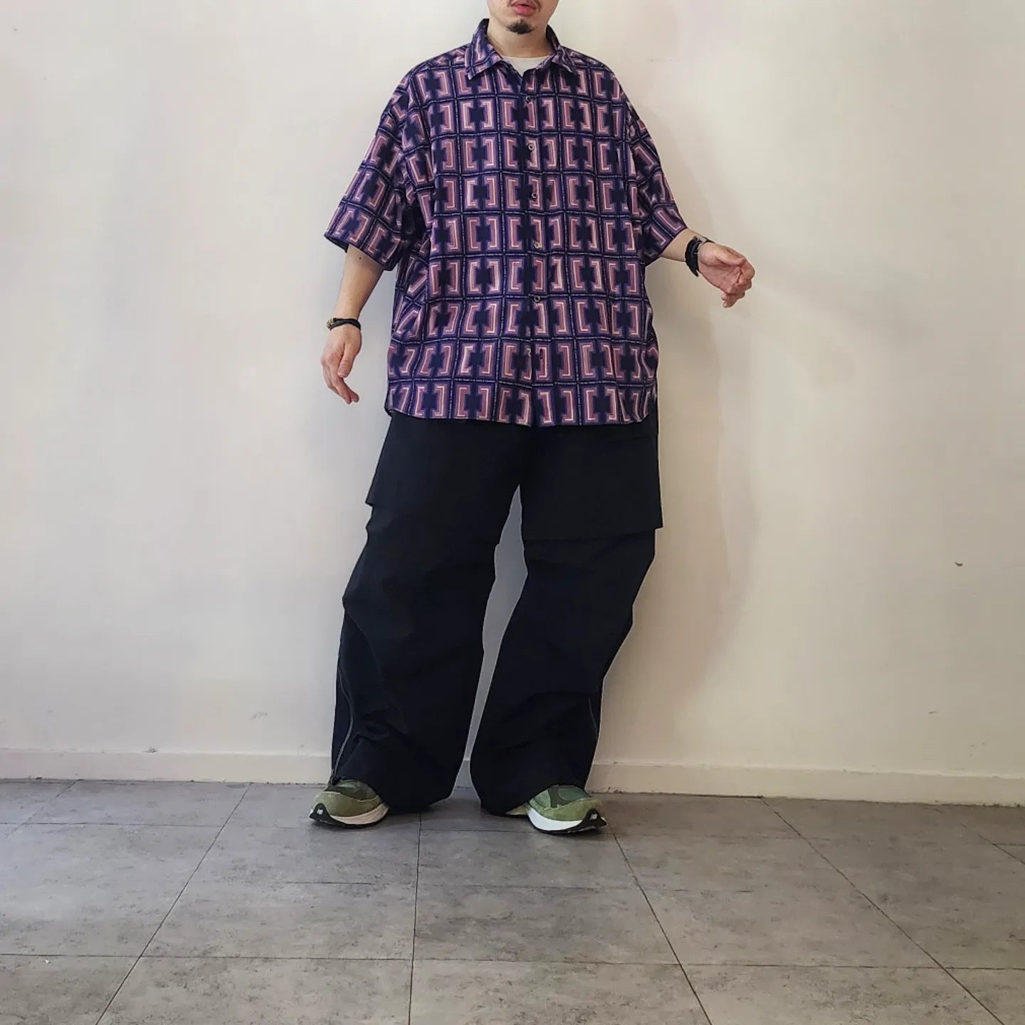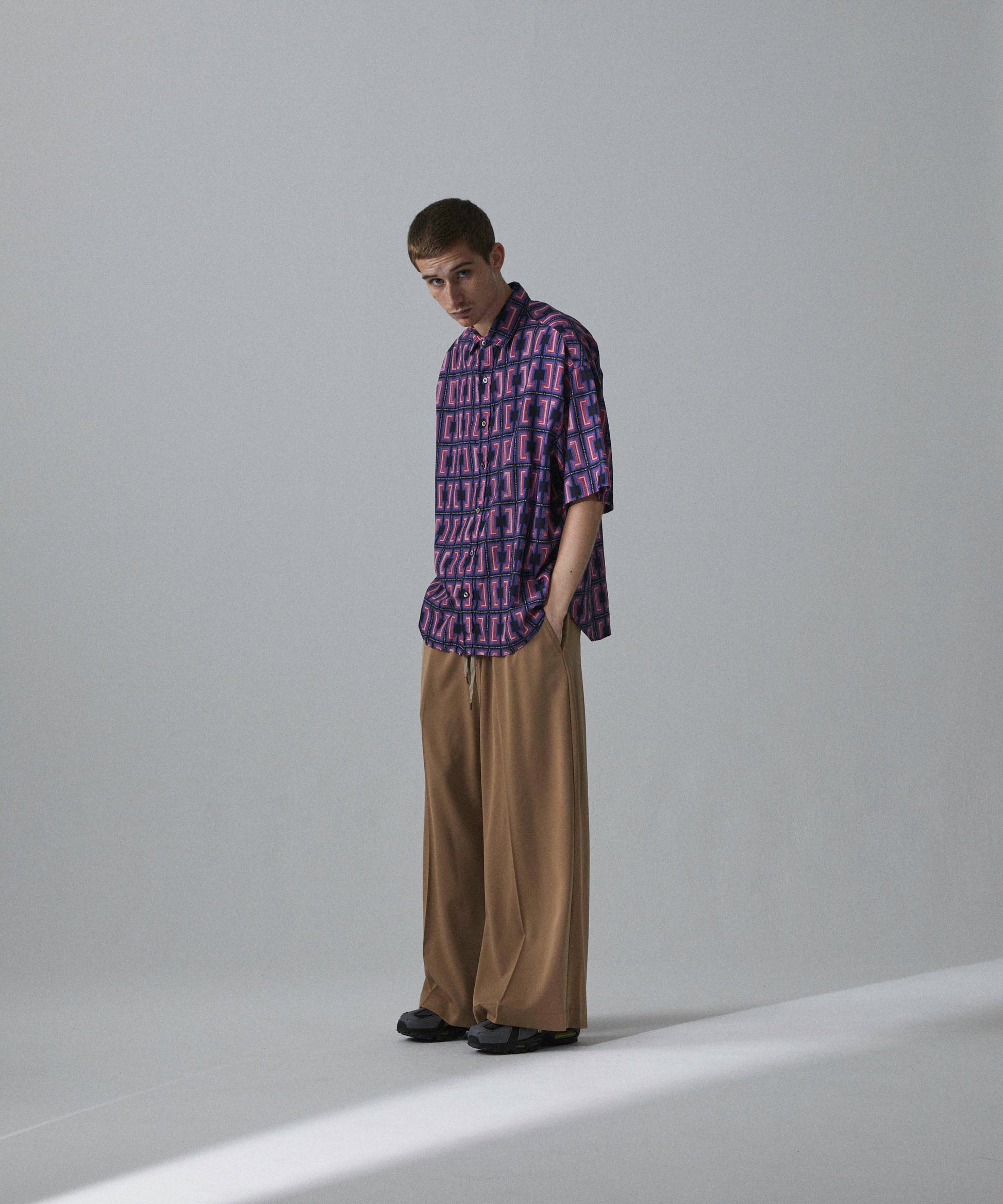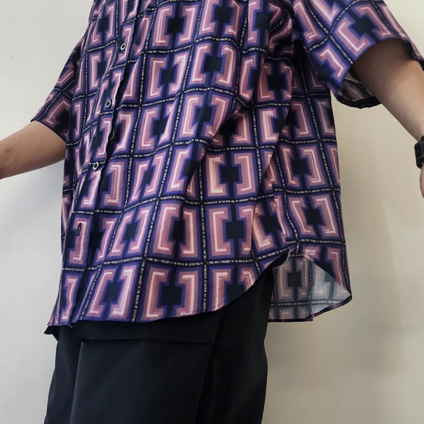 -A big silhouette H/S shirt with dropped shoulders and loose sleeves and width.