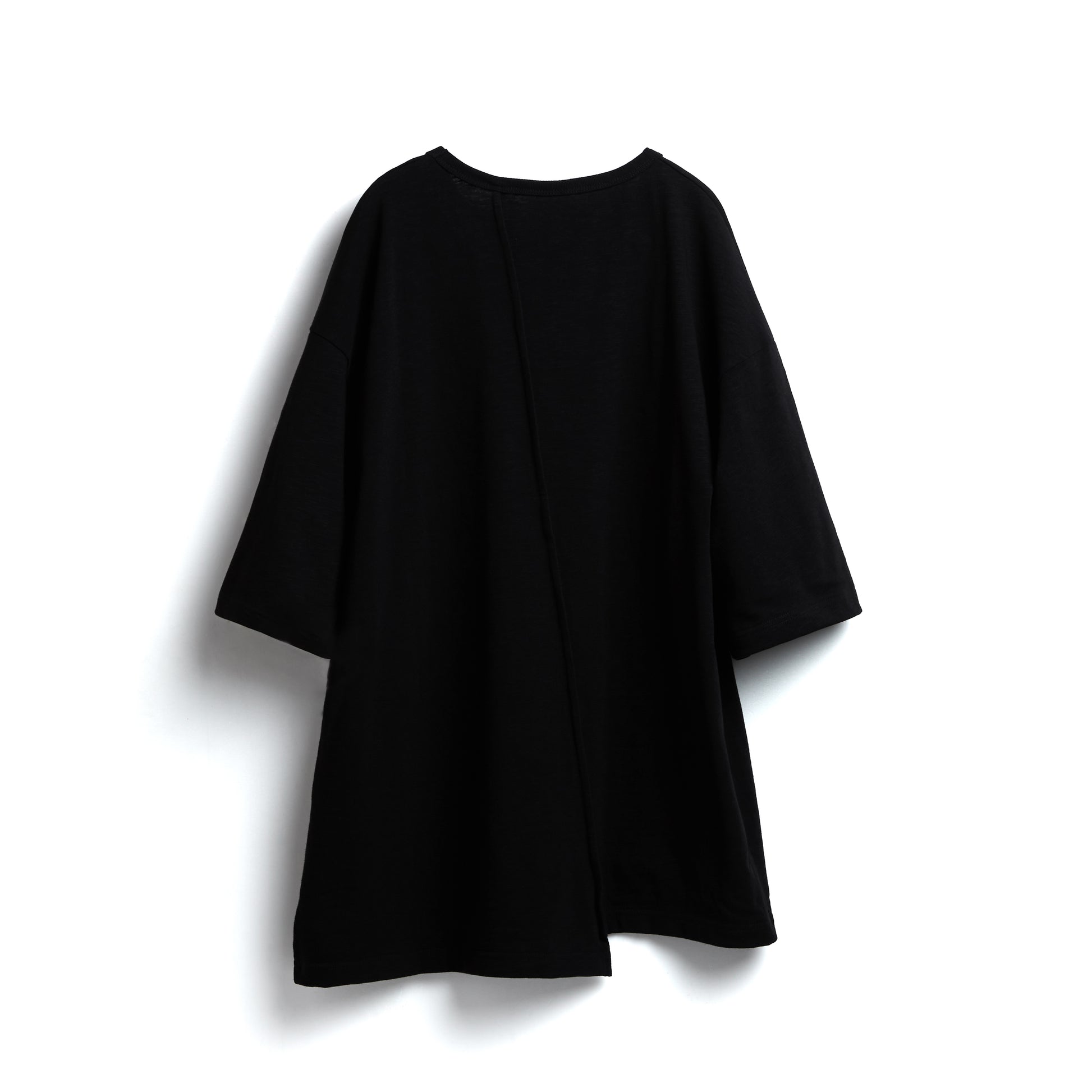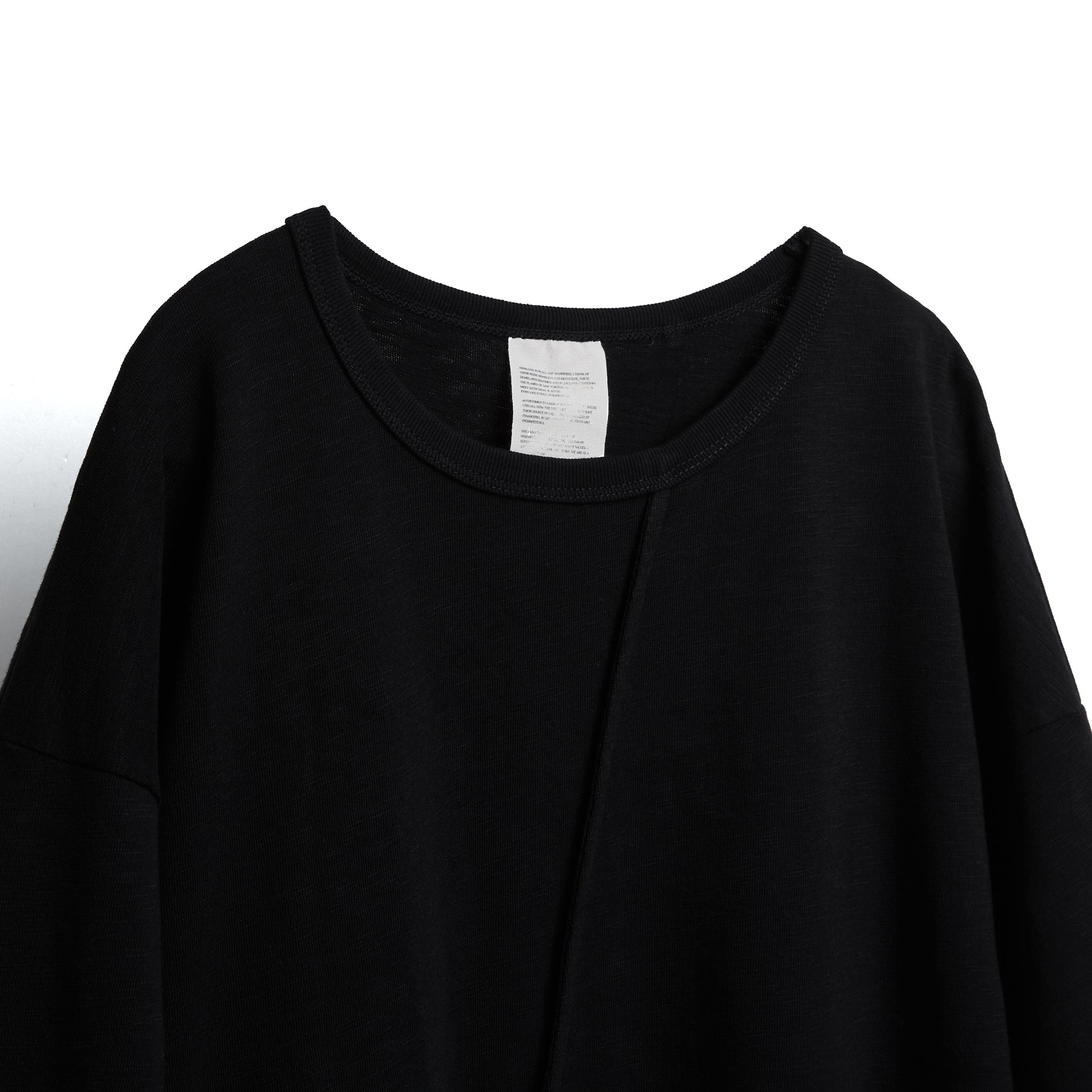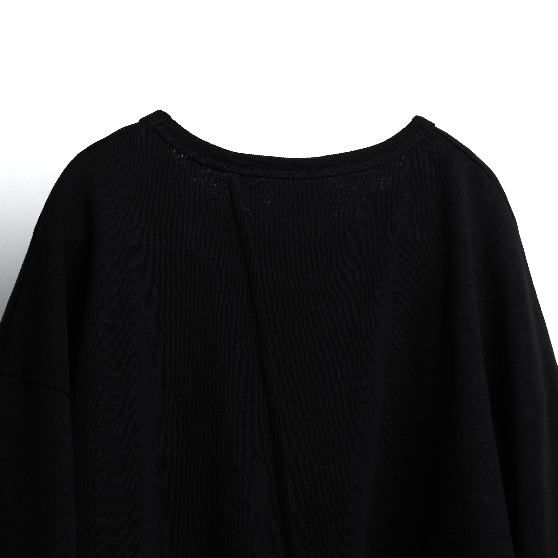 竹節寬鬆拼接T,採用台灣製25織碼高磅數竹節棉。此款竹節棉重達400克,較一般的T恤更有份量,穿起來更挺。25織的厚度又不會過於厚實,搭配竹節棉柔軟,高透氣性,抗拉伸,高吸濕性,非常適合台灣炎熱的夏天。設計方面採用寬版設計,整件舒適通風。前後都有利用特別的縫製方法,做下擺高低差的拼接設計。推出米色跟黑色兩色可以選擇。