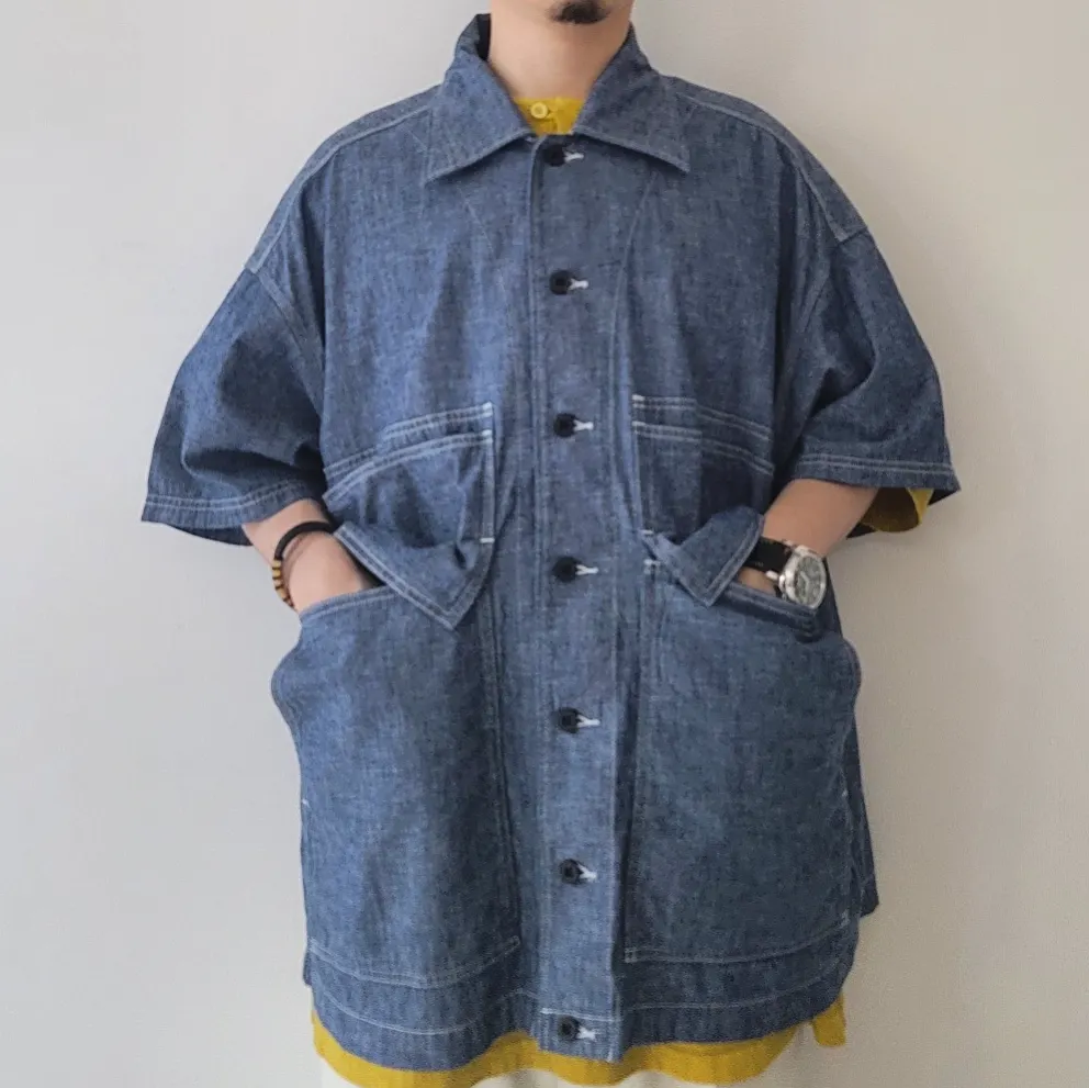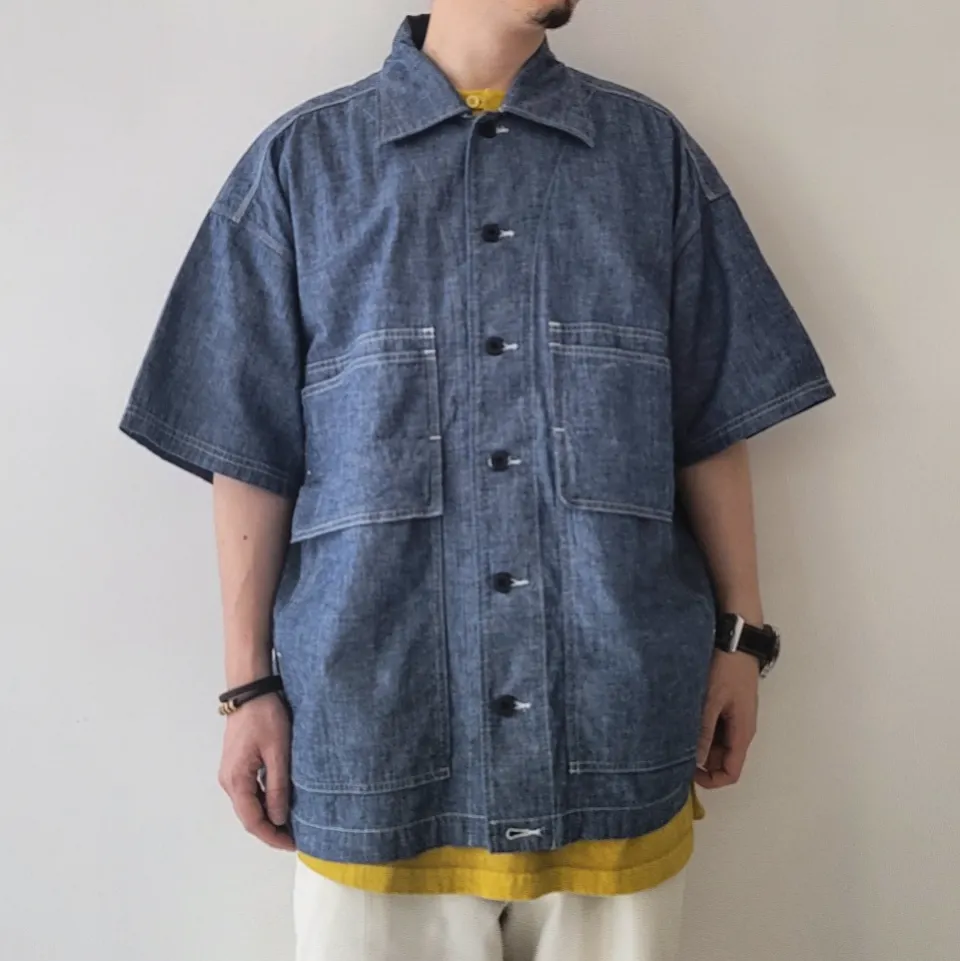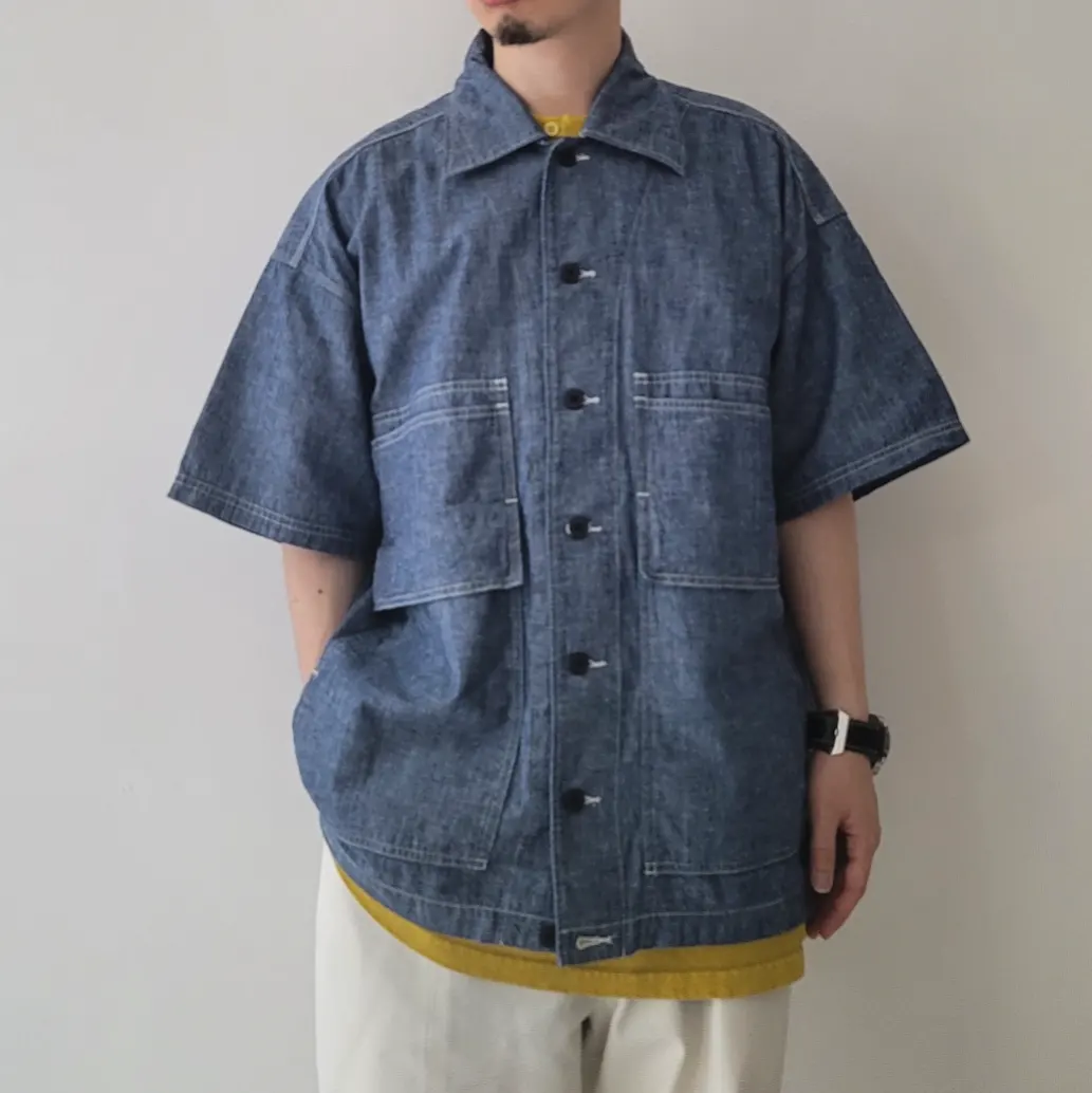 - A large-capacity short-sleeved shirt jacket with a hunting jacket design.