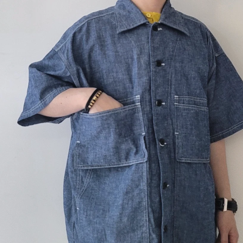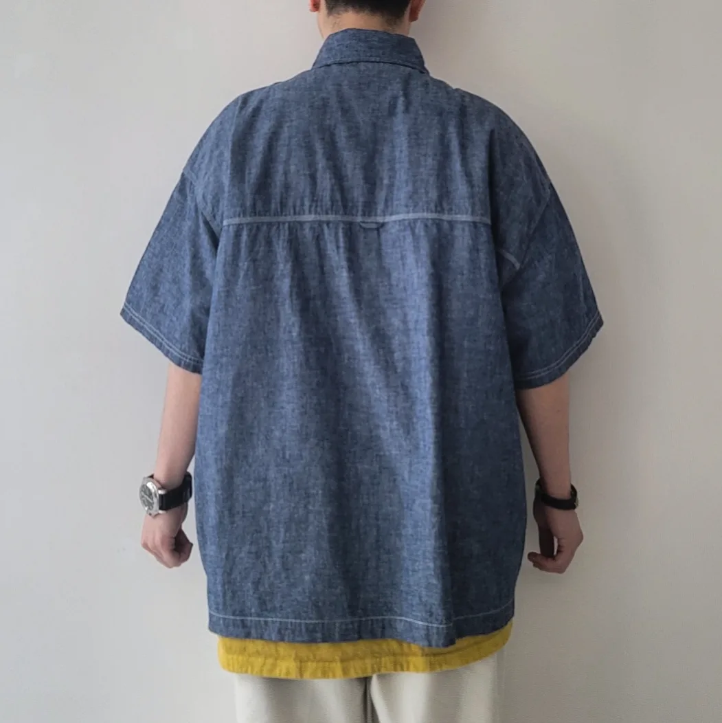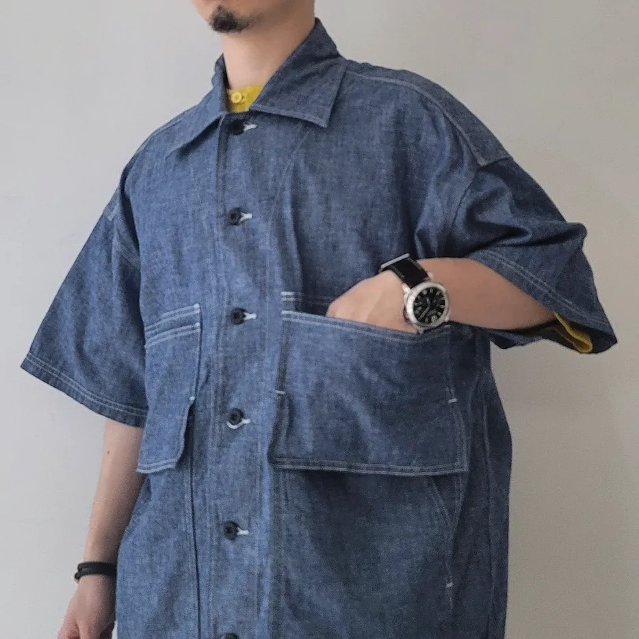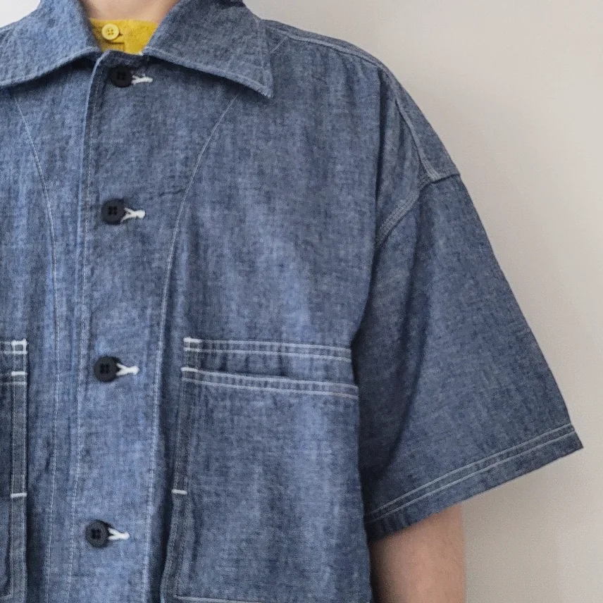 - A large-capacity short-sleeved shirt jacket with a hunting jacket design.