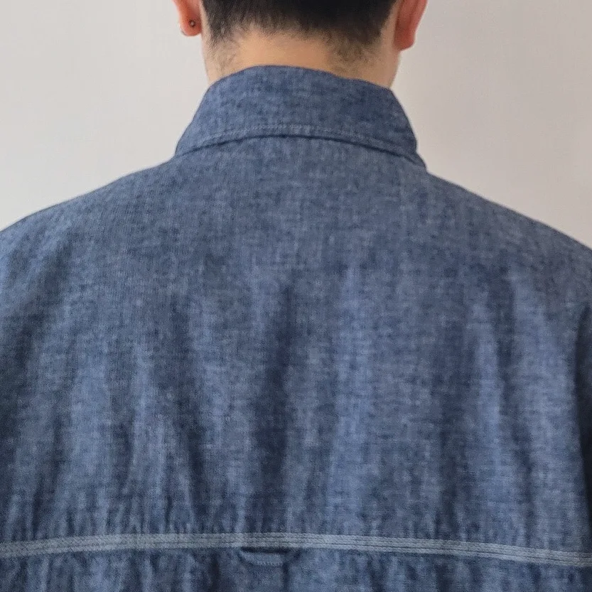 - White stitching creates a work shirt-like atmosphere.