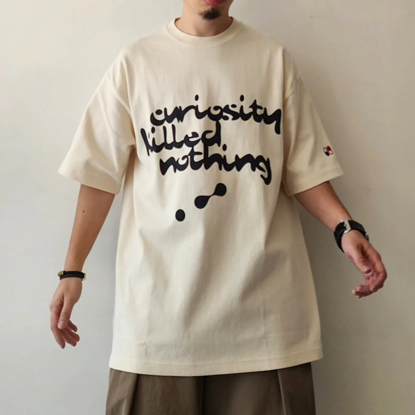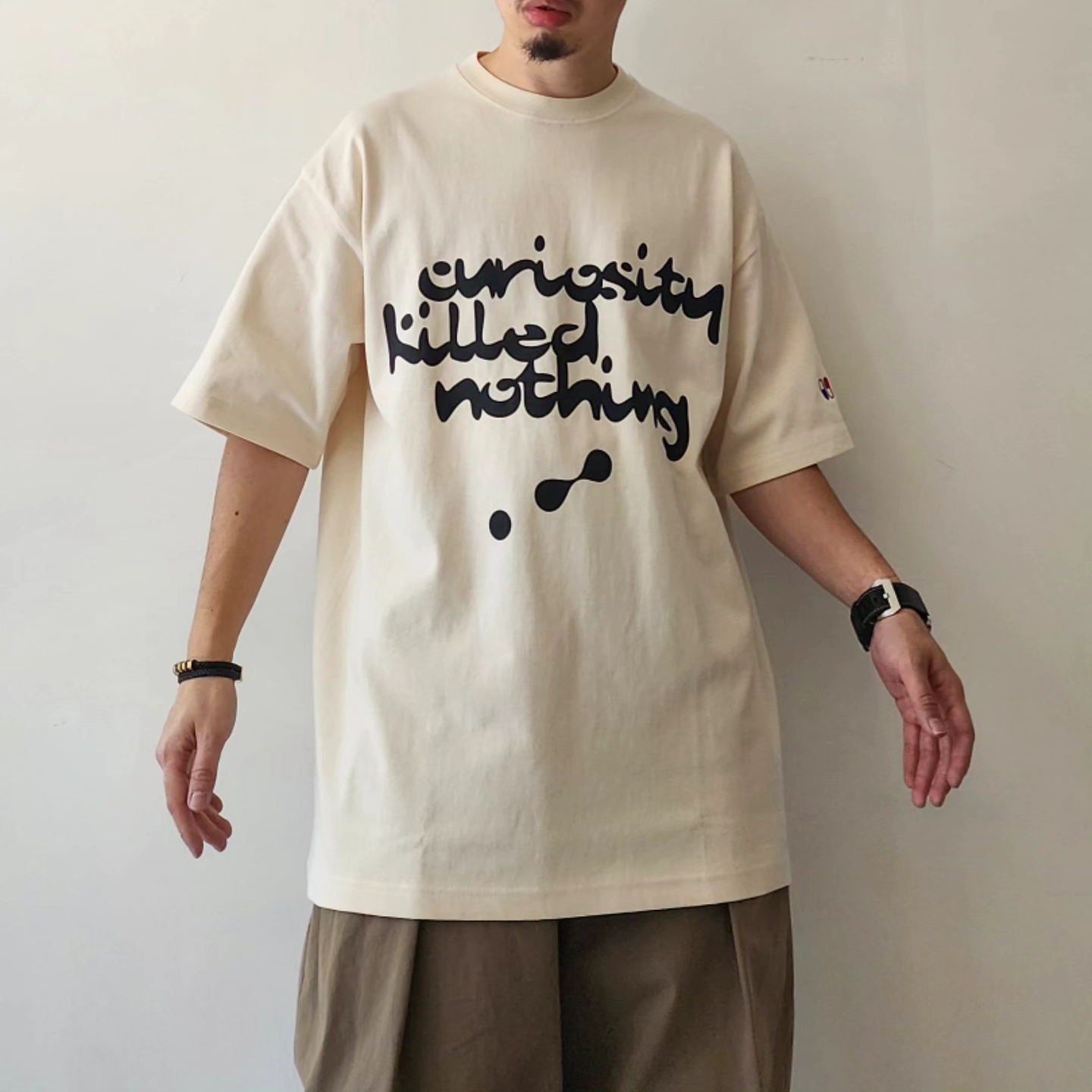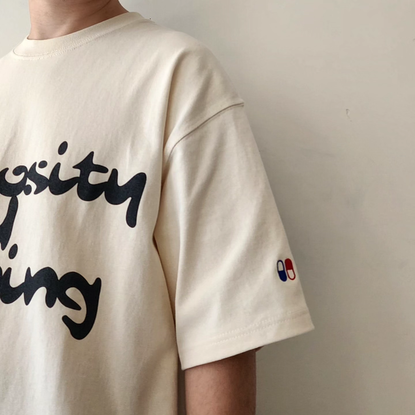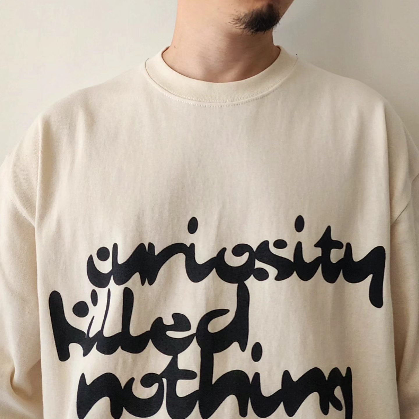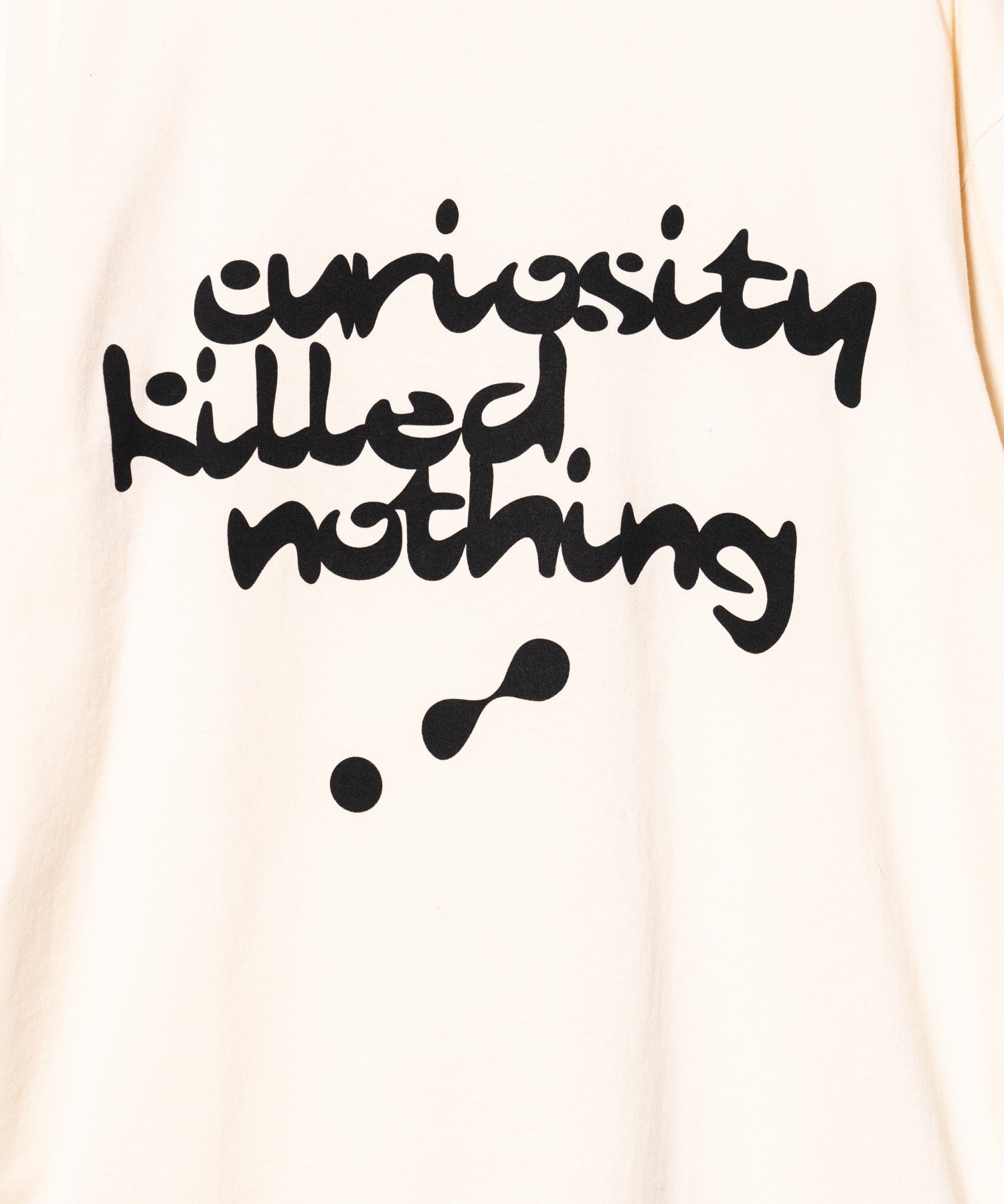“Curiosity Killed Nothing” A paradoxical message to the old American proverb, “Too much curiosity is a recipe for disaster.” It means that despite failures, curiosity and initial impulses have driven humans to make new discoveries and evolve. Graphics reminiscent of the Chemical Brothers, who led the electro rave scene. It expresses curiosity in search of a trip feeling. The left cuff is embroidered with a Red Pill/Blue Pill motif that represents choice.