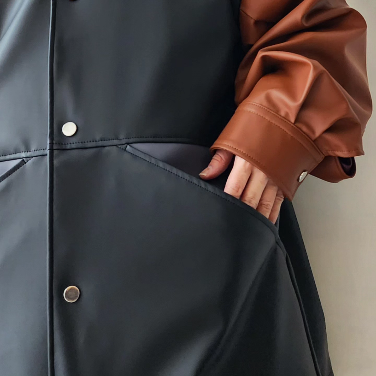 TAUPE / Laminate Blocking Coach Jacket