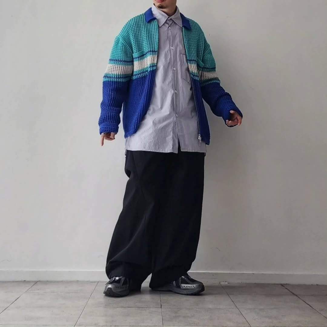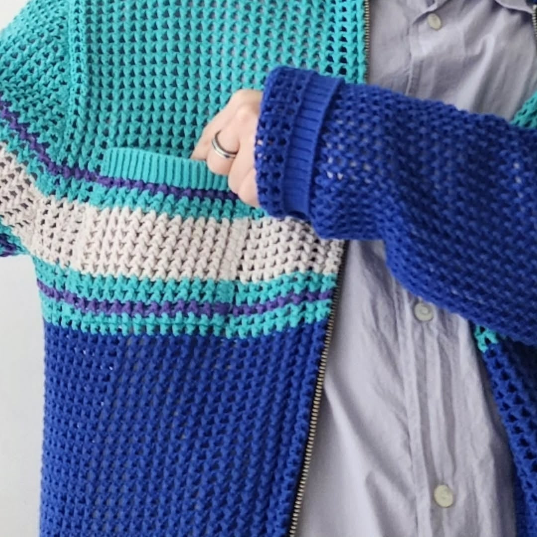 A zip knit shirt with large mesh knitting.