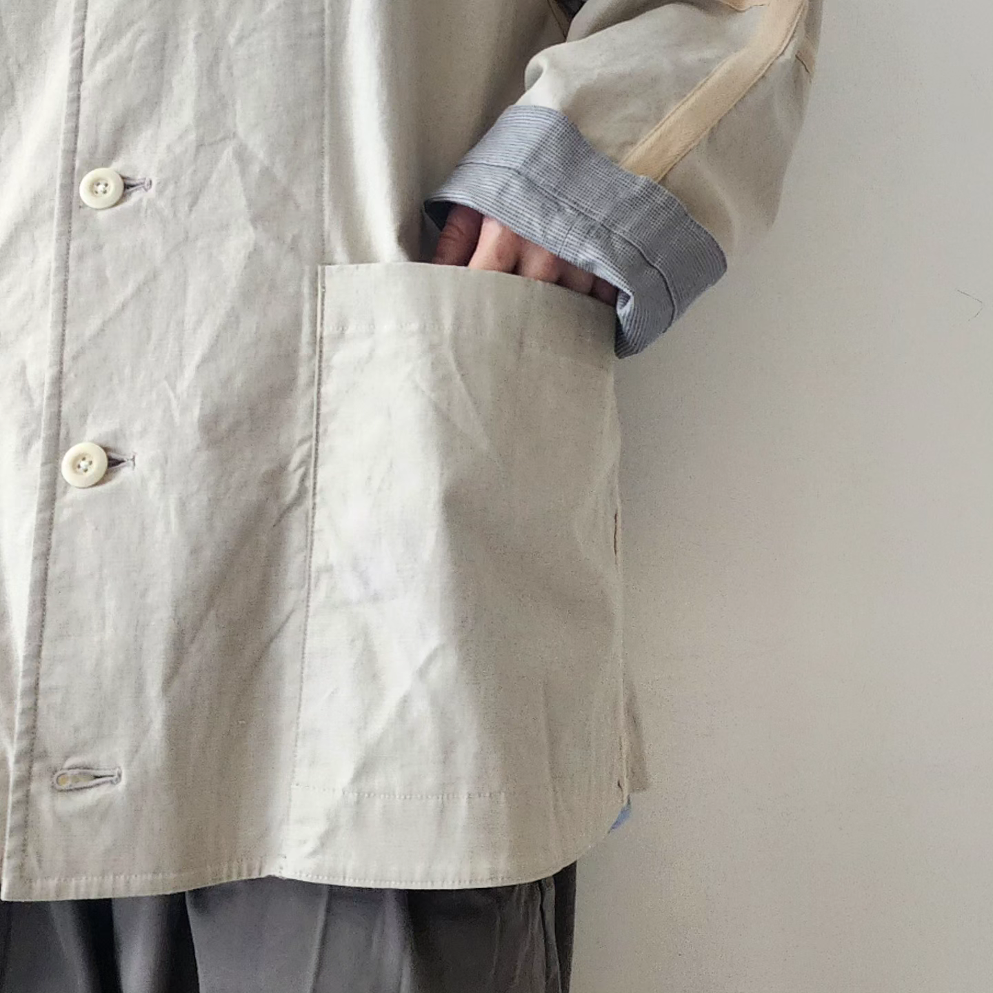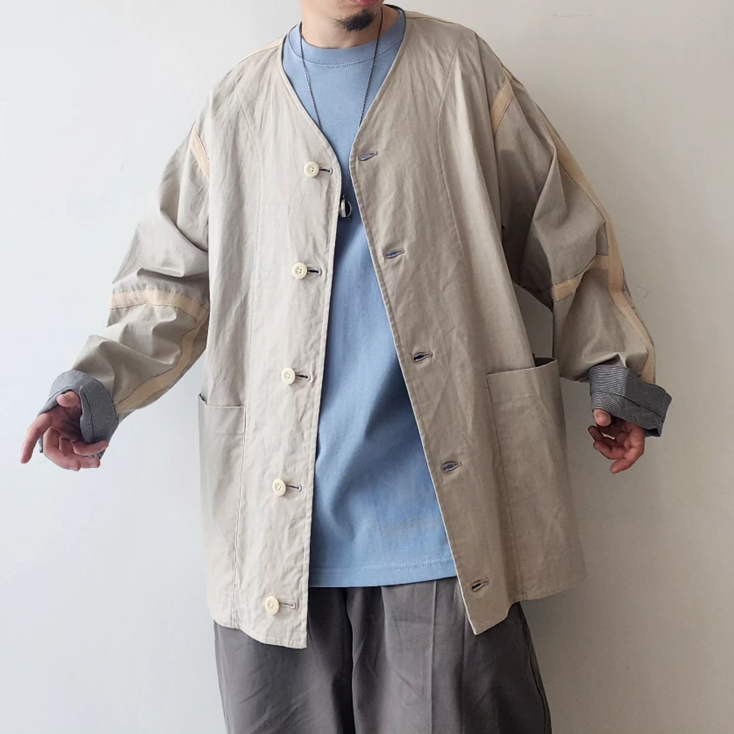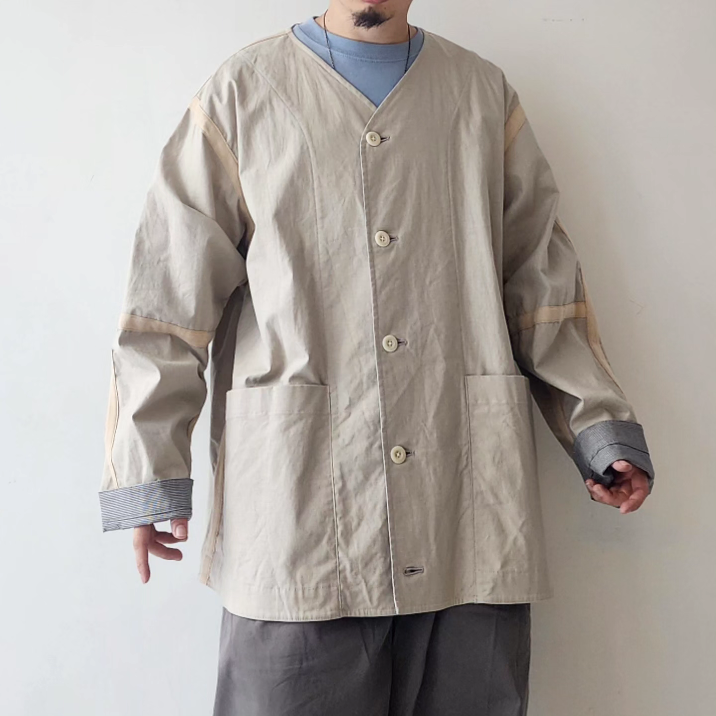 TS(S) / Linen*Cotton Stretch Cloth Reversible Seam Taping Collarless Jacket