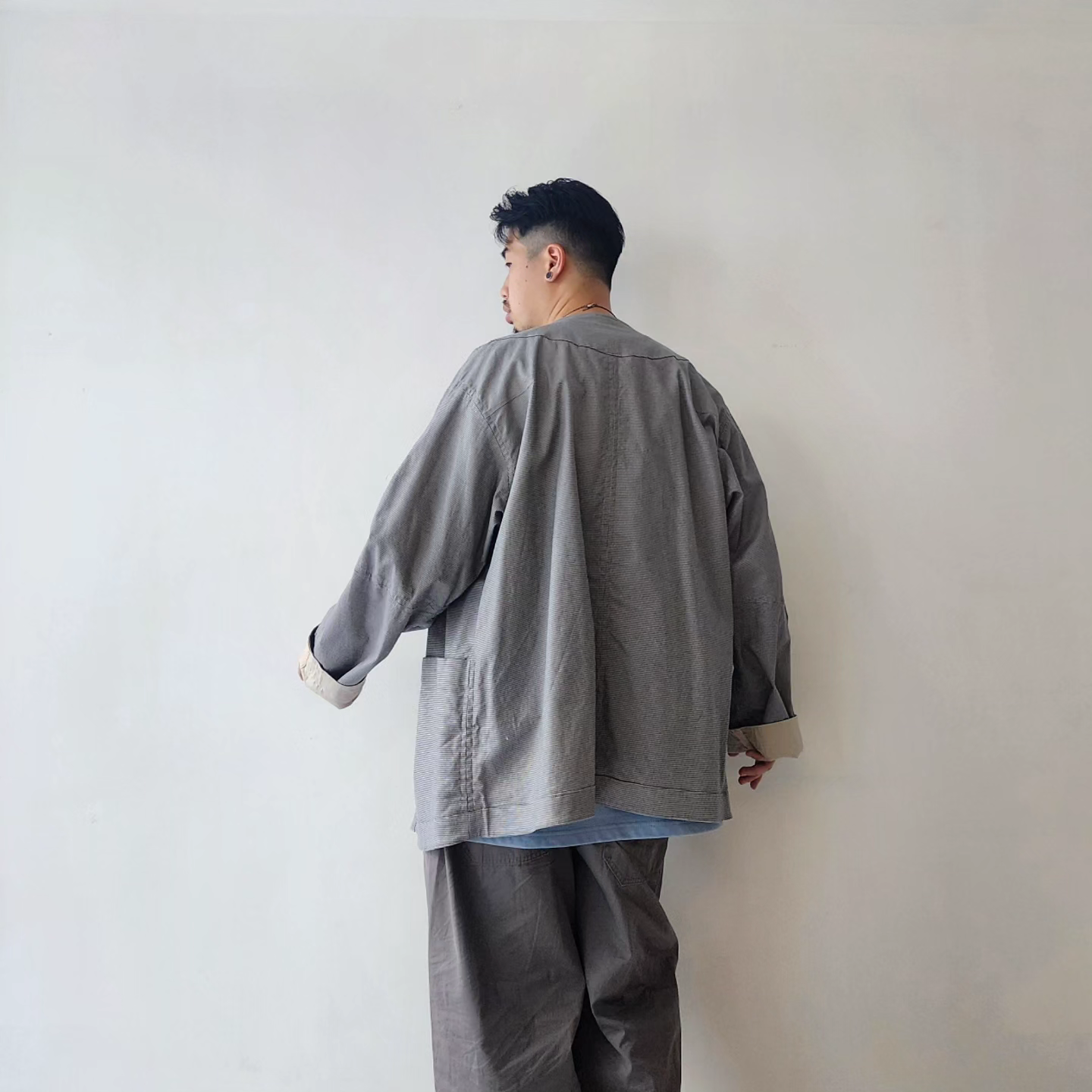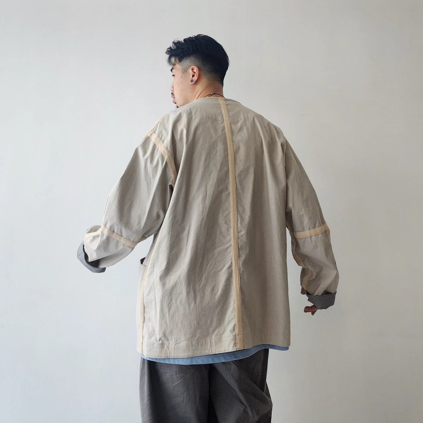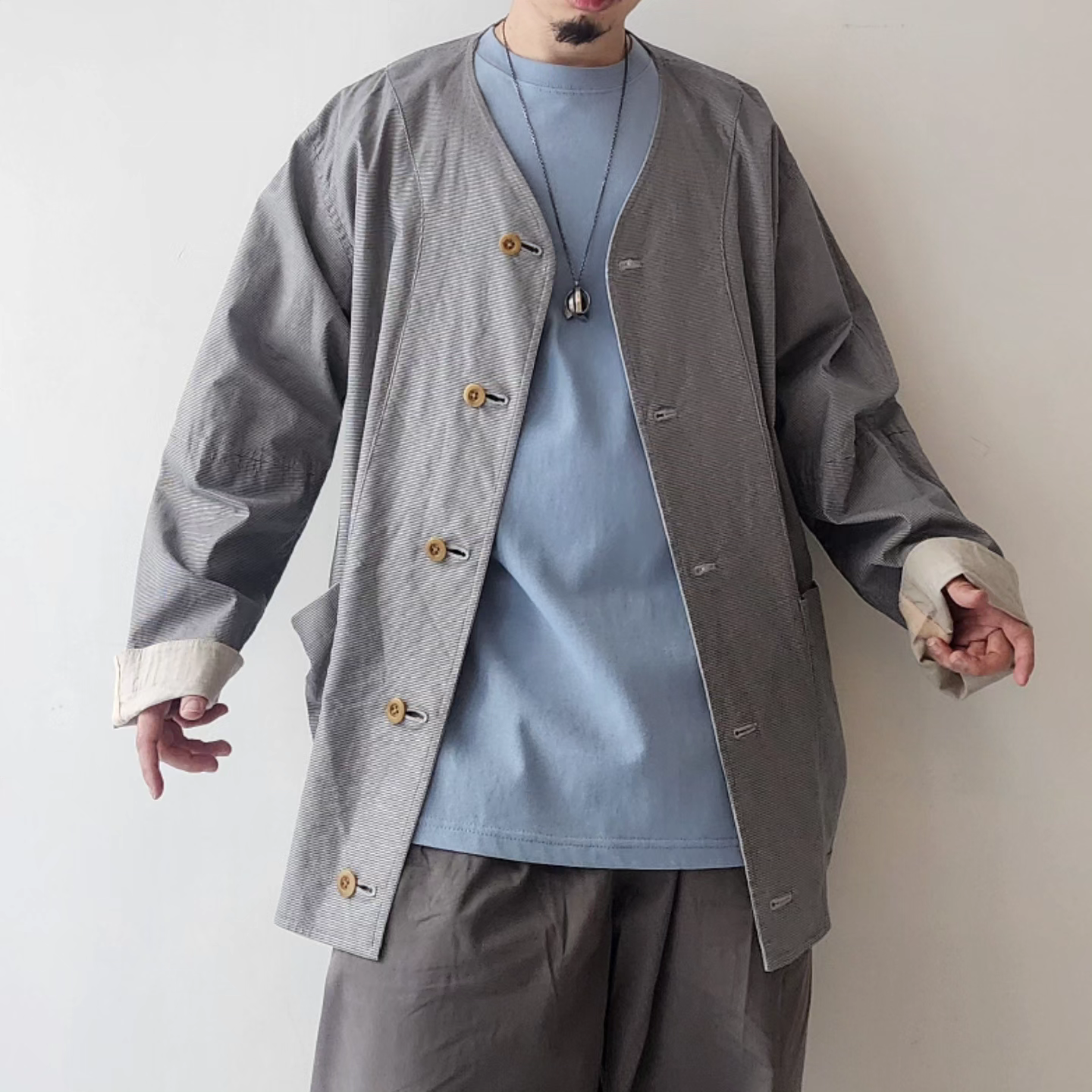 TS(S) / Linen*Cotton Stretch Cloth Reversible Seam Taping Collarless Jacket