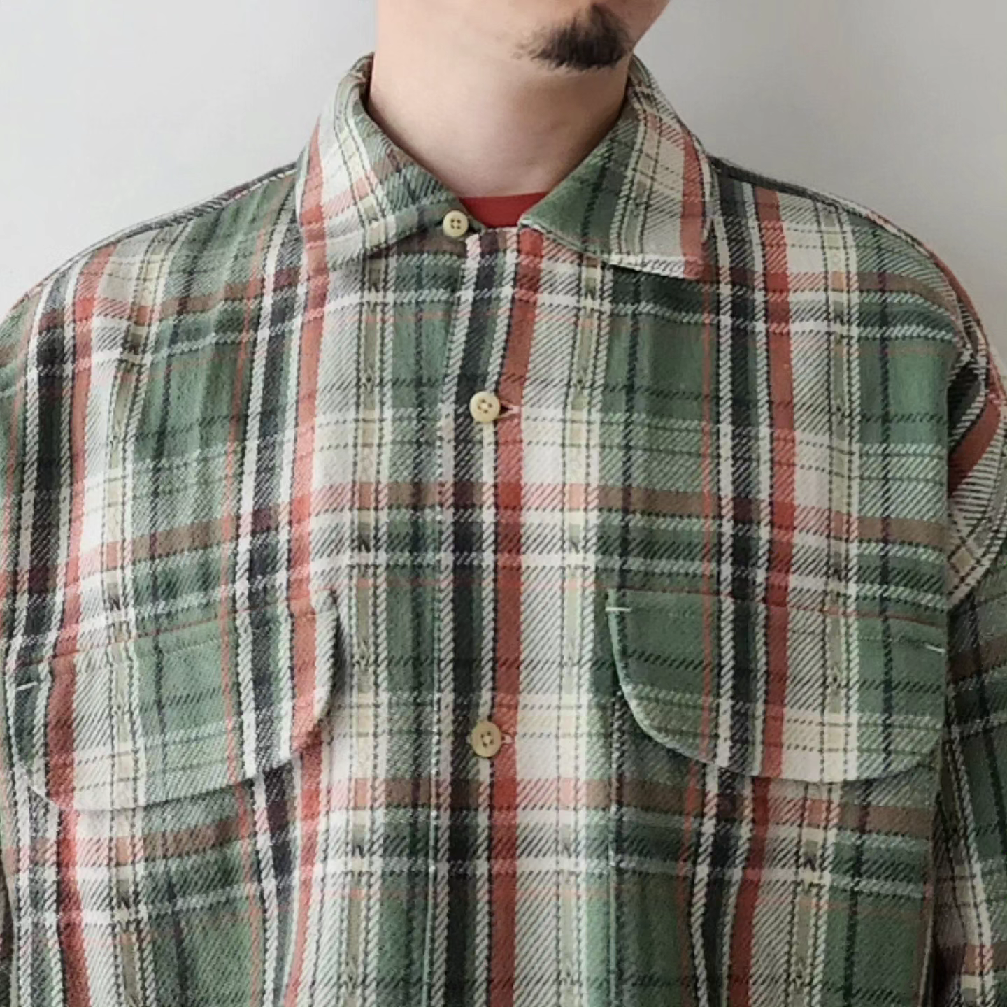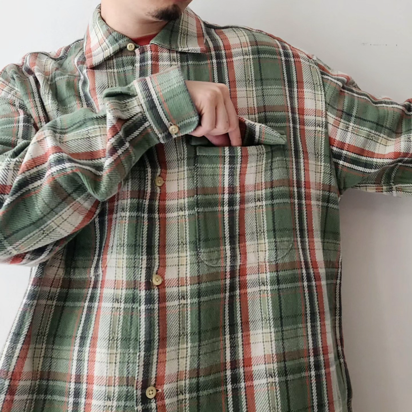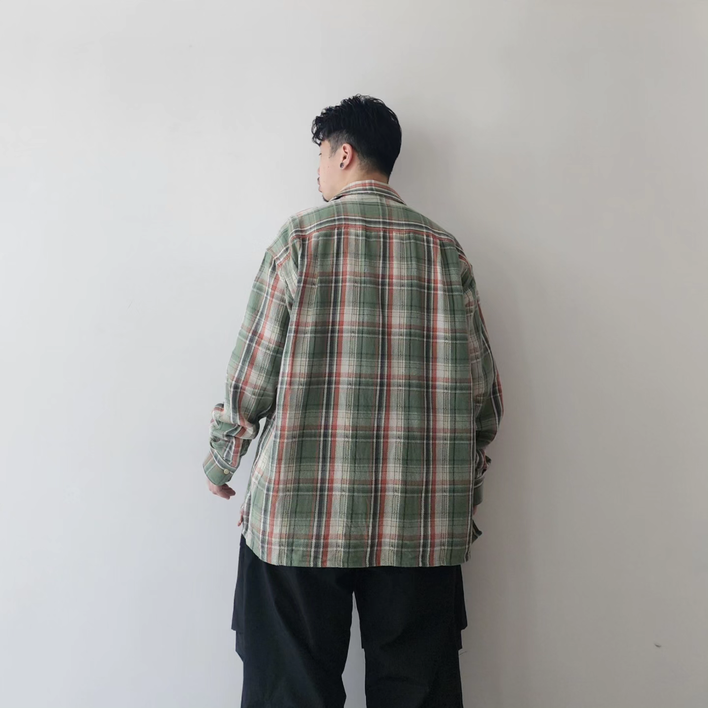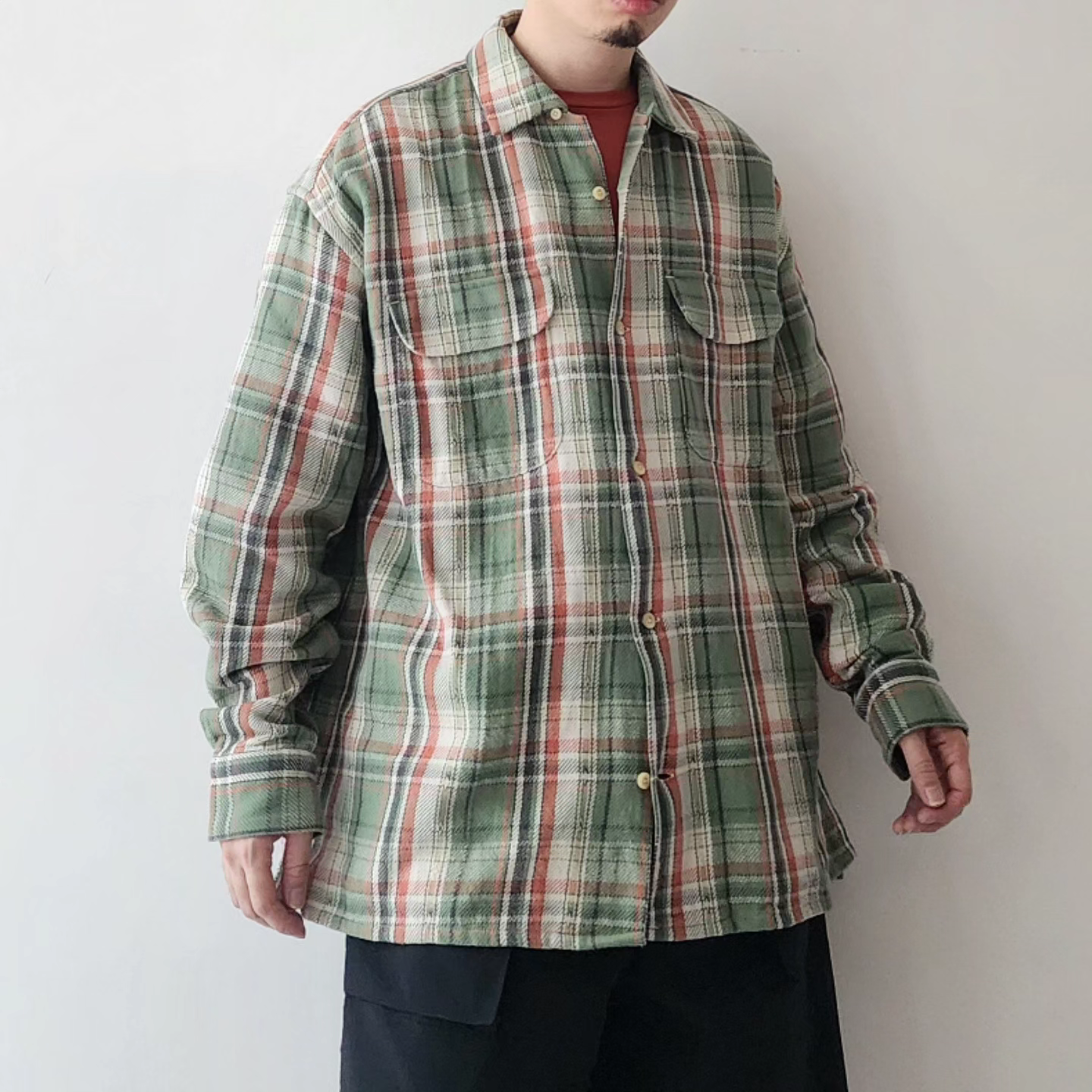 TS(S) / Pale Tone Big Plaid Cloth Round Flap Pocket Baggy Shirt