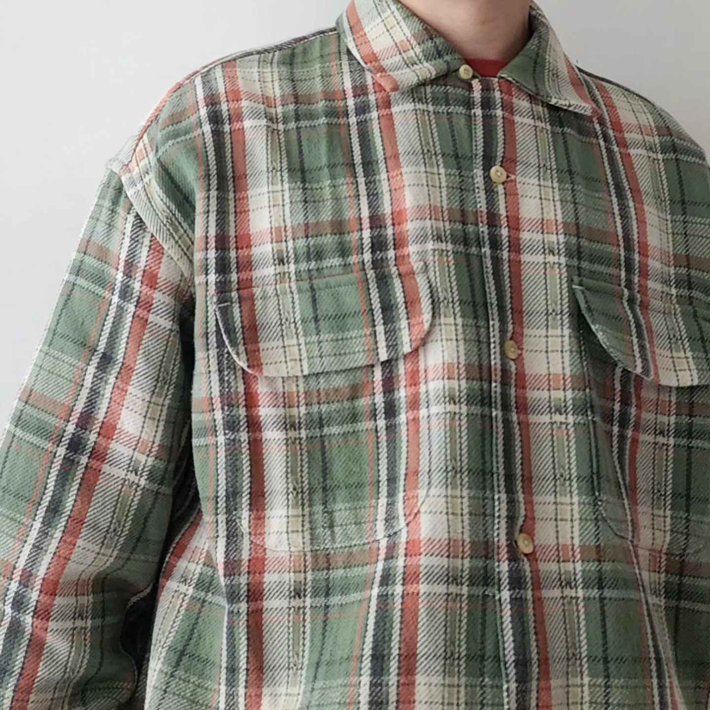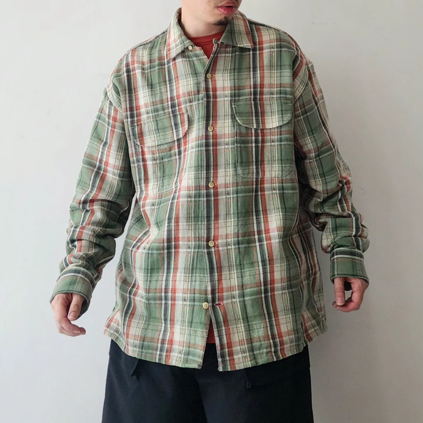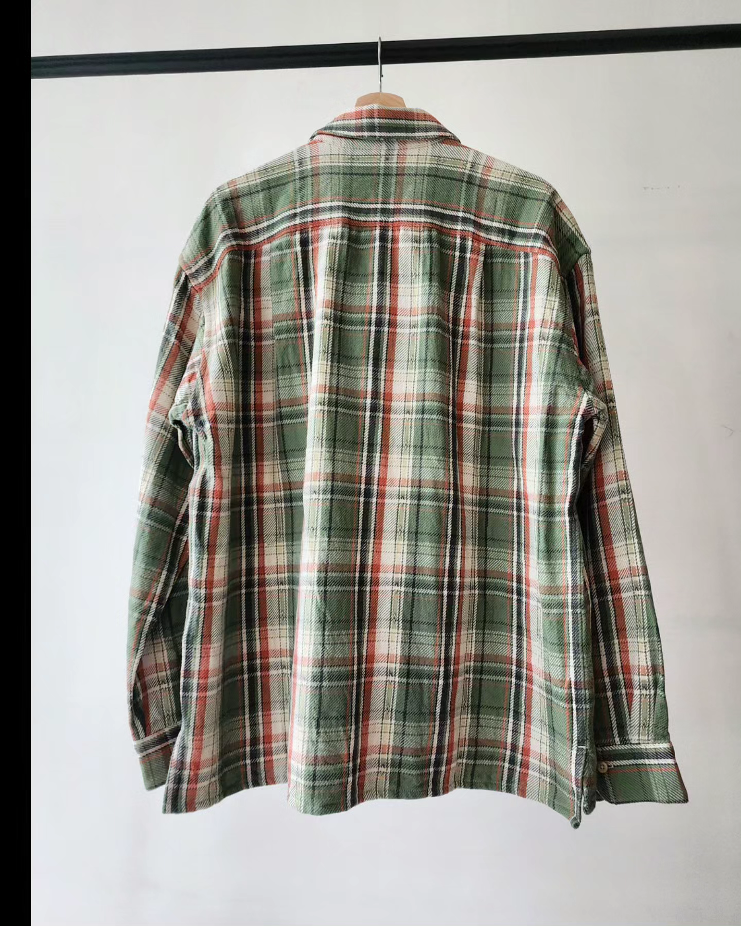 TS(S) / Pale Tone Big Plaid Cloth Round Flap Pocket Baggy Shirt