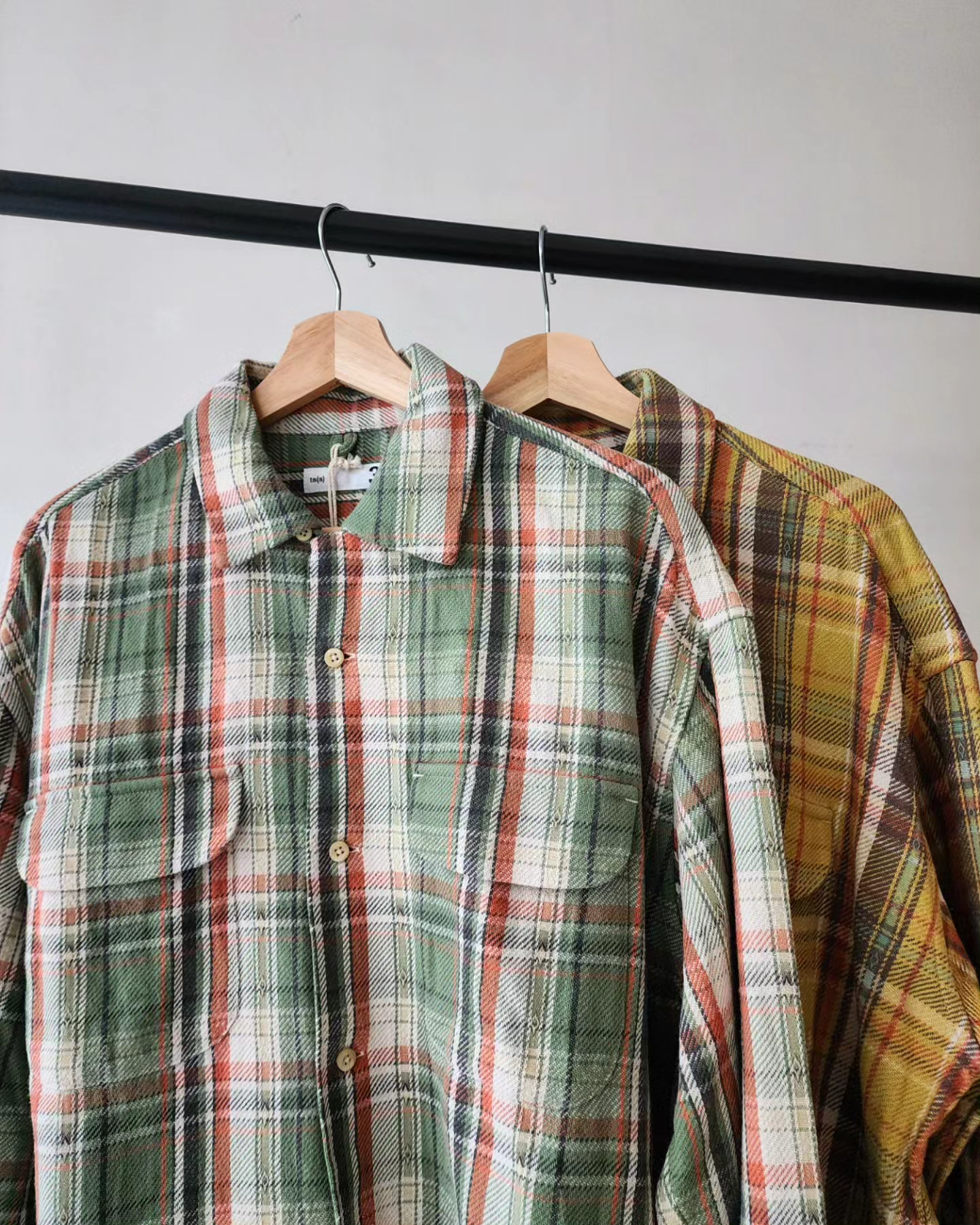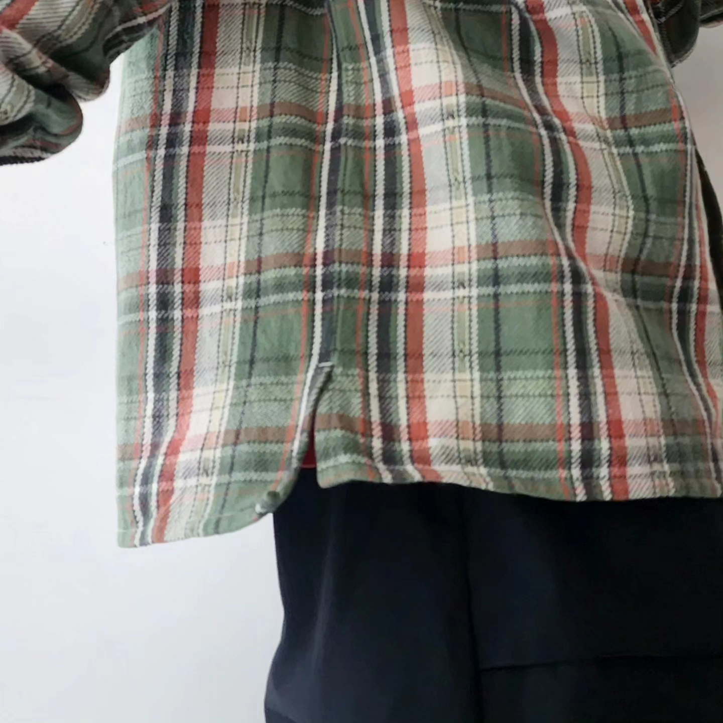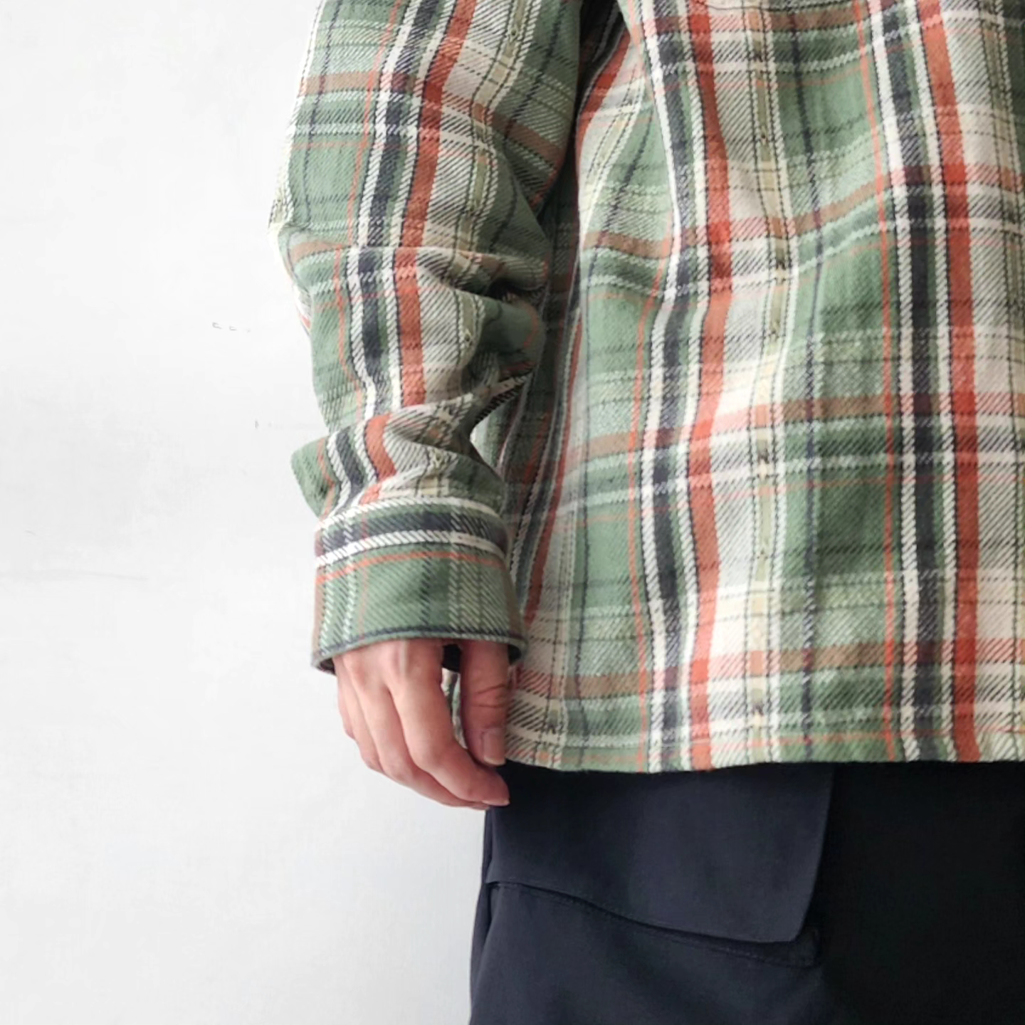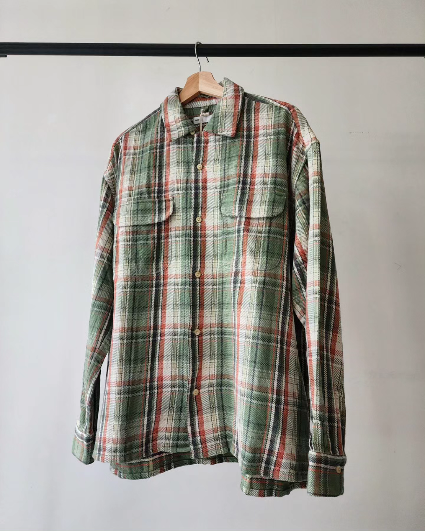 TS(S) / Pale Tone Big Plaid Cloth Round Flap Pocket Baggy Shirt