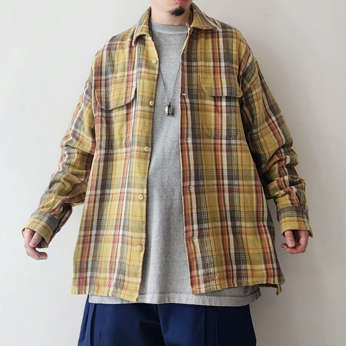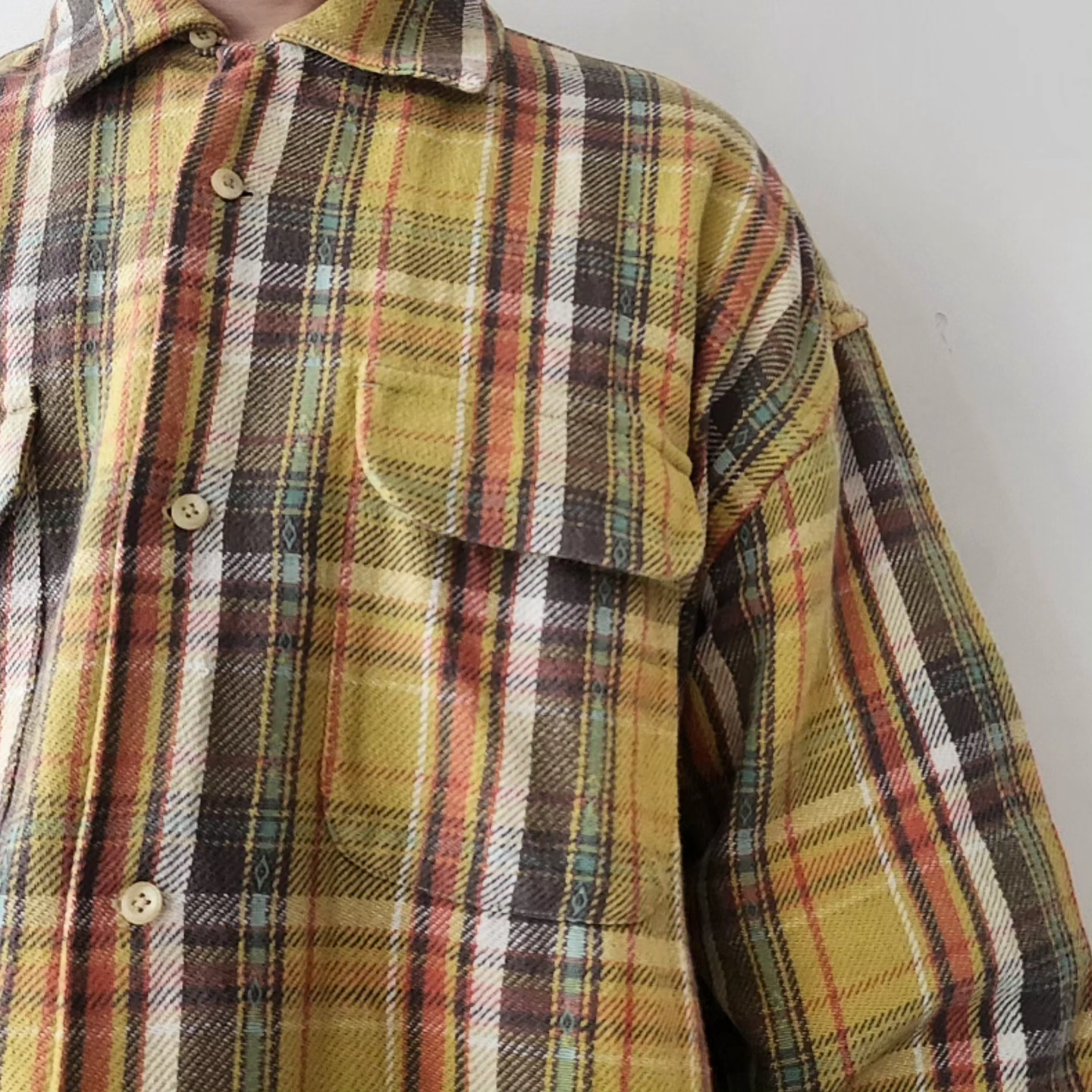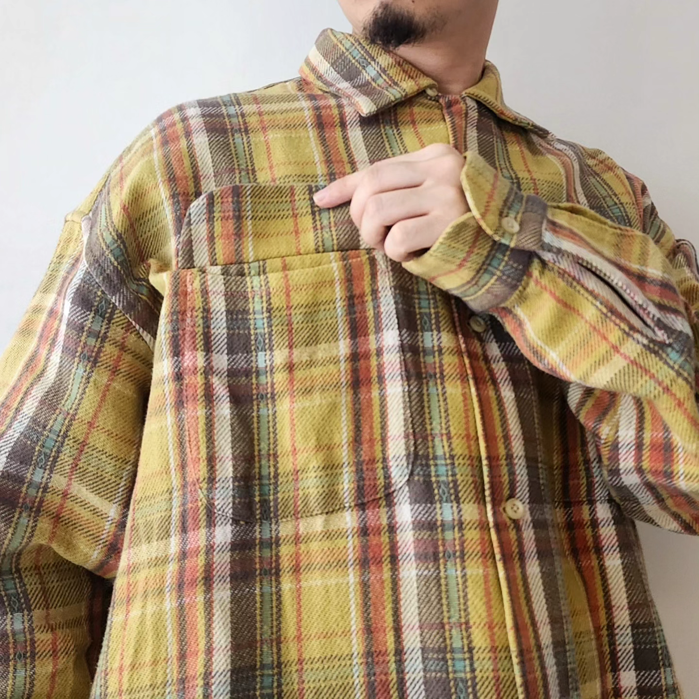 TS(S) / Pale Tone Big Plaid Cloth Round Flap Pocket Baggy Shirt