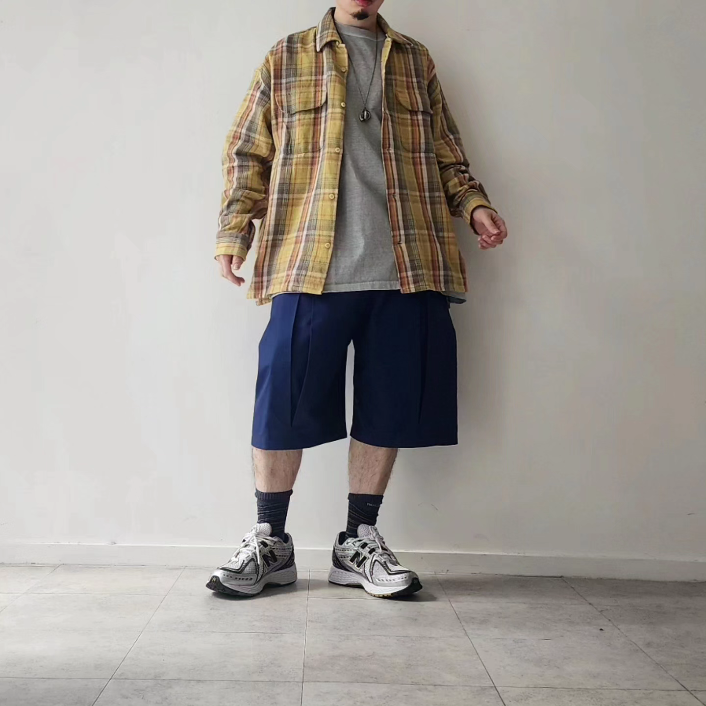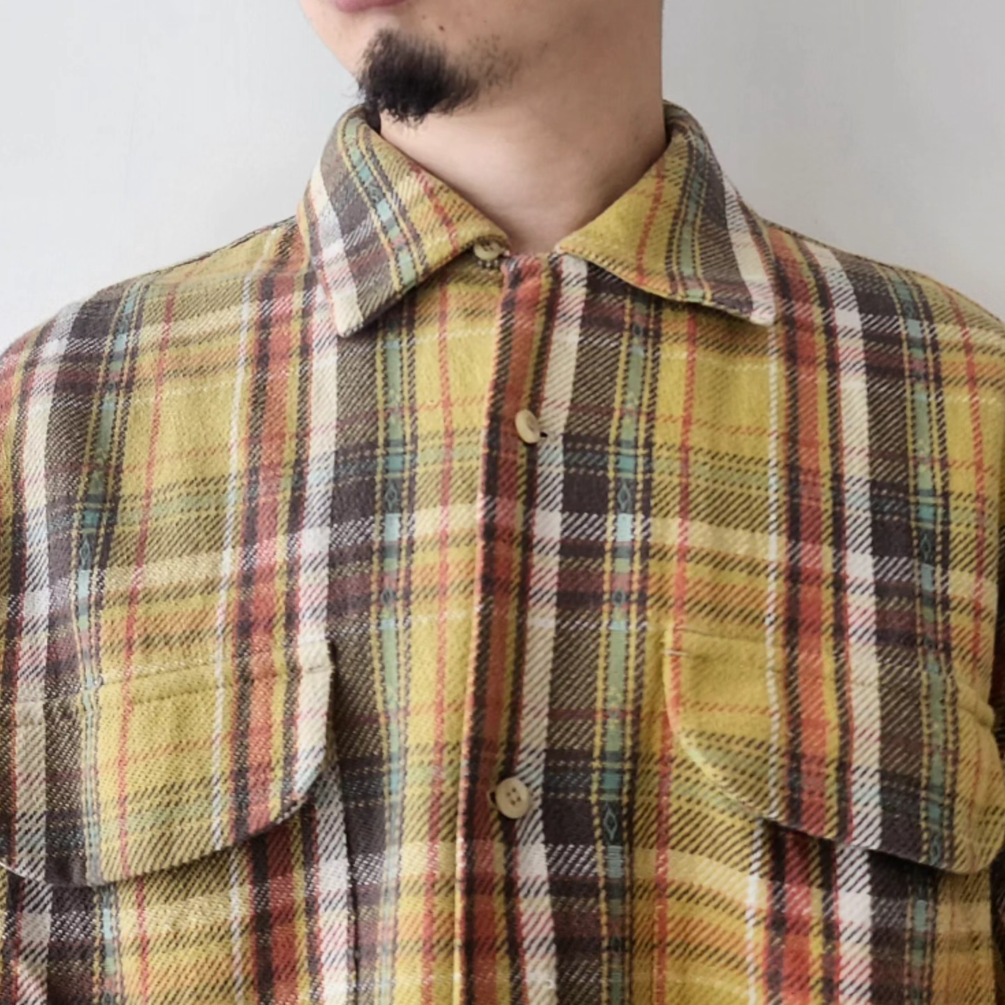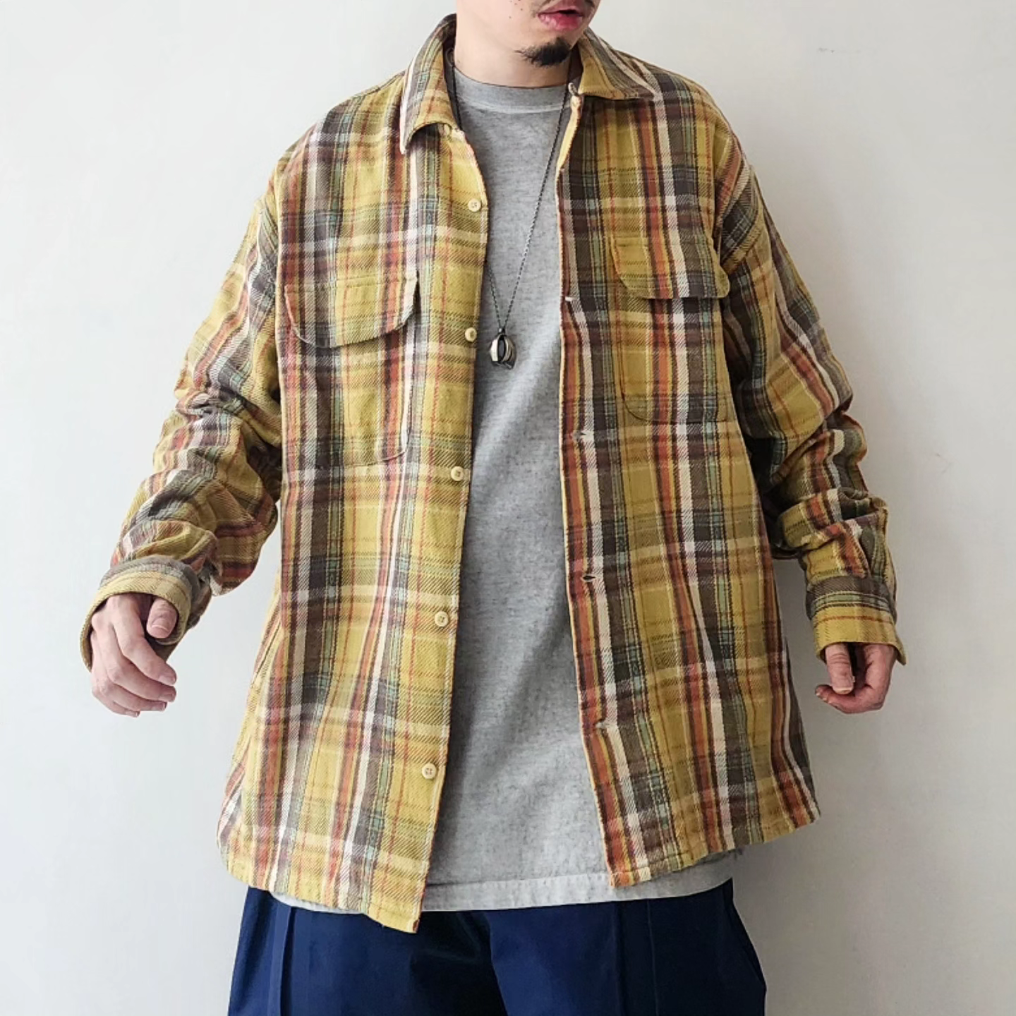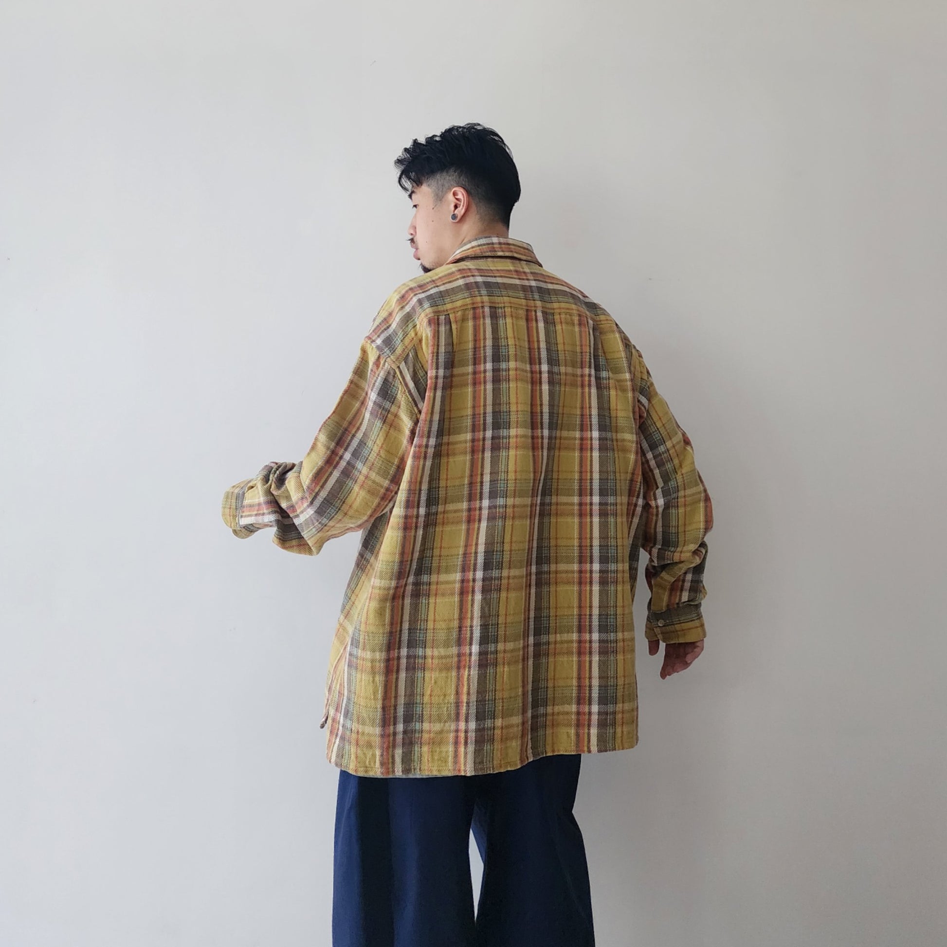 TS(S) / Pale Tone Big Plaid Cloth Round Flap Pocket Baggy Shirt