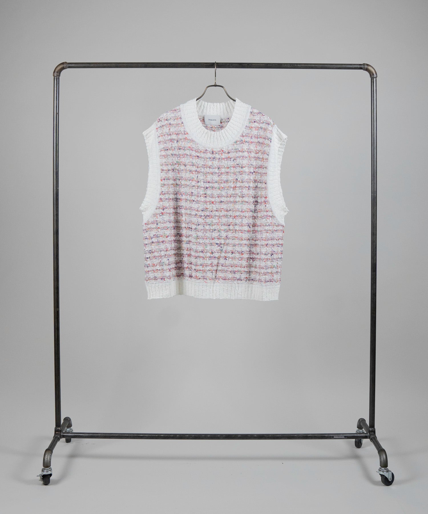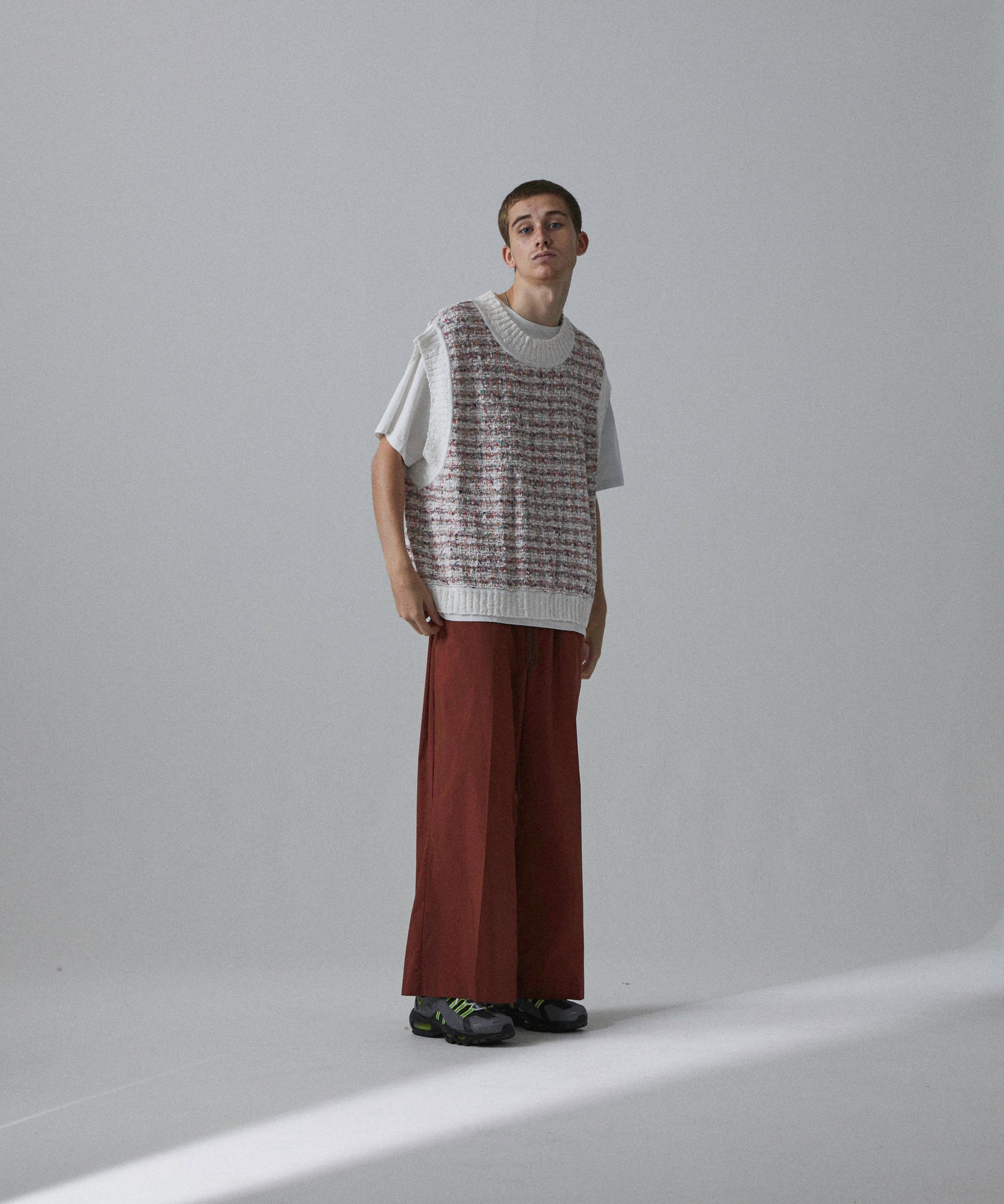 - Thick cotton slub, glossy rayon, colorful kasuri yarn, looped boucle yarn, tweed fabric with depth by knitting 4 materials that are characteristic of these expressions and changing the yarn. is expressed by the knitted fabric, creating a skillful mixed color feeling.