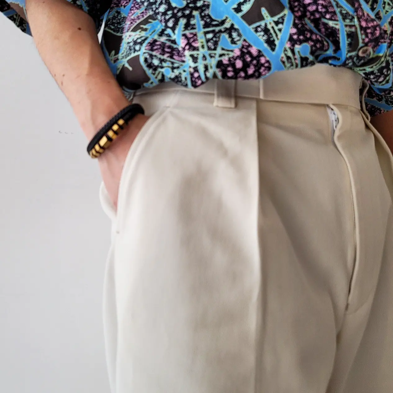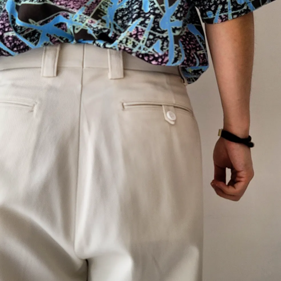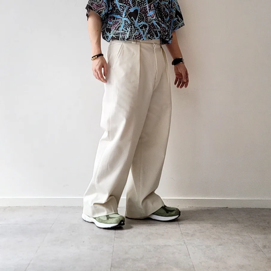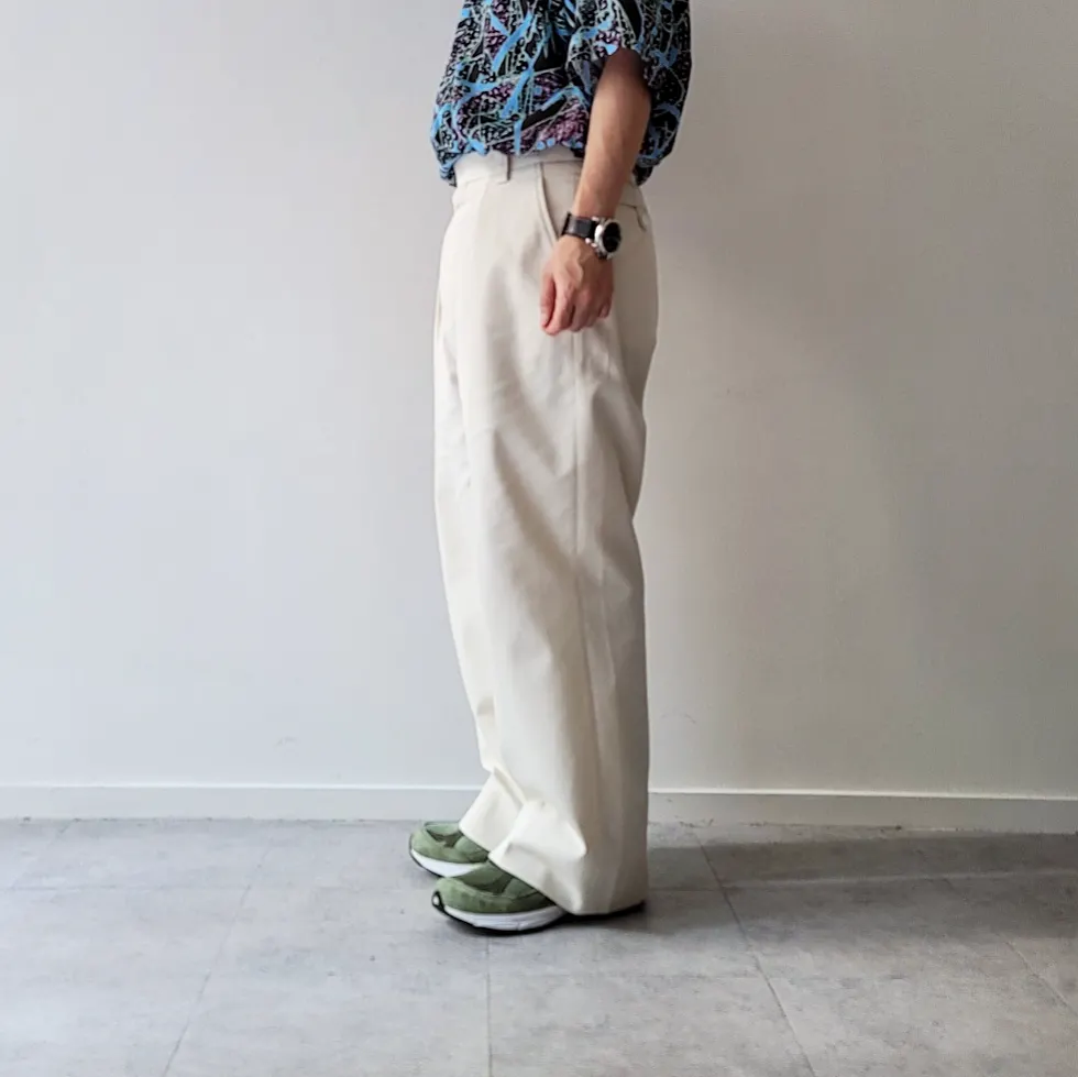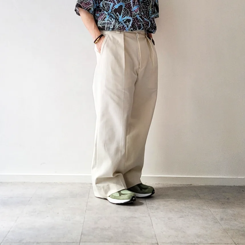 - Around the hips, we adopted a pattern that is slightly different from the specifications of general slacks, expressing a voluminous feeling like the Euro vintage military trousers.
