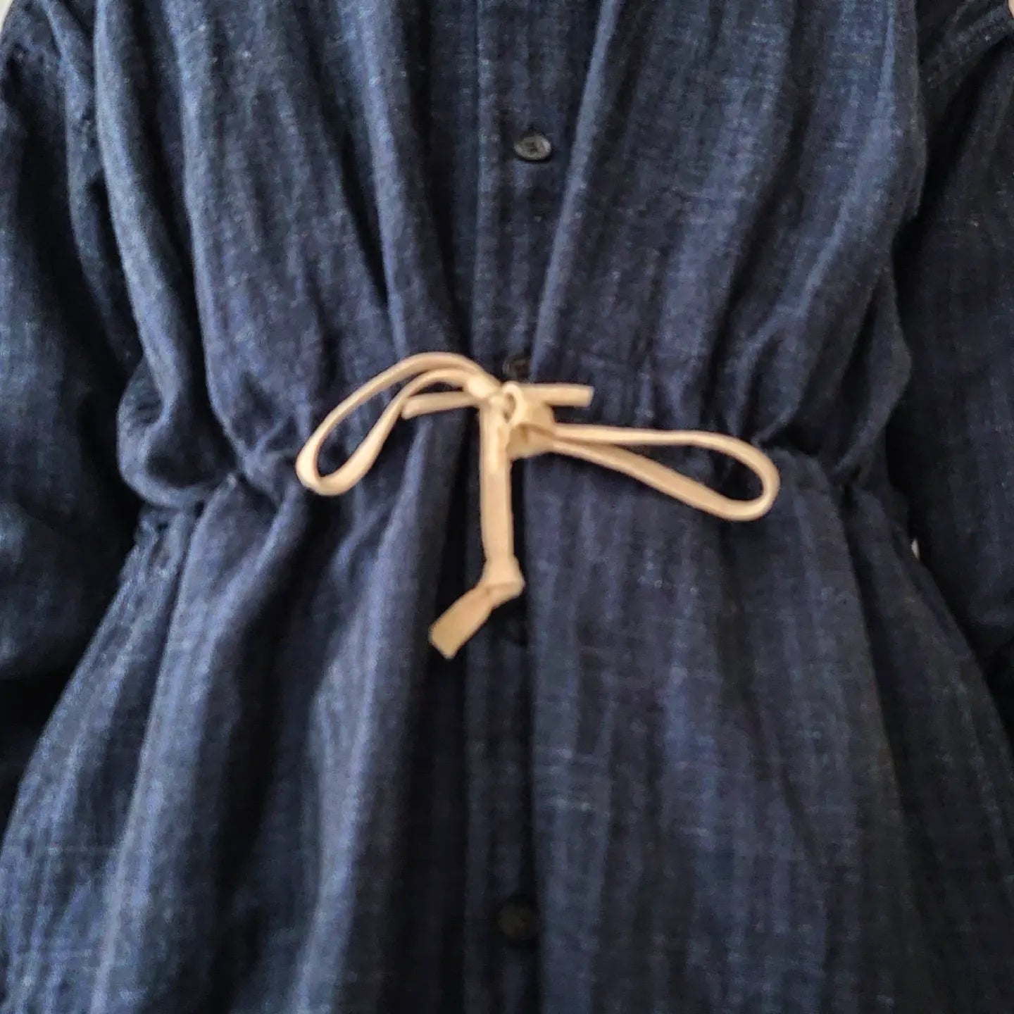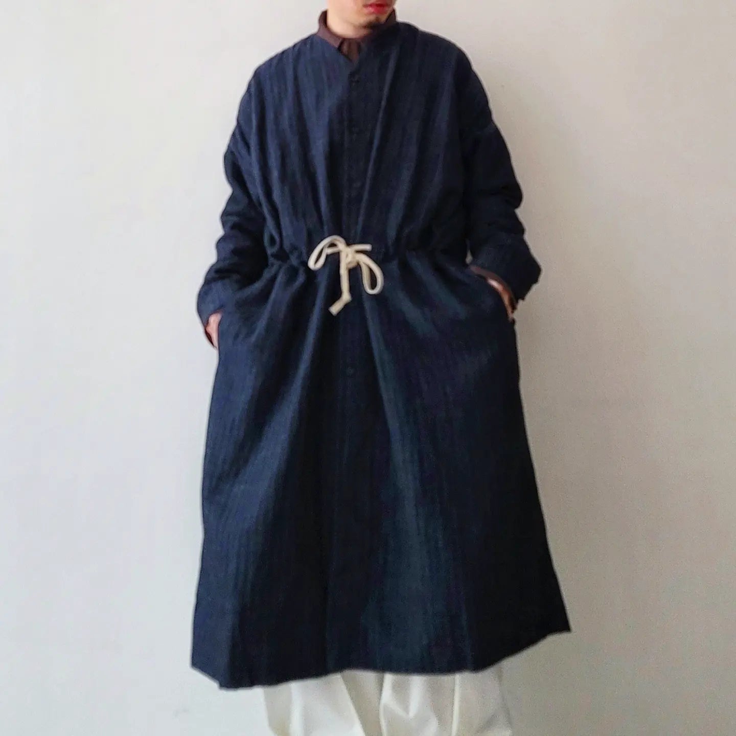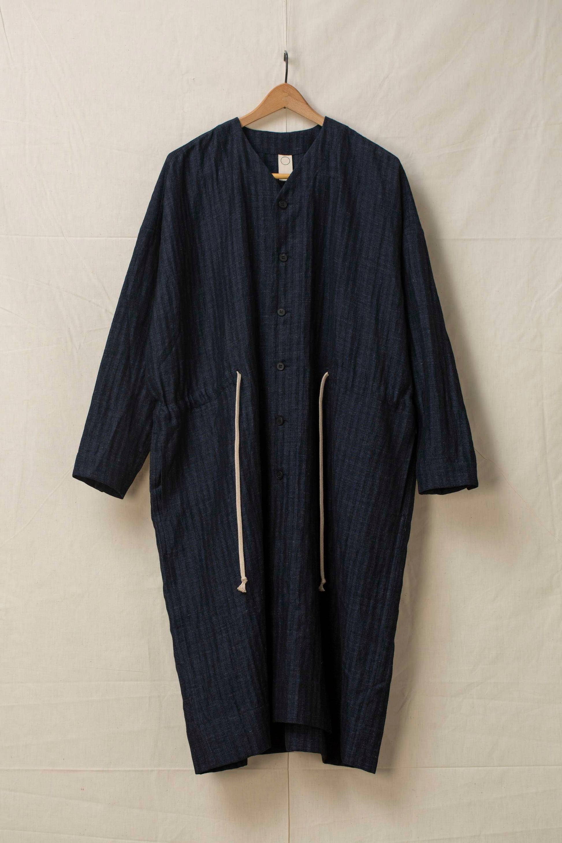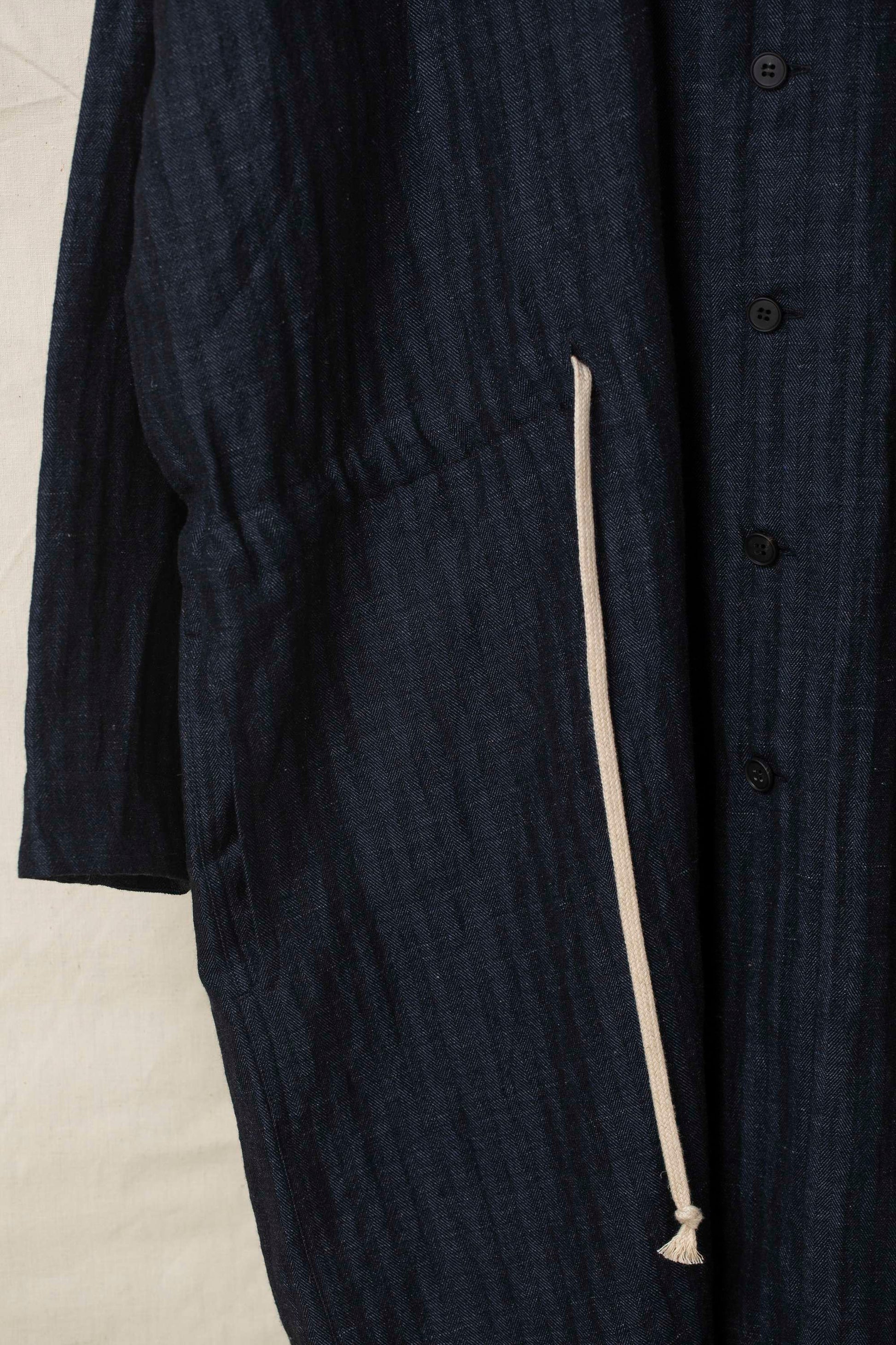 - V-neck long shirt in lightweight and soft herringbone woven in Japan. Virgin wool and linen are combined in surprising ways to explore more balanced, organic, natural textures. Features: A drawstring on the waist which can be adjusted incredibly well, two hand pockets play a different tune. O project long shirt has always felt like the most loyal companion.