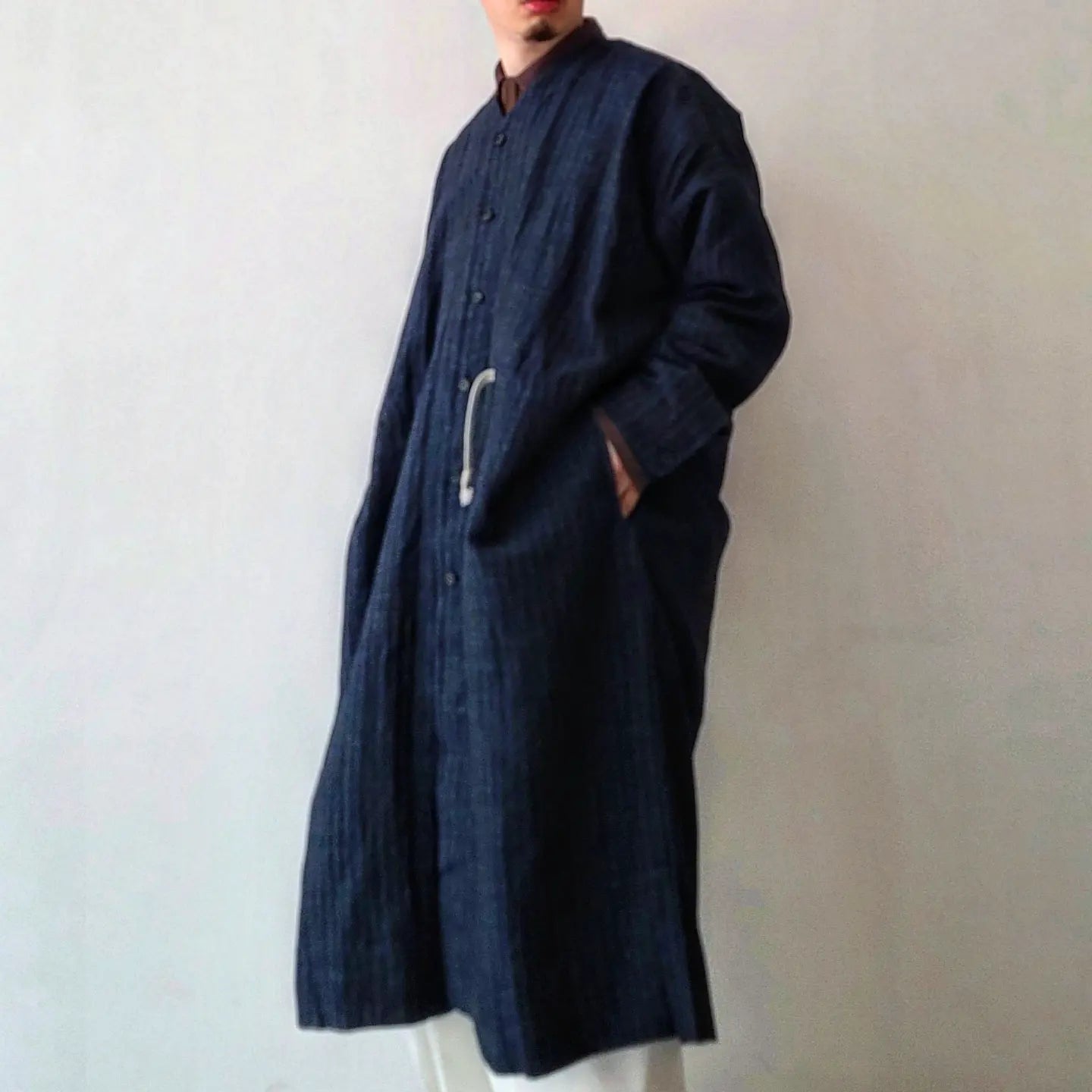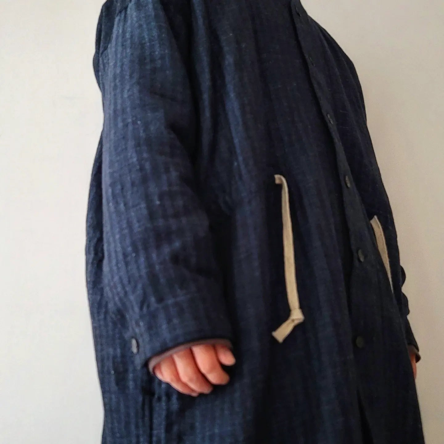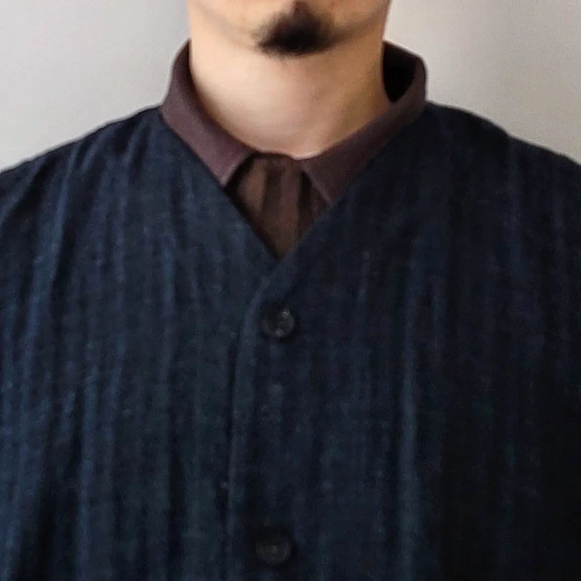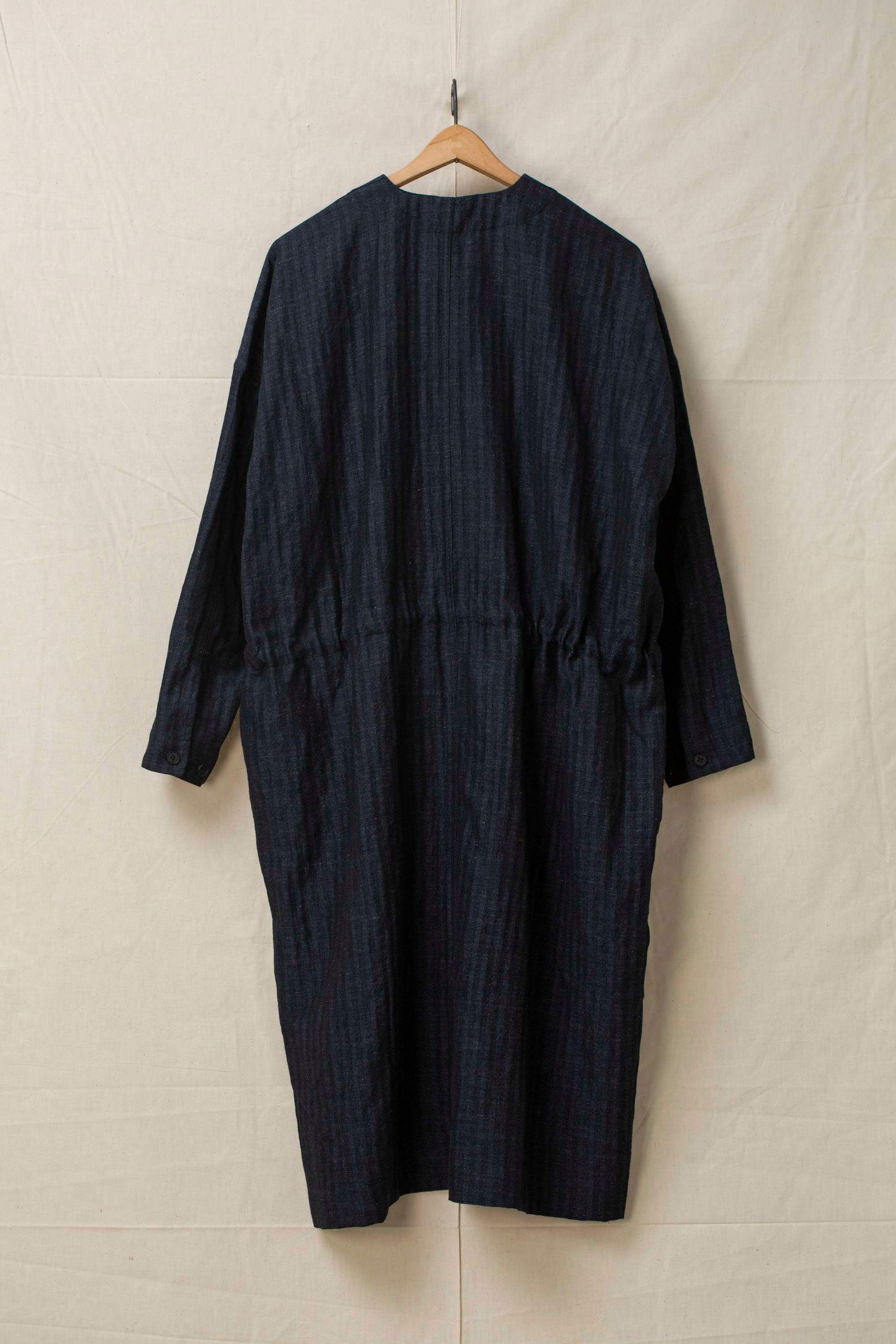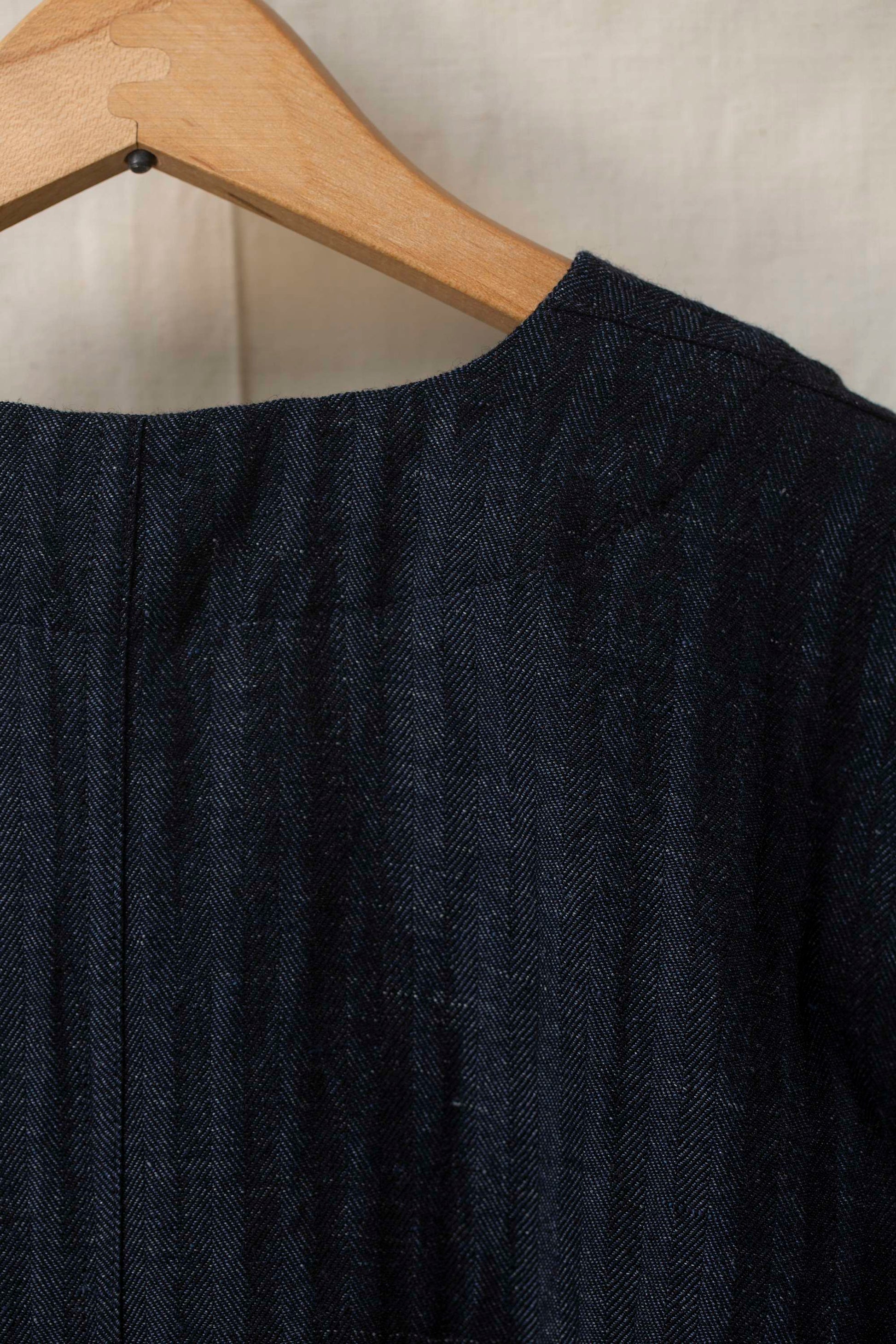 - V-neck long shirt in lightweight and soft herringbone woven in Japan. Virgin wool and linen are combined in surprising ways to explore more balanced, organic, natural textures. Features: A drawstring on the waist which can be adjusted incredibly well, two hand pockets play a different tune. O project long shirt has always felt like the most loyal companion.