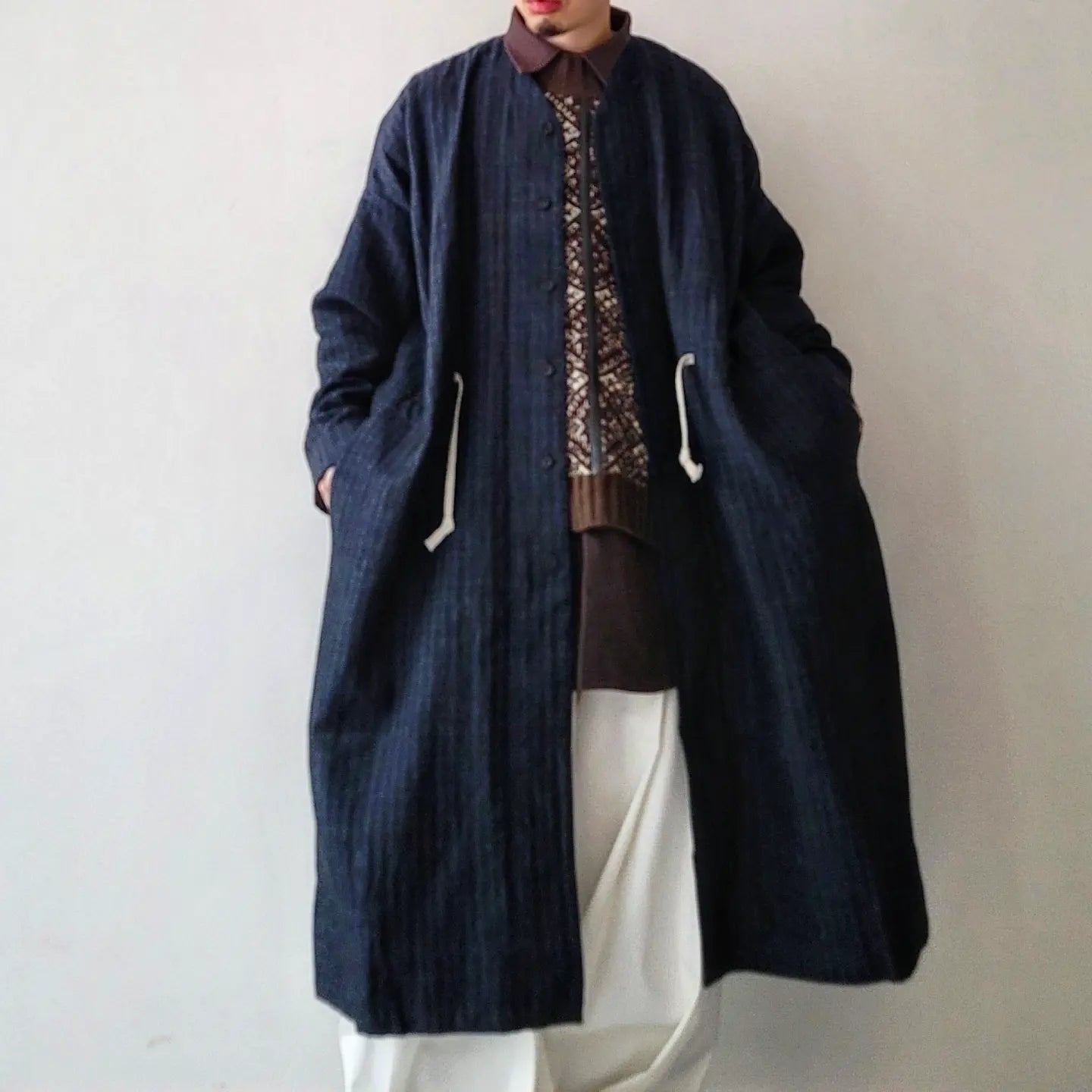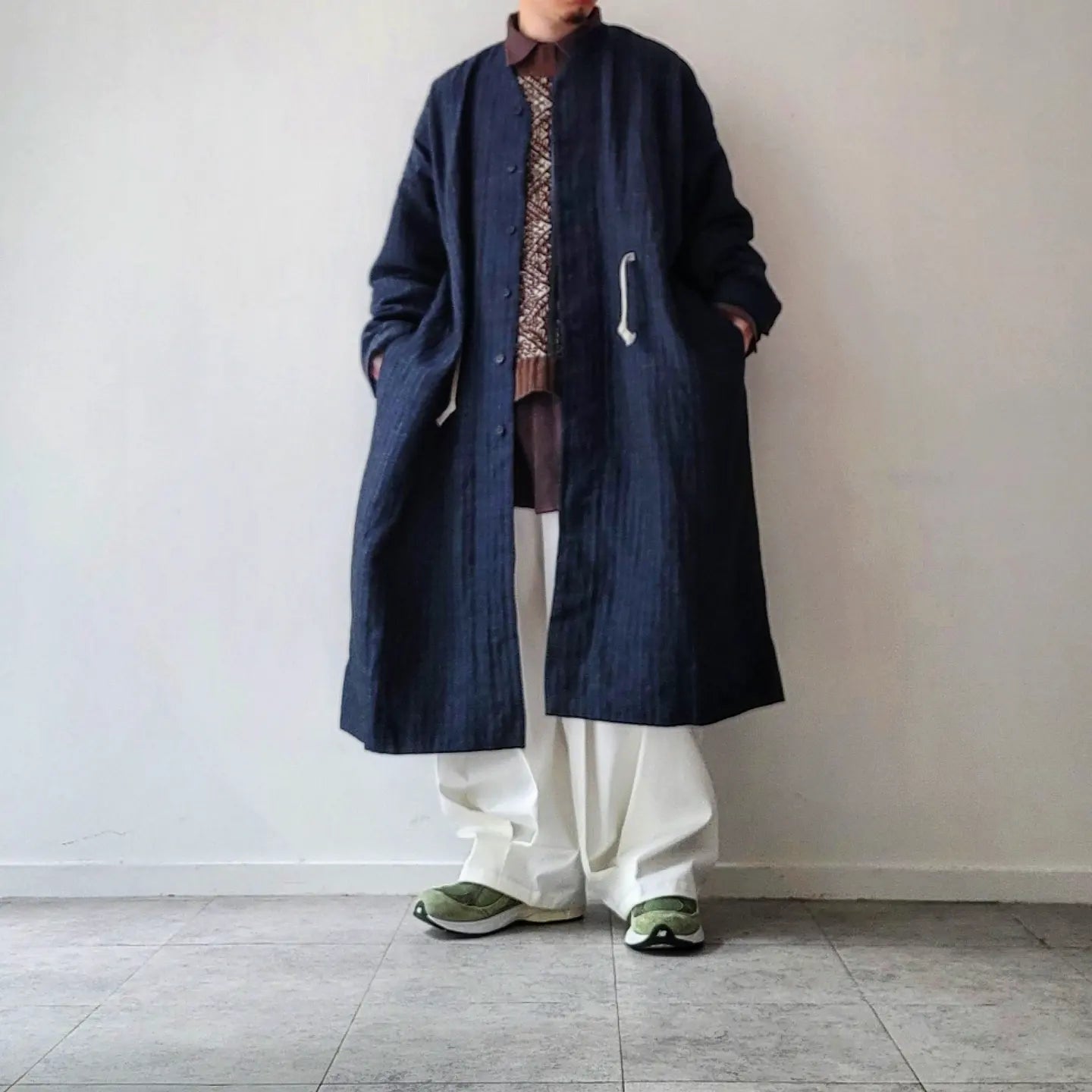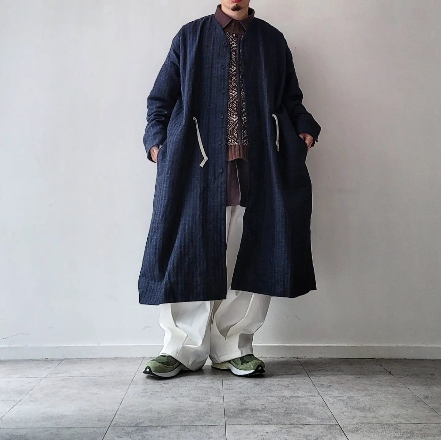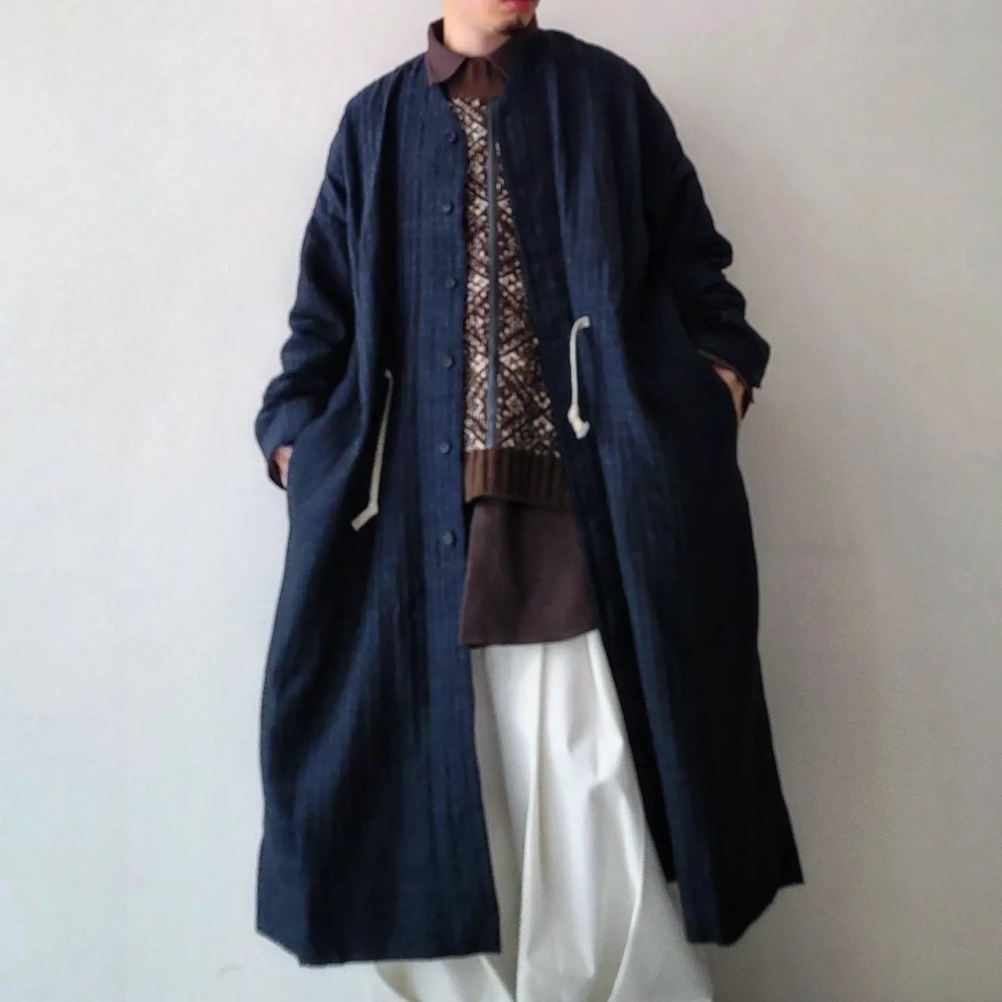 - V-neck long shirt in lightweight and soft herringbone woven in Japan. Virgin wool and linen are combined in surprising ways to explore more balanced, organic, natural textures. Features: A drawstring on the waist which can be adjusted incredibly well, two hand pockets play a different tune. O project long shirt has always felt like the most loyal companion.