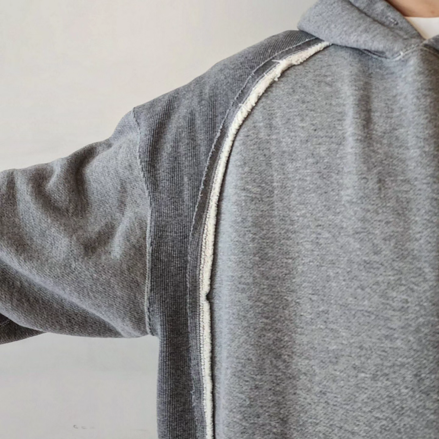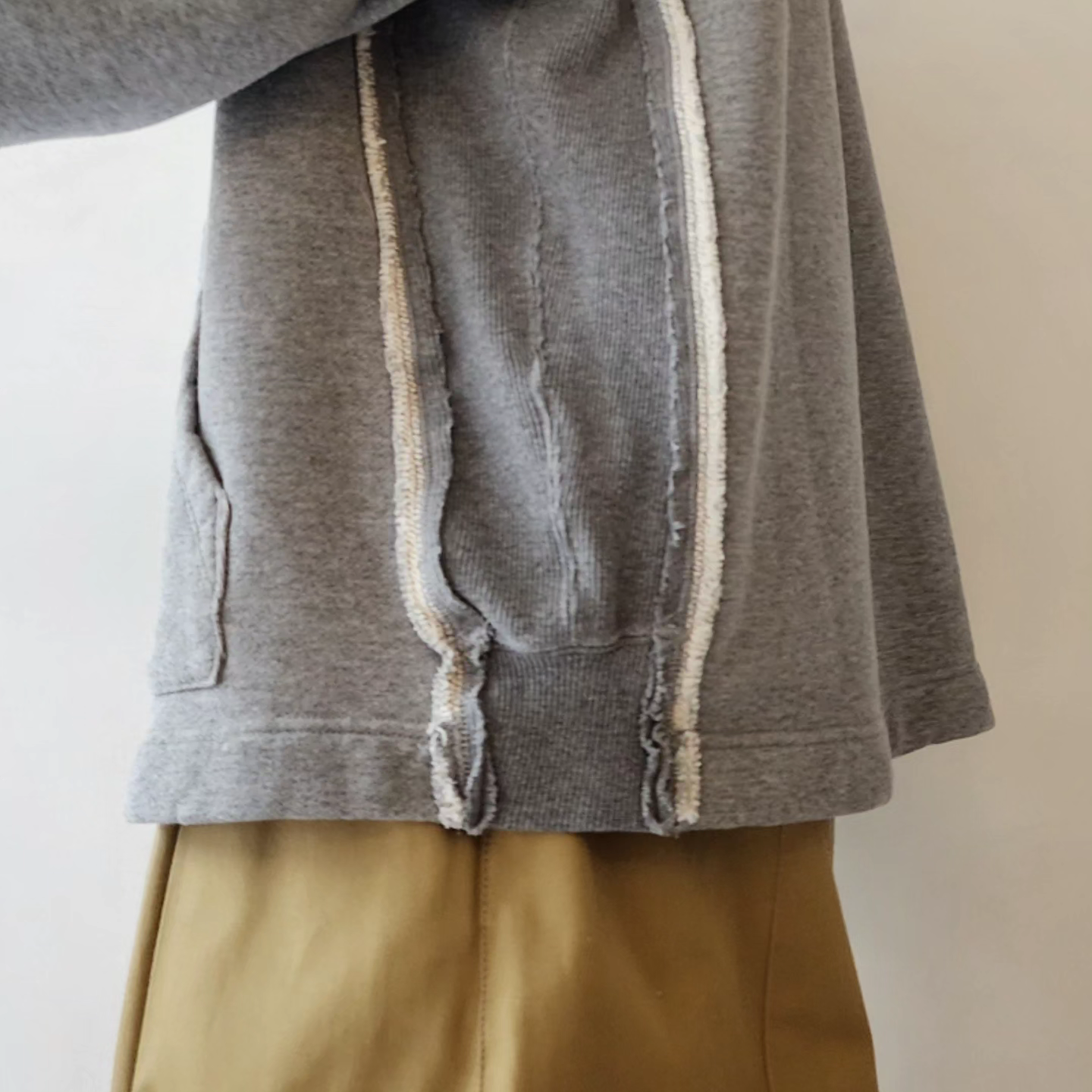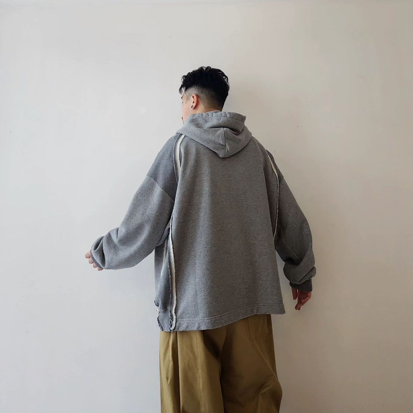 -A hoodie with a design that looks like it has been remade by cutting it out and joining it together.