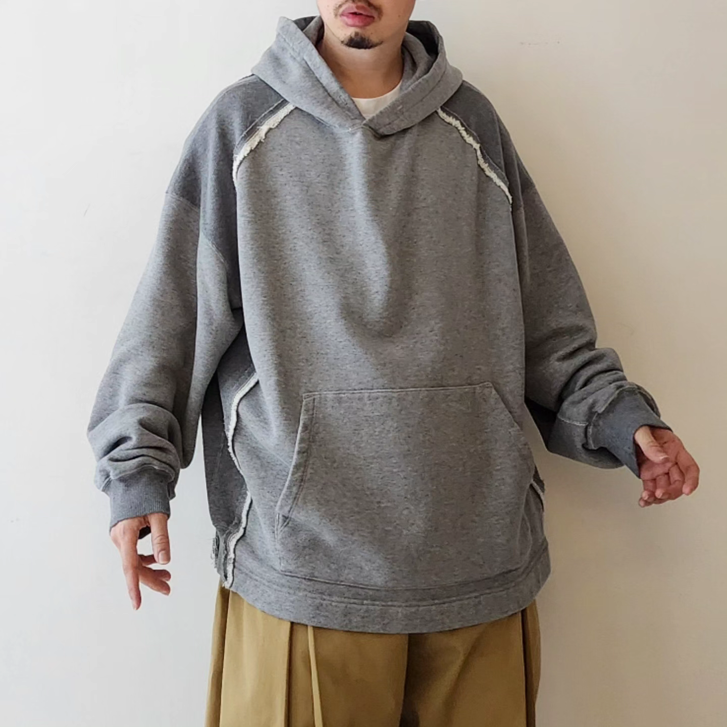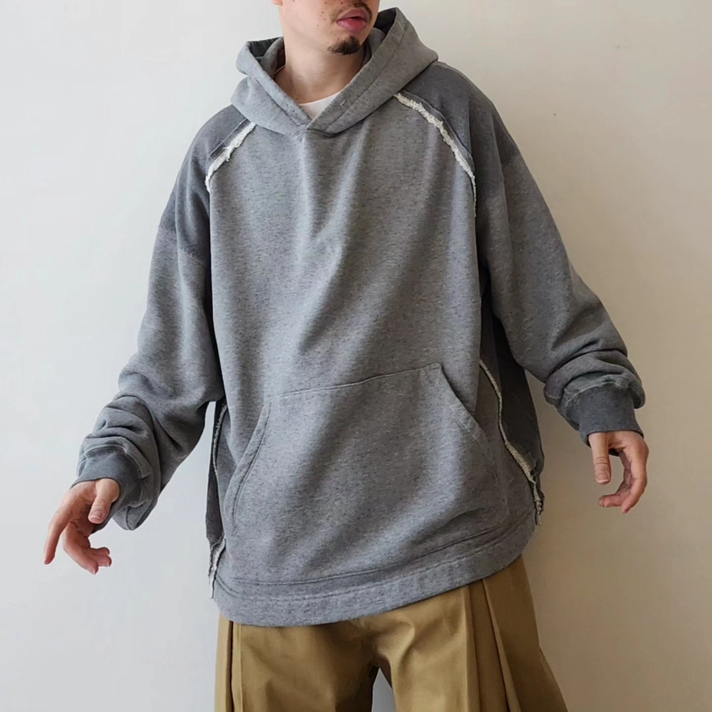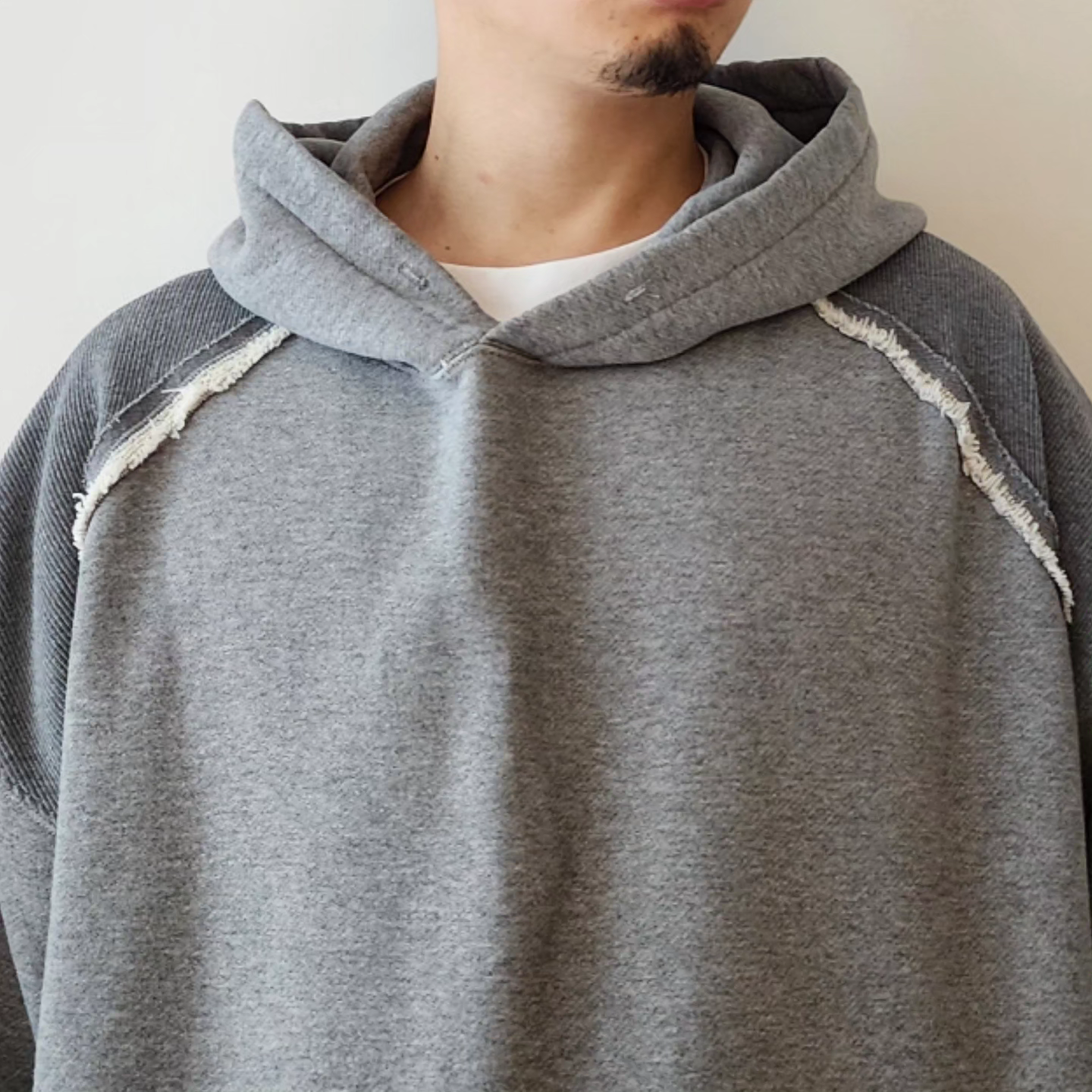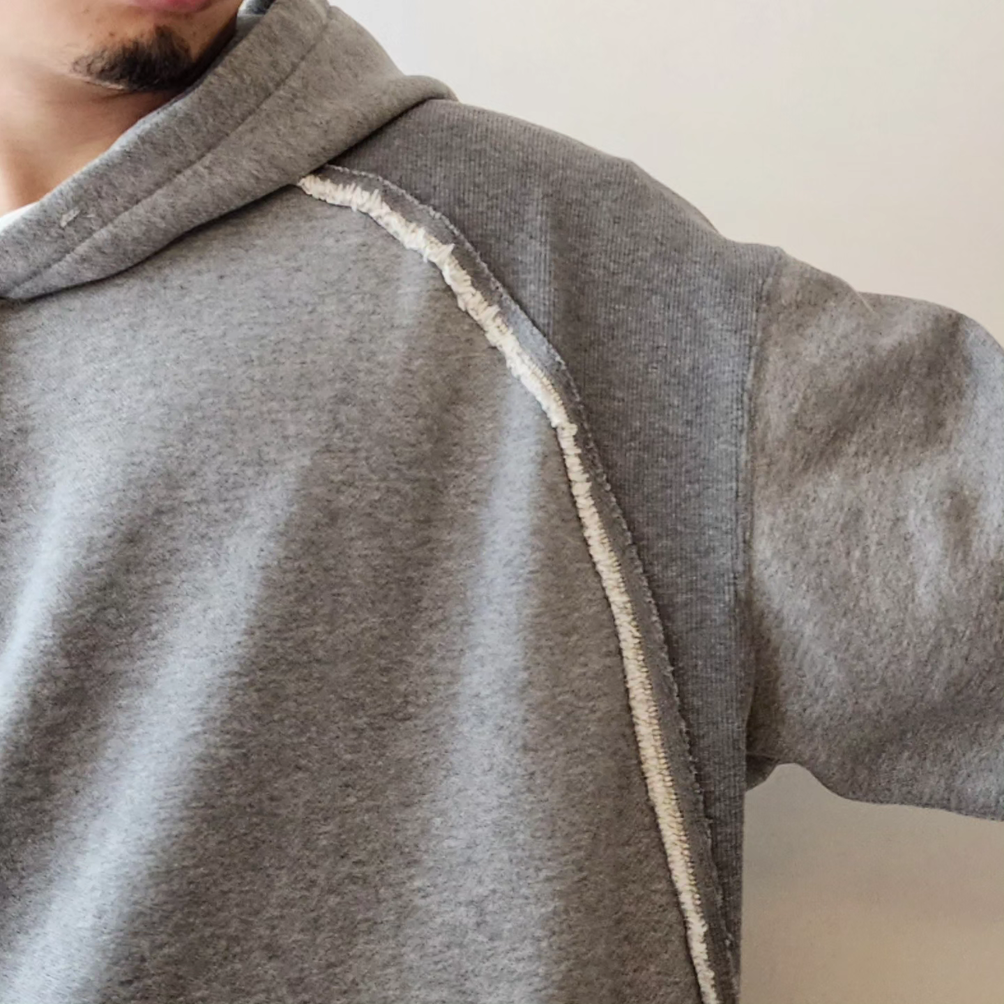 -A hoodie with a design that looks like it has been remade by cutting it out and joining it together.