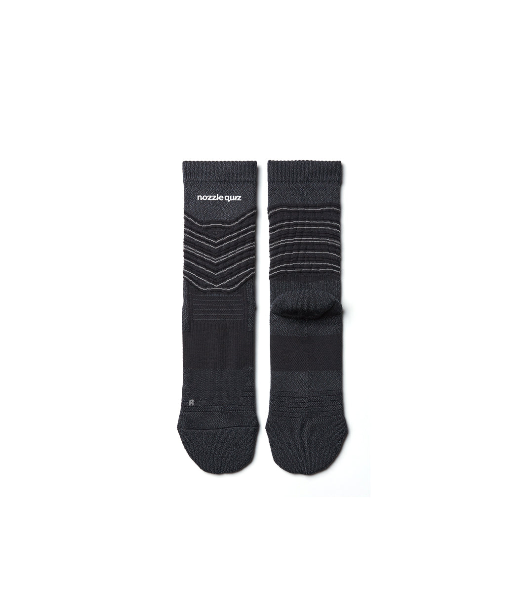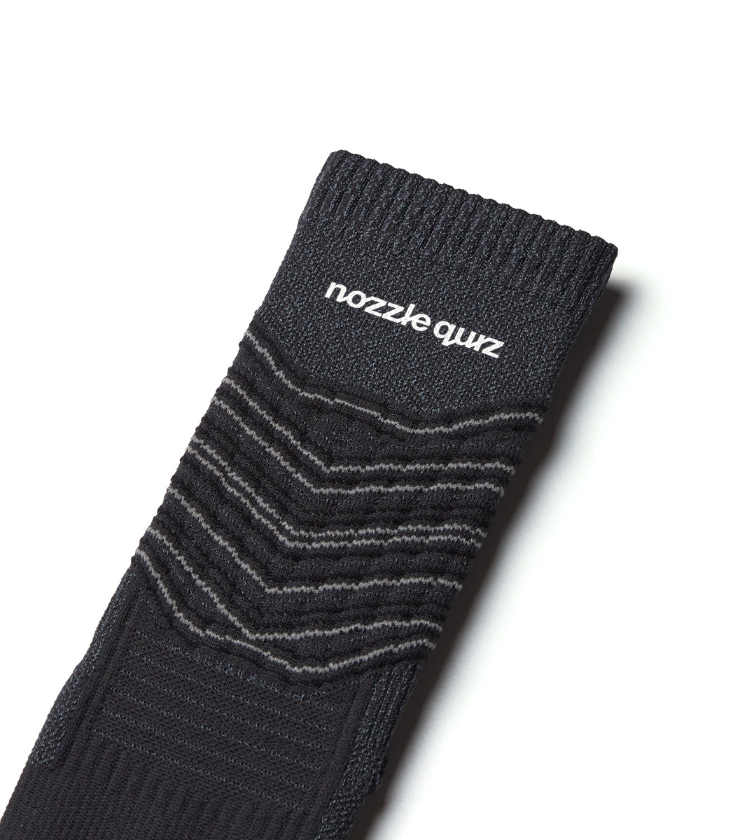 "FlexibleArmor"產品中的在版型設計配合防曬、防降雨及透氣等需求,提供可變動 (convertible) 及收納的機能設計,與國內機能面料廠合作開發兼具輕薄輕量、抗撕裂、防潑水、耐水壓及透氣銃孔的尼龍面料,並經由特殊的洗皺加工表現出金屬般光澤質感。同時,nozzle quiz 與中大遠東實業研發部門合作開發,將以耐磨著稱的 CORDURA®紗線製作類鱗甲外觀的針織腰帶,並採用 FIDLOCK® 磁性快扣大幅提升便捷性。襪履則採用 COOLMAX® 快乾涼爽紗線,以及延續使用的 Skinlife® 專利銀纖抗菌紗線、 Lycra® 專利彈性纖維加強包覆性等機能紗線,提供一系列附有機能性的配件。
