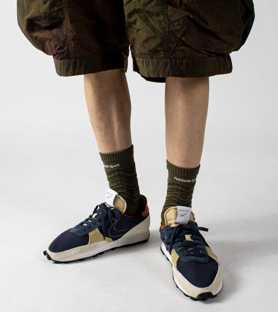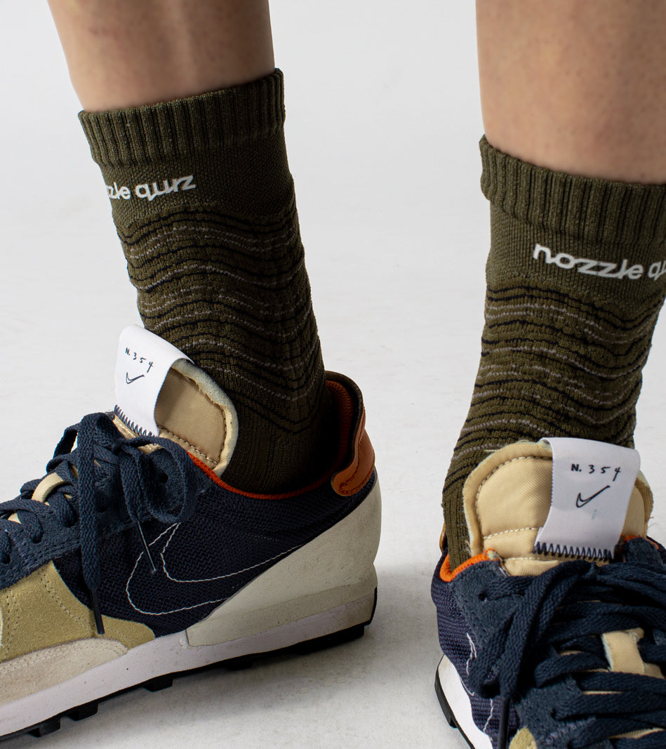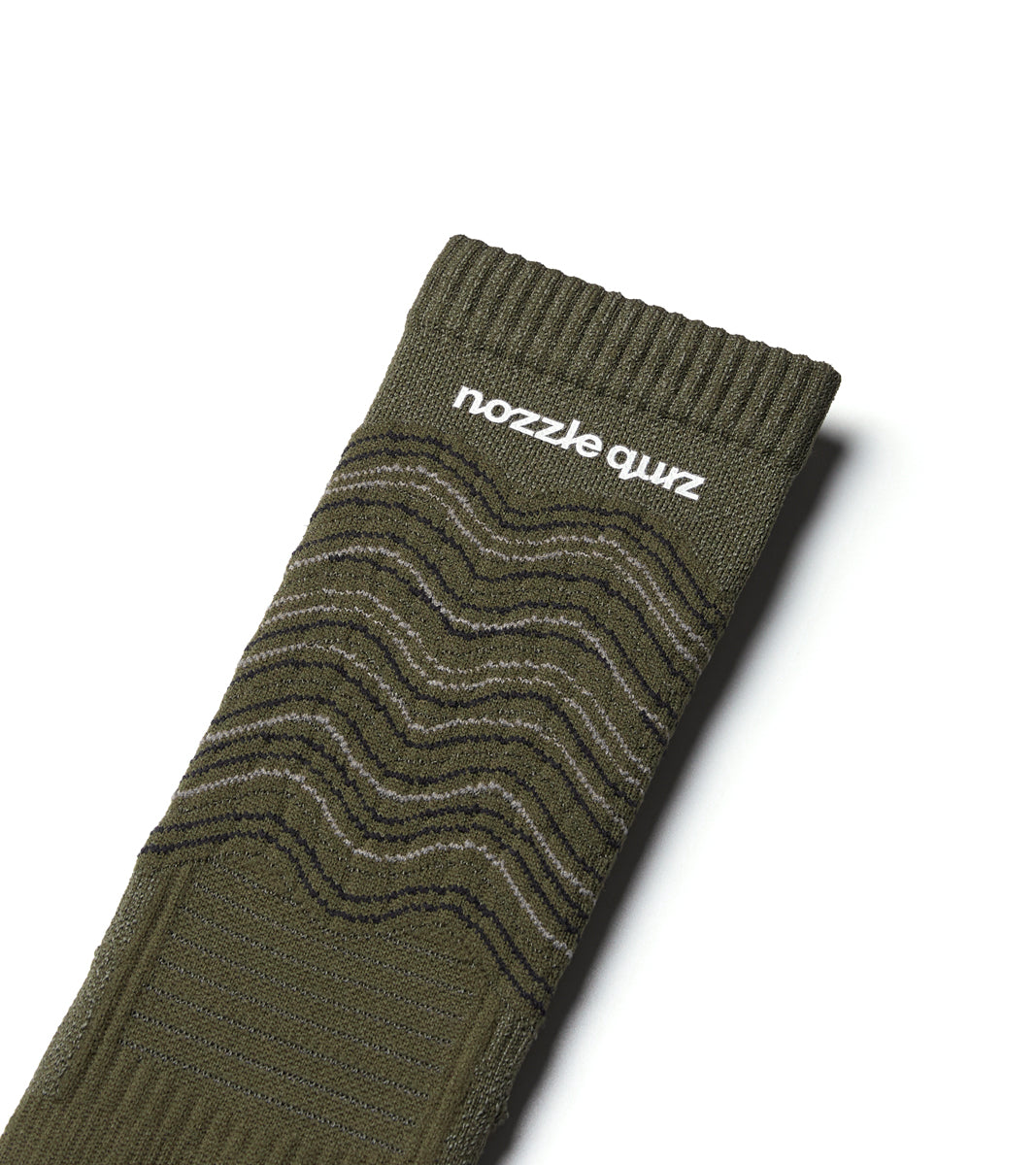 "FlexibleArmor"產品中的在版型設計配合防曬、防降雨及透氣等需求,提供可變動 (convertible) 及收納的機能設計,與國內機能面料廠合作開發兼具輕薄輕量、抗撕裂、防潑水、耐水壓及透氣銃孔的尼龍面料,並經由特殊的洗皺加工表現出金屬般光澤質感。同時,nozzle quiz 與中大遠東實業研發部門合作開發,將以耐磨著稱的 CORDURA®紗線製作類鱗甲外觀的針織腰帶,並採用 FIDLOCK® 磁性快扣大幅提升便捷性。襪履則採用 COOLMAX® 快乾涼爽紗線,以及延續使用的 Skinlife® 專利銀纖抗菌紗線、 Lycra® 專利彈性纖維加強包覆性等機能紗線,提供一系列附有機能性的配件。