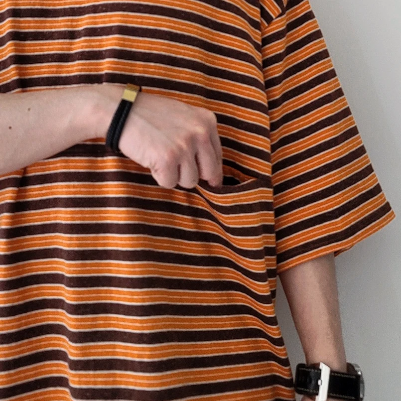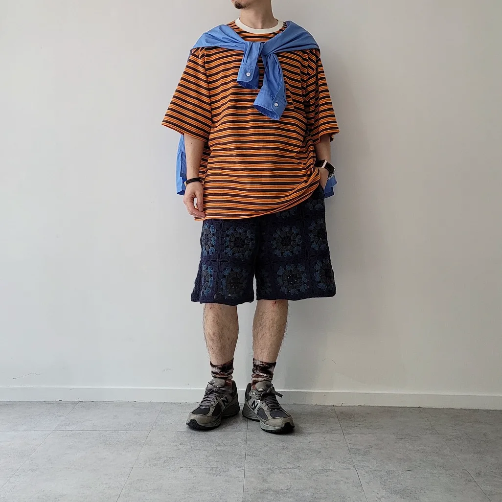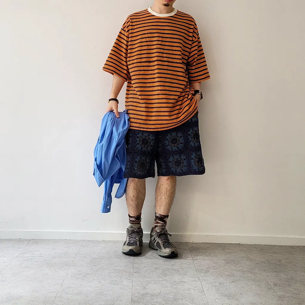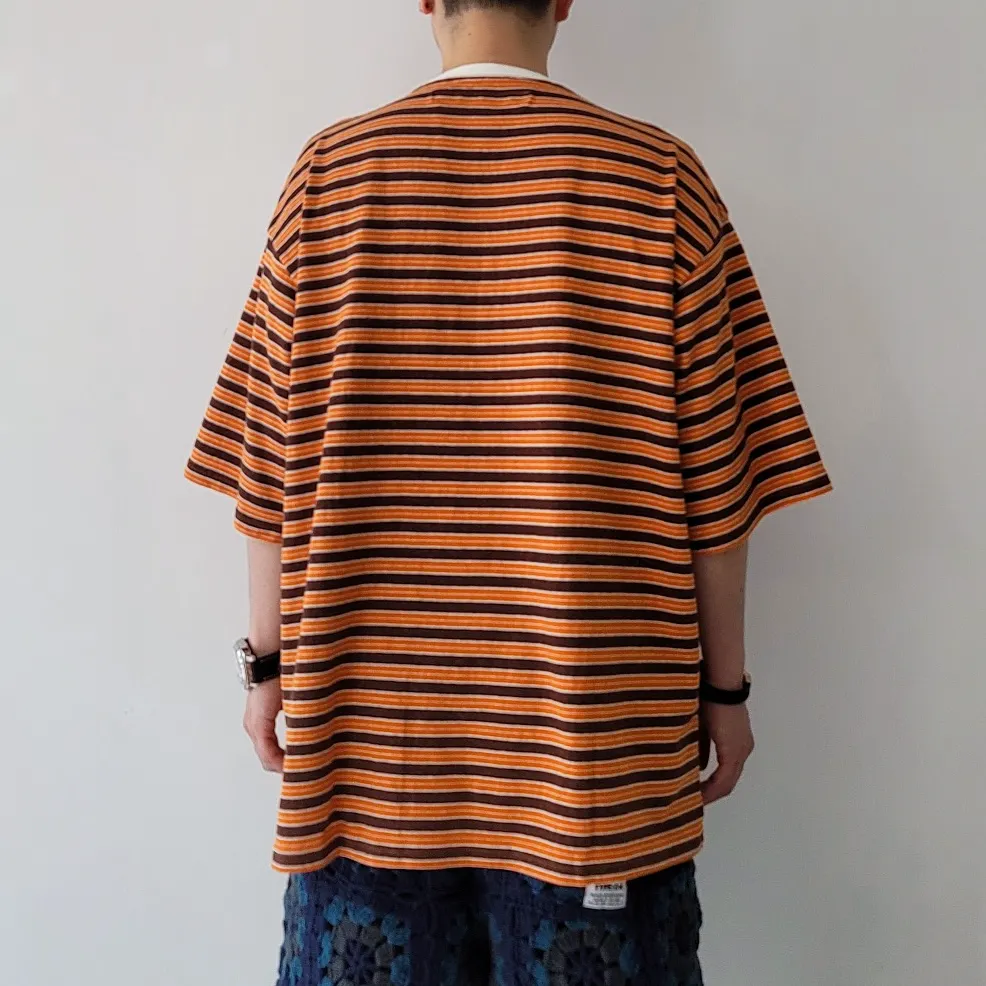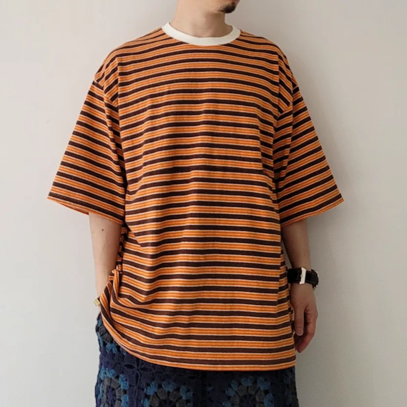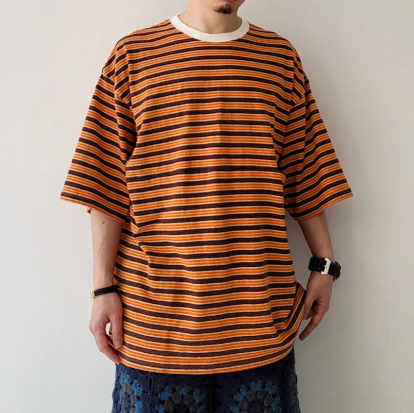 - A cotton material that is soft, thin and comfortable to the touch. The orange-based border with a bright and energetic color scheme goes well with colors such as beige and black, making it one of the styling points. It is very comfortable to wear.